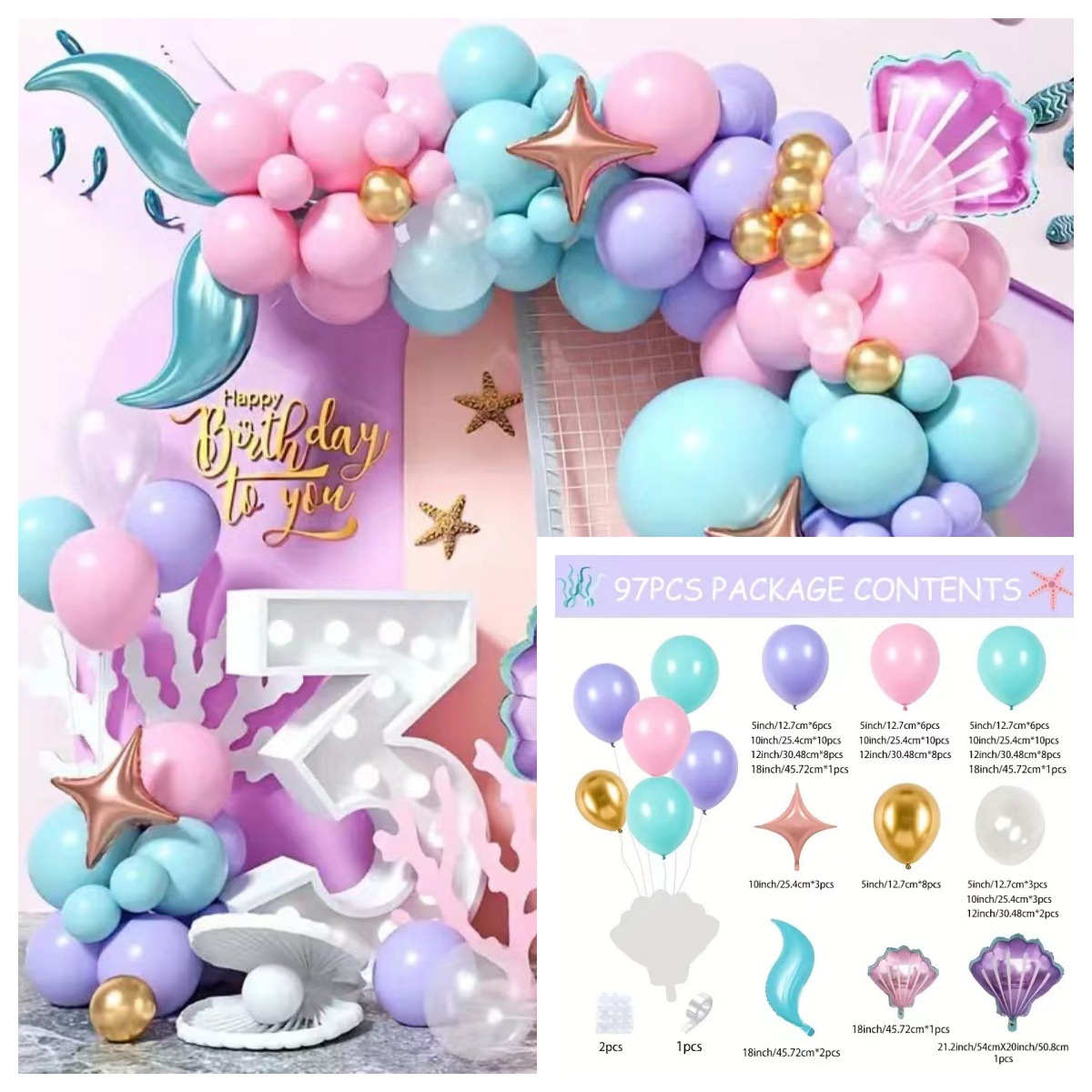 도매 국경 간 풍선 세트 생일 풍선 테마 파티 화환 아치 어린이 풍선 체인 장식 배열