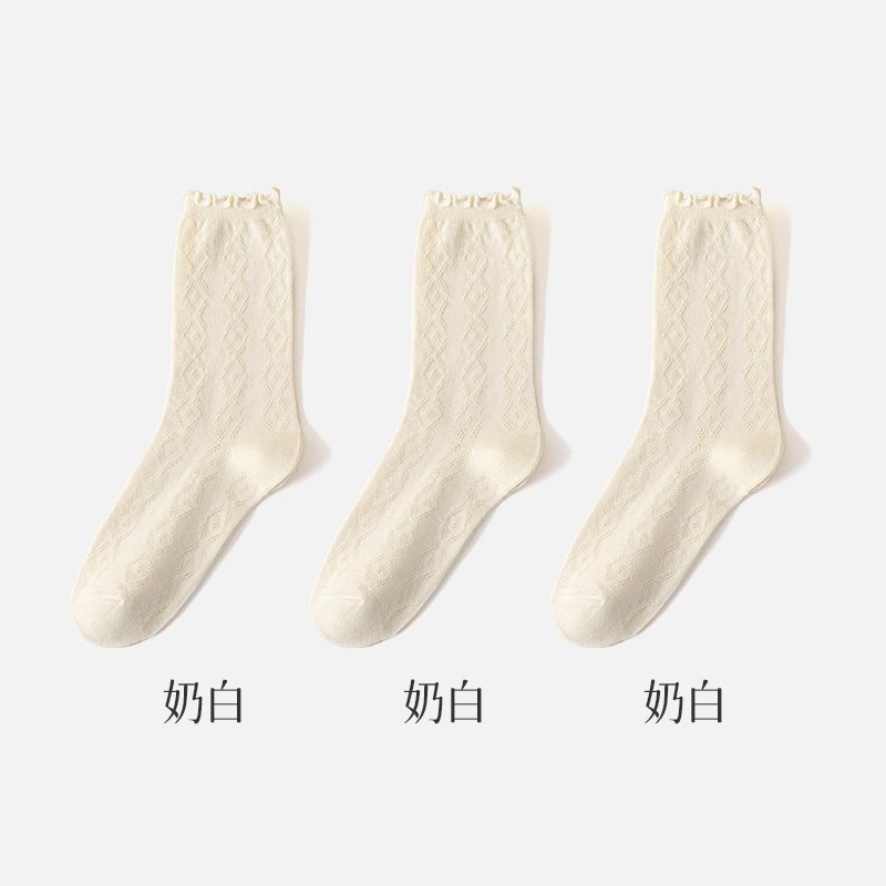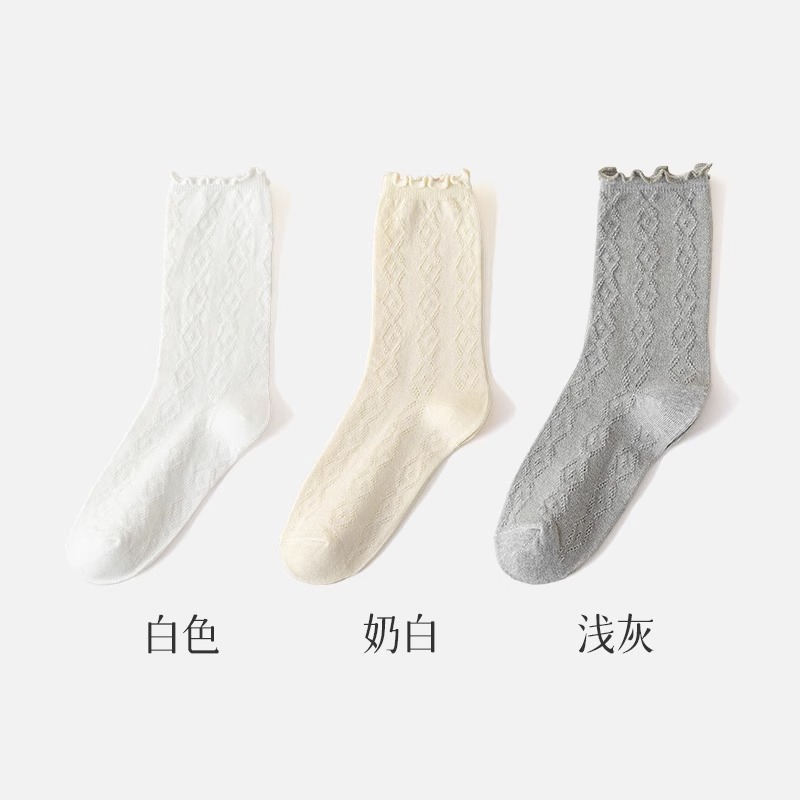 여성용 가을 겨울 중목 양말, 인스 스타일 단색 다크 패턴 레이스 양말, 냄새 방지 여성 양말, 다용도 파일 양말, 여성용 롱 양말스토어 가기