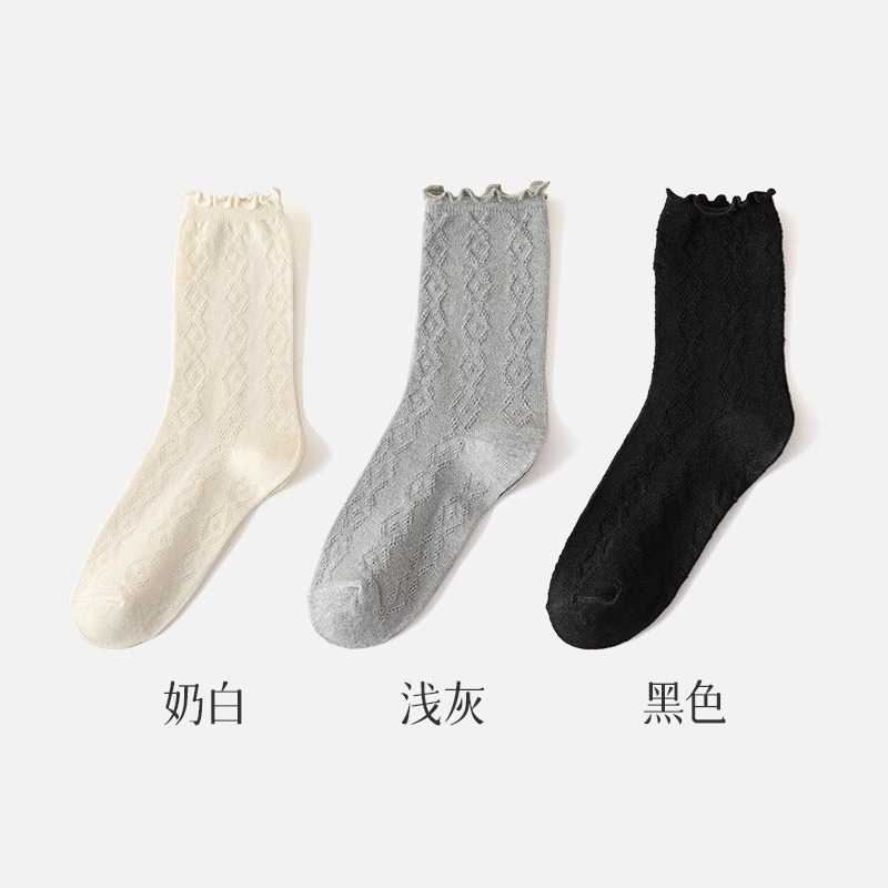여성용 가을 겨울 중목 양말, 인스 스타일 단색 다크 패턴 레이스 양말, 냄새 방지 여성 양말, 다용도 파일 양말, 여성용 롱 양말