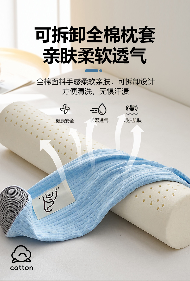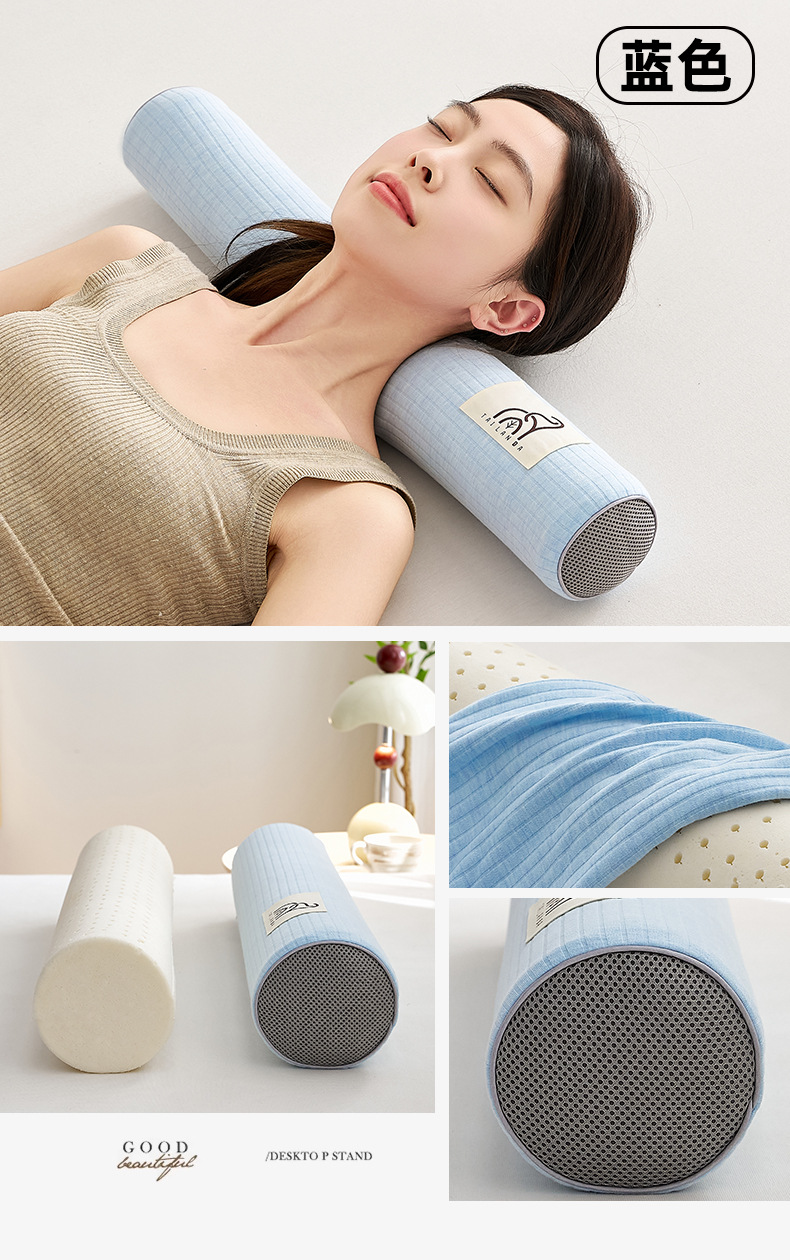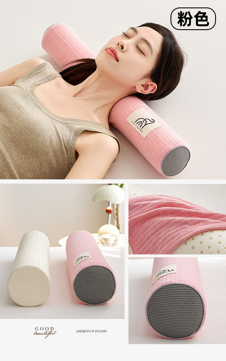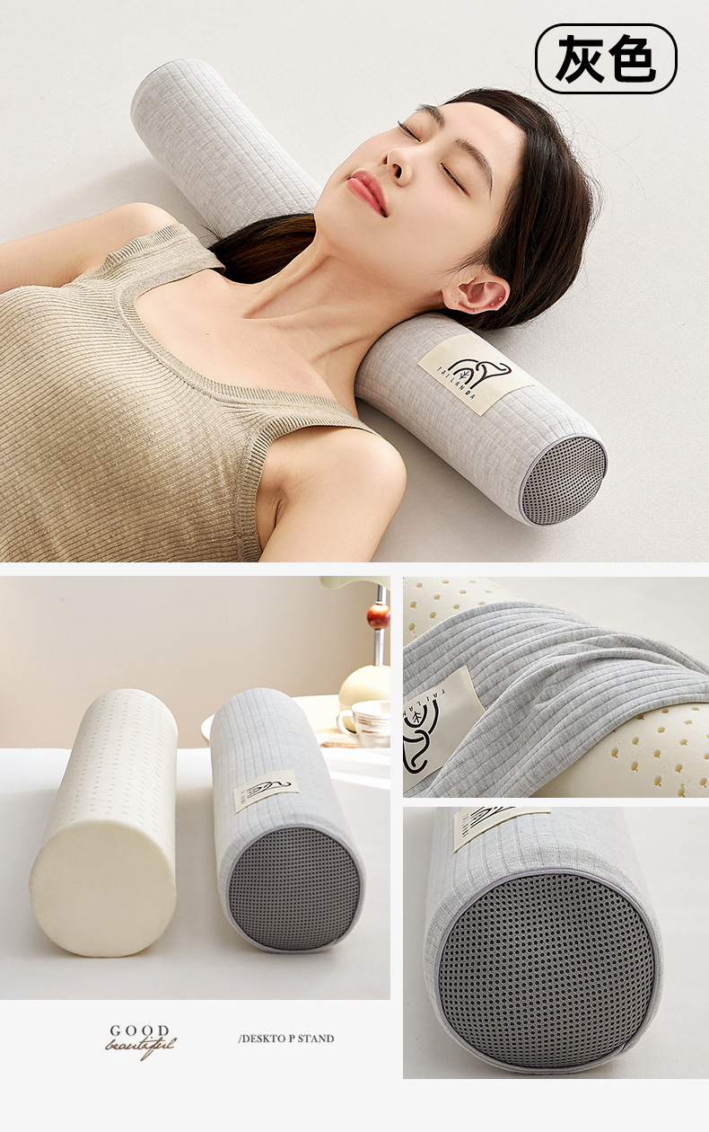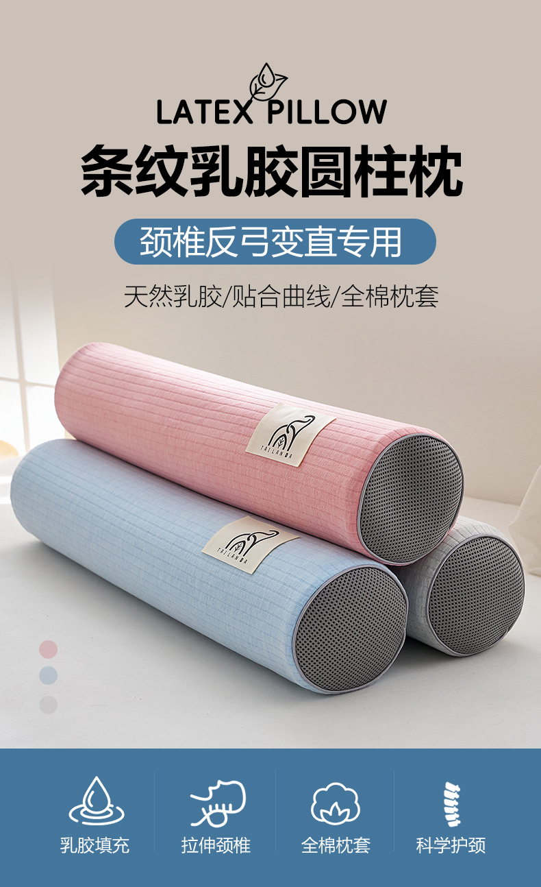 스트라이프 라텍스 원통형 베개 견인 안티 아크 스트레이트닝 수면 수면 원통형 경추 천연 목 베개 성인용스토어 가기