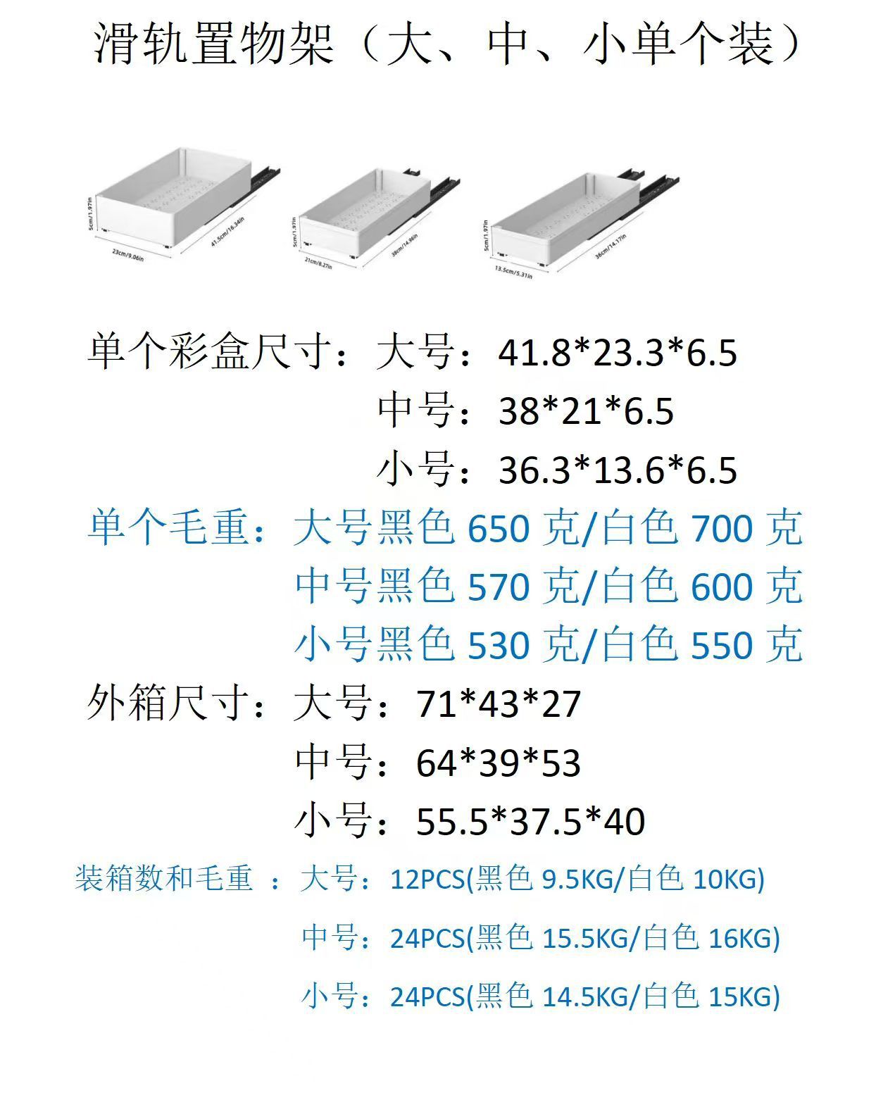 一箱毛重:黑色11.5KG/白色 12KG