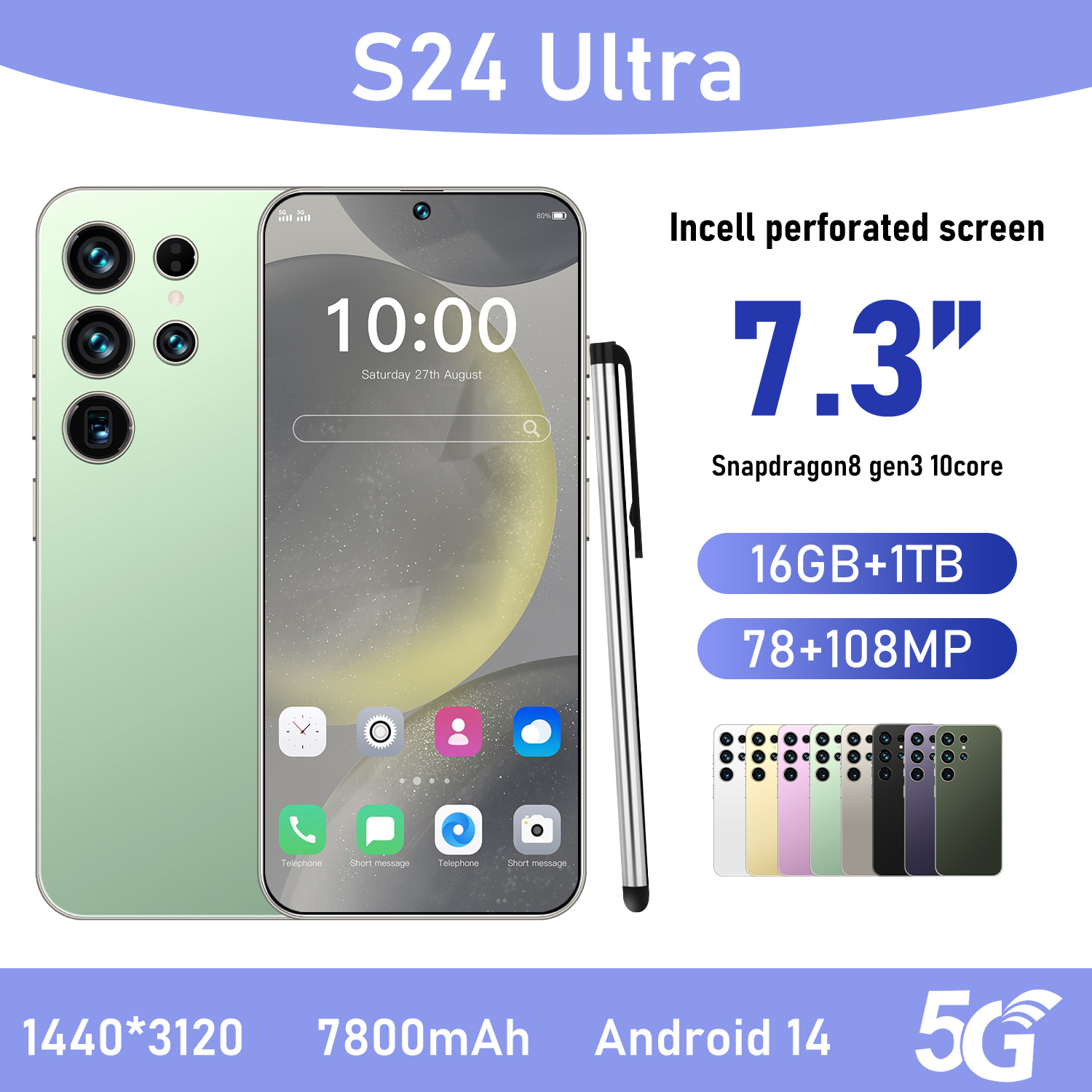 크로스보더 휴대폰 S24 울트라 3+16 인셀 펀칭 스마트 대화면 올인원 기기 4G 네트워크 해외 무역용