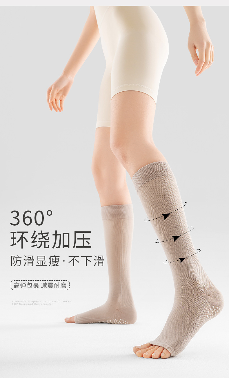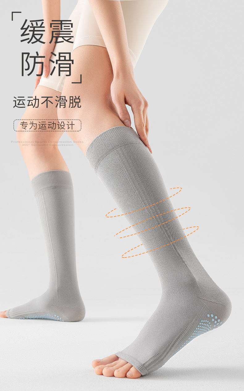 여성용 오픈 토 종아리 압력 요가 양말, 전문 긴 발가락 없는 양말, 미세 압력 통기성 피트니스 줄넘기 미끄럼 방지 압축 양말스토어 가기