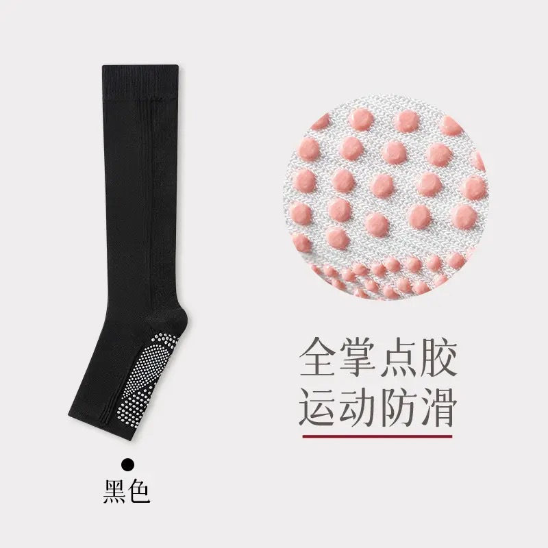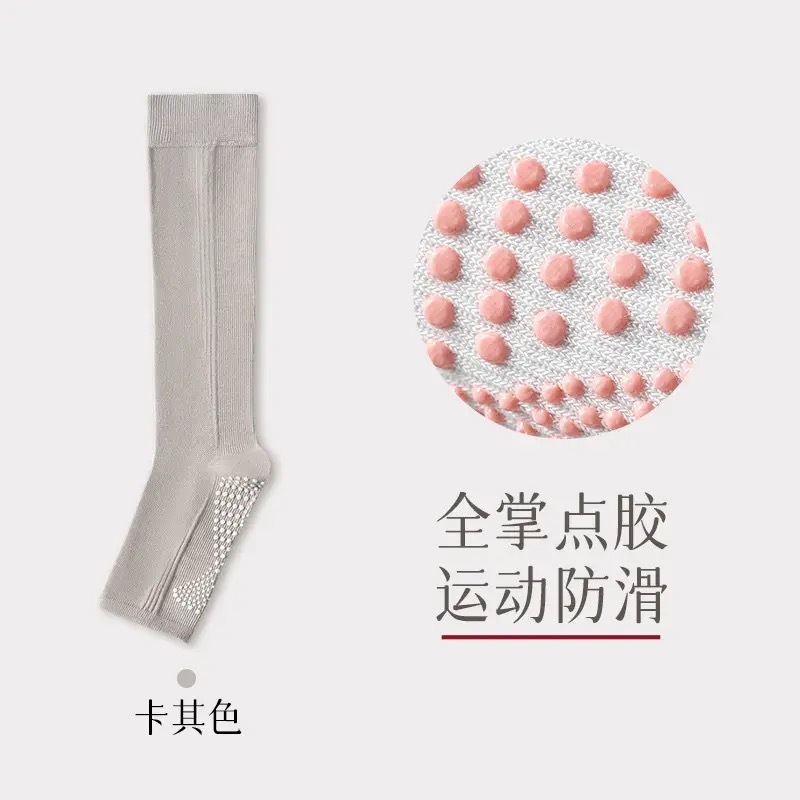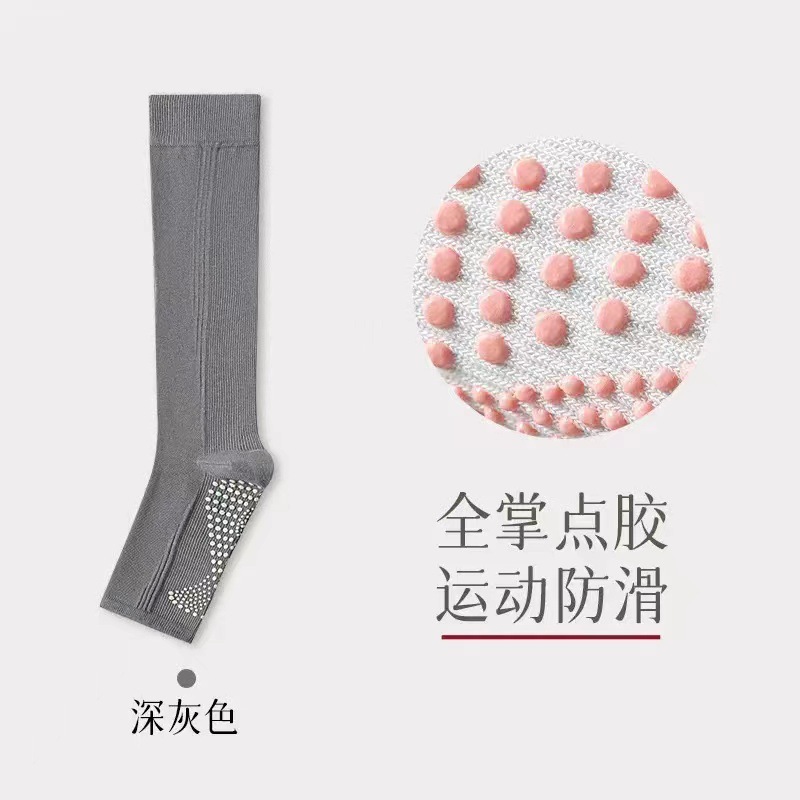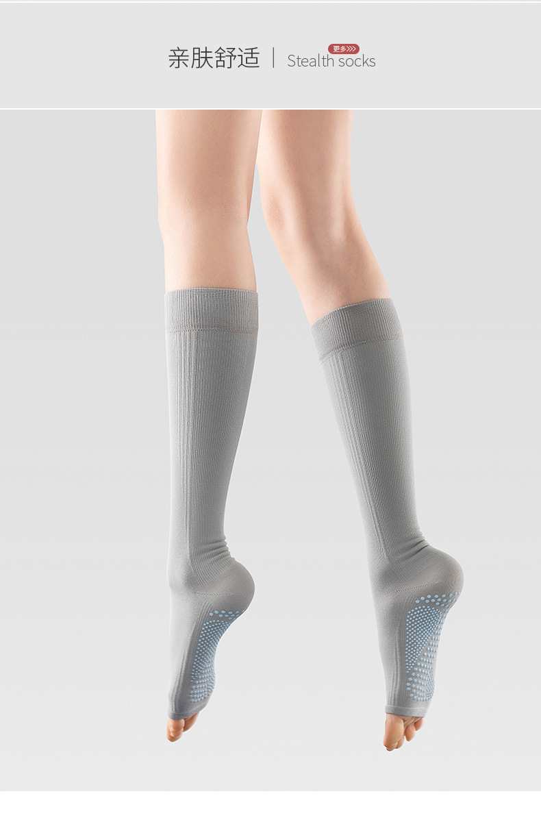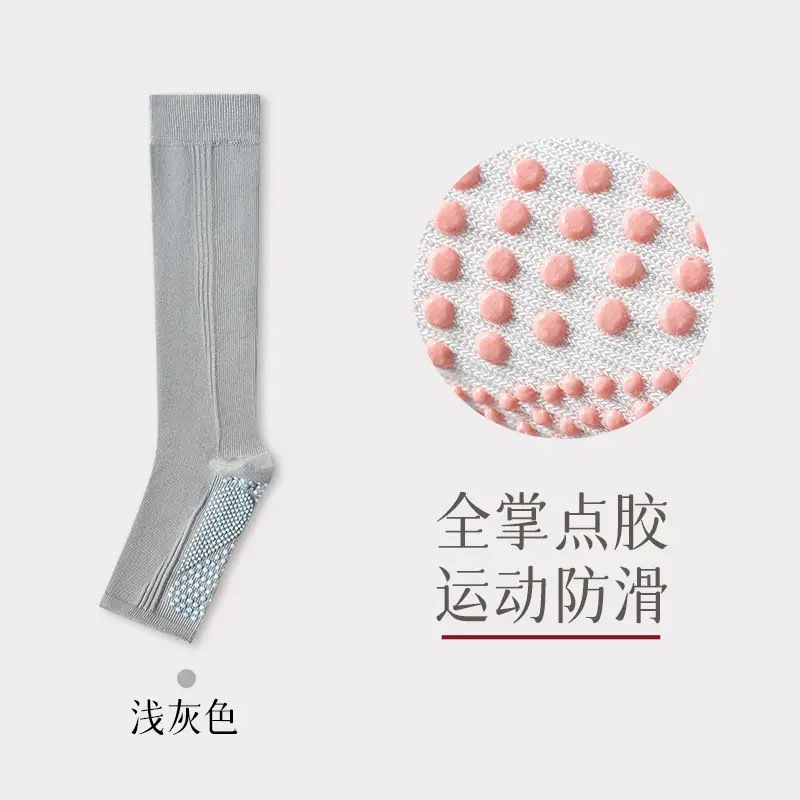 여성용 오픈 토 종아리 압력 요가 양말, 전문 긴 발가락 없는 양말, 미세 압력 통기성 피트니스 줄넘기 미끄럼 방지 압축 양말