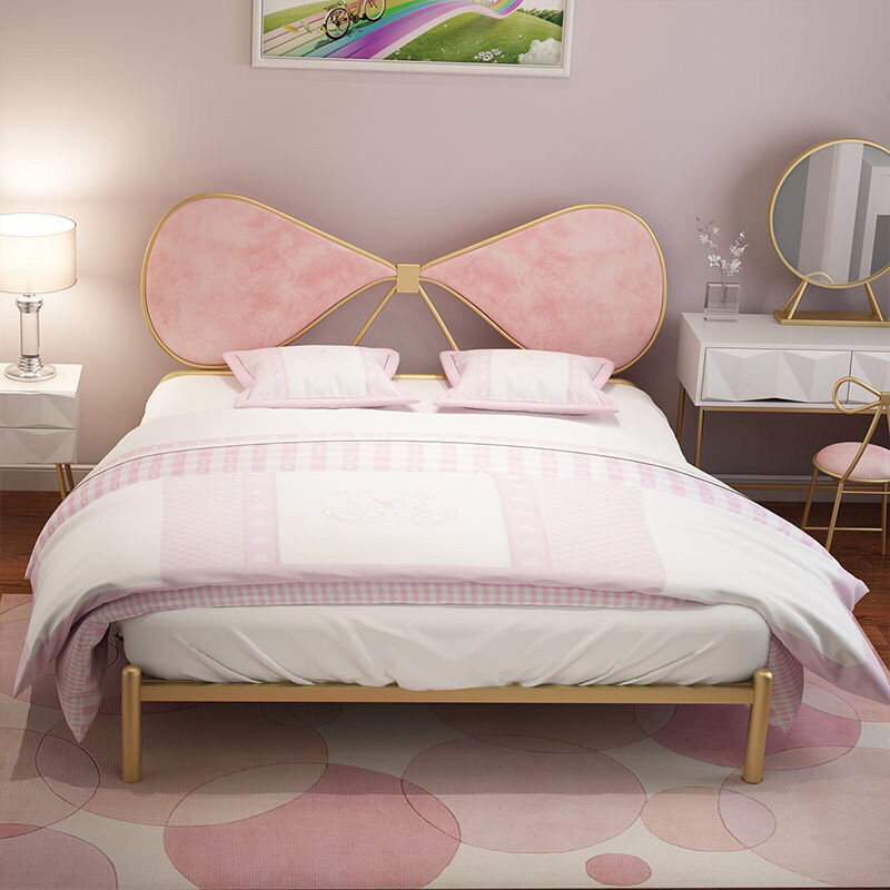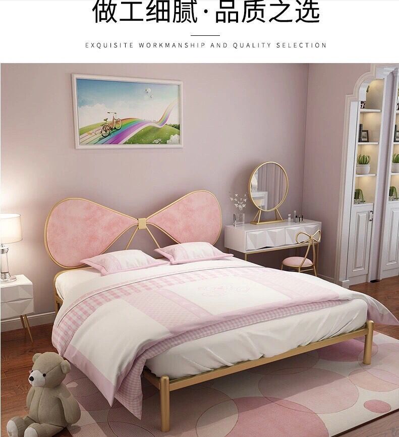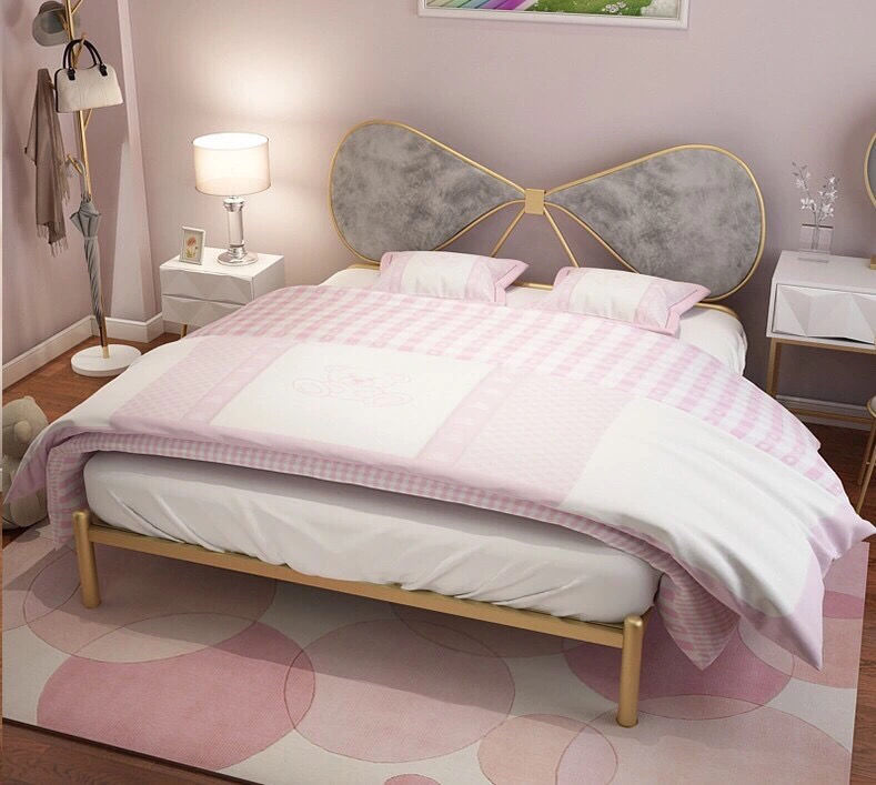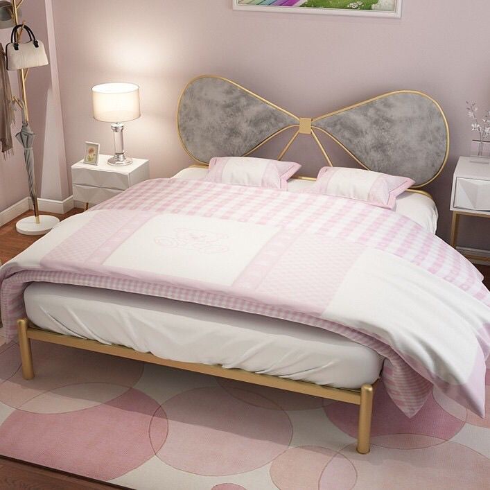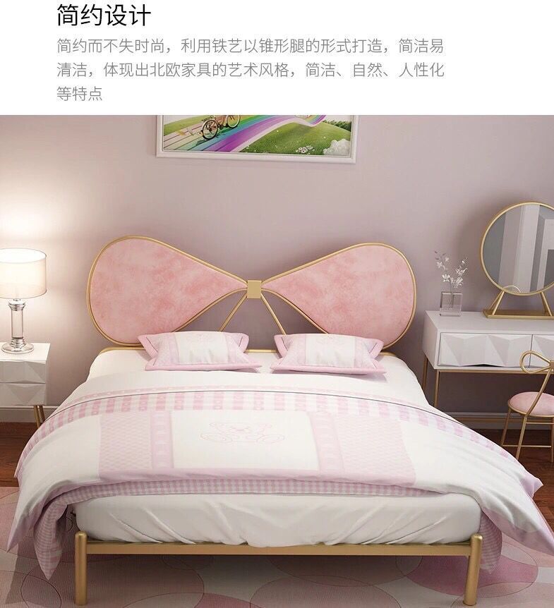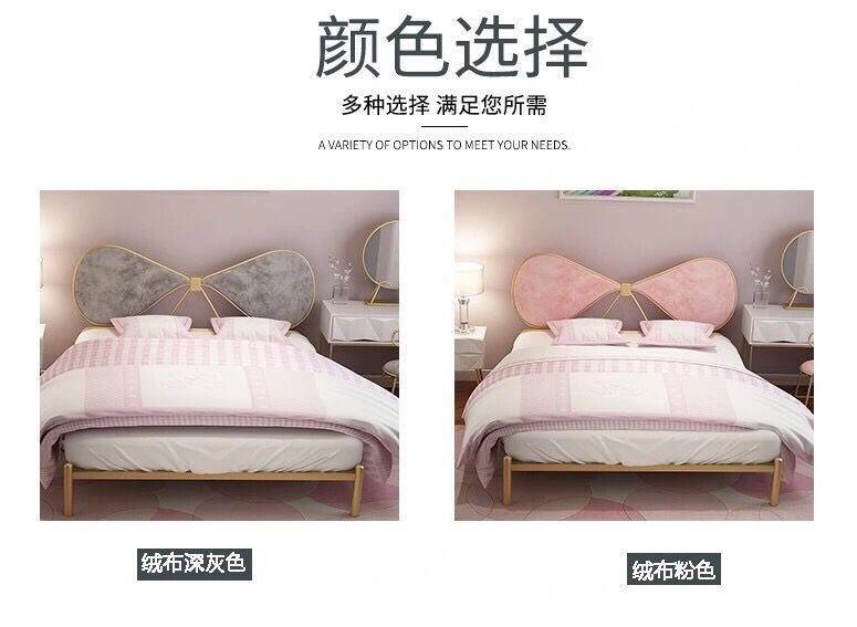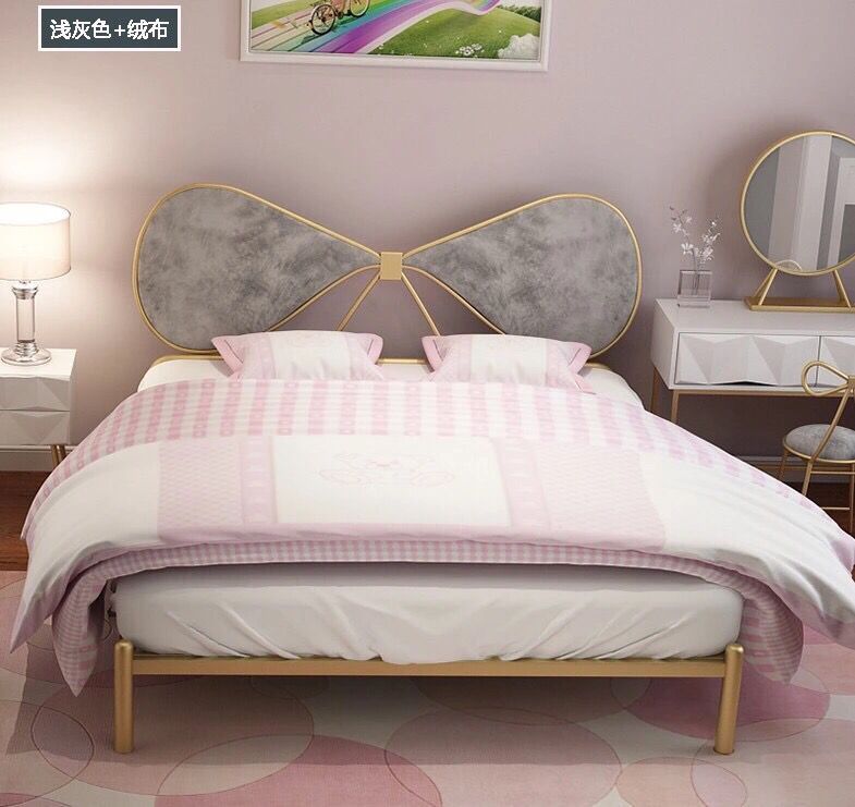북유럽풍 철제 공주 침대 인스타그램 인기 B&B 철제 프레임 침대 침실 심플 모던 리본 장식 싱글/더블 침대