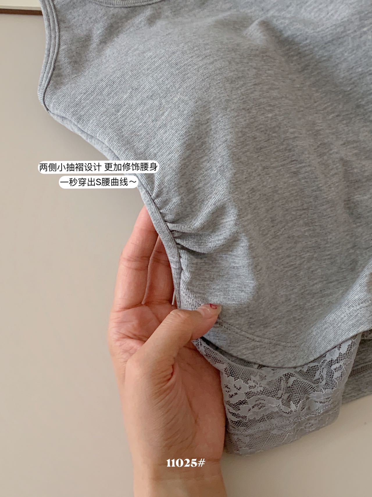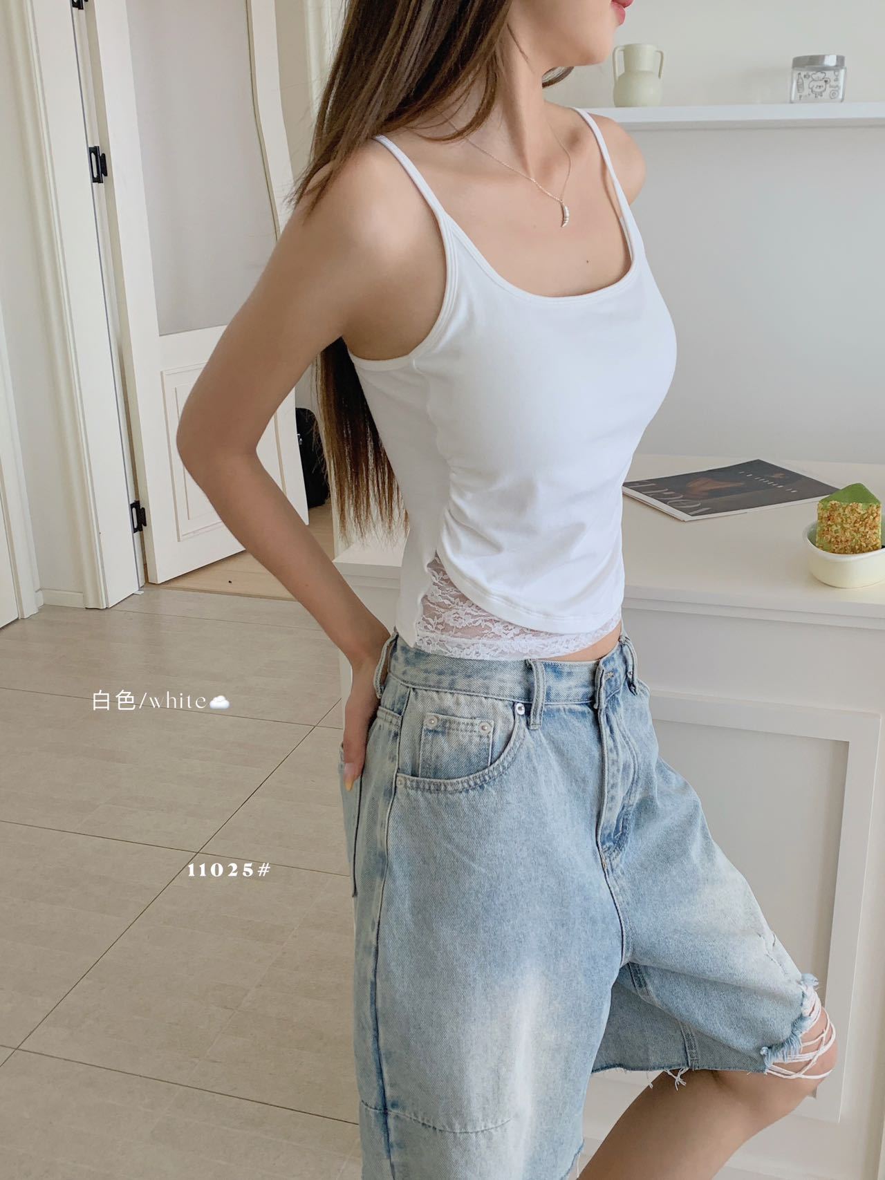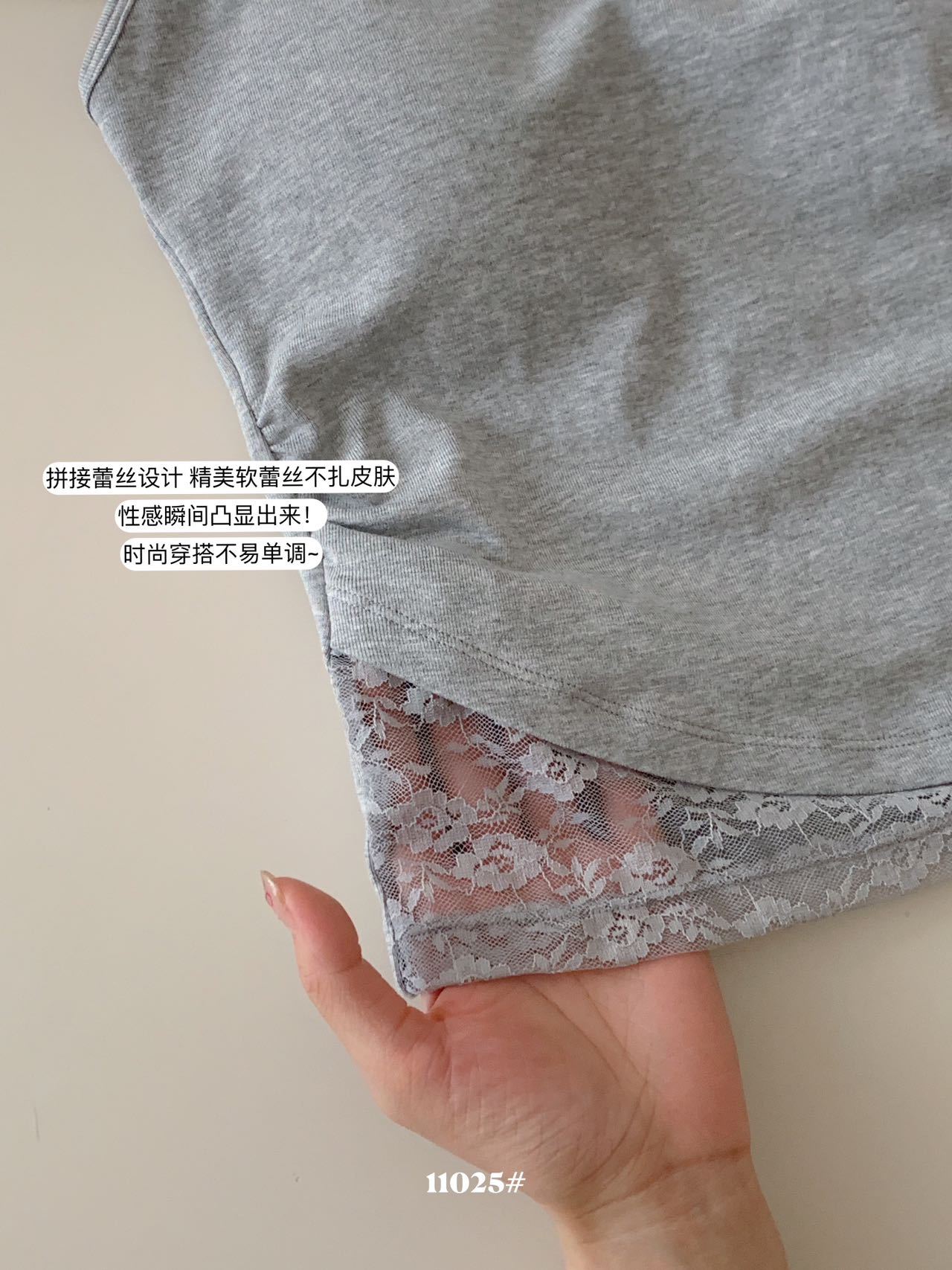 11025 # 새로운 스타일의 레이스 스플라이싱 디자인의 레이스 스플라이싱 아우터웨어 여름 솔리드 컬러 이너웨어스토어 가기