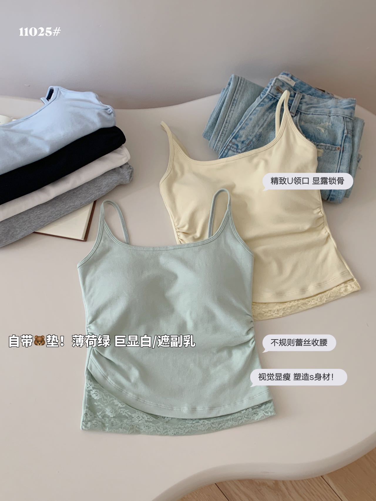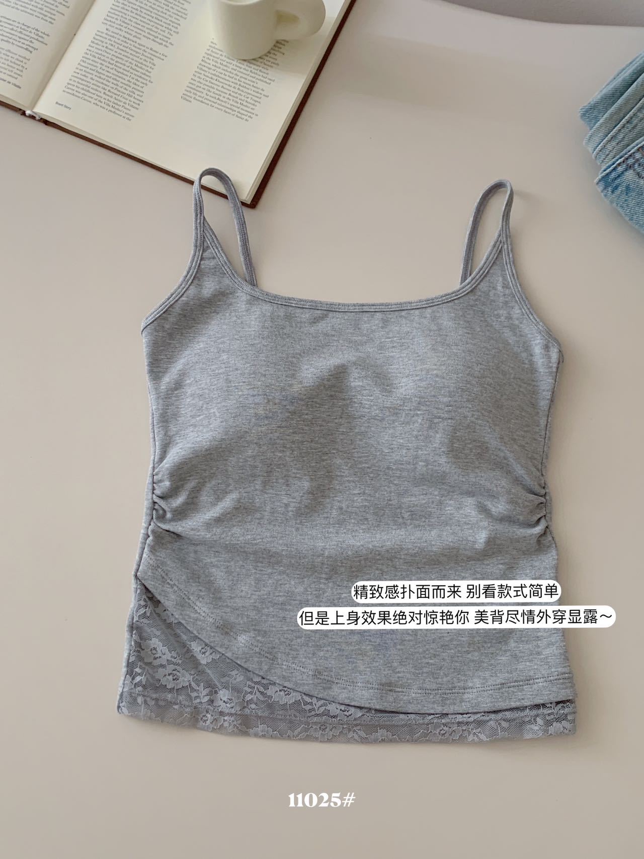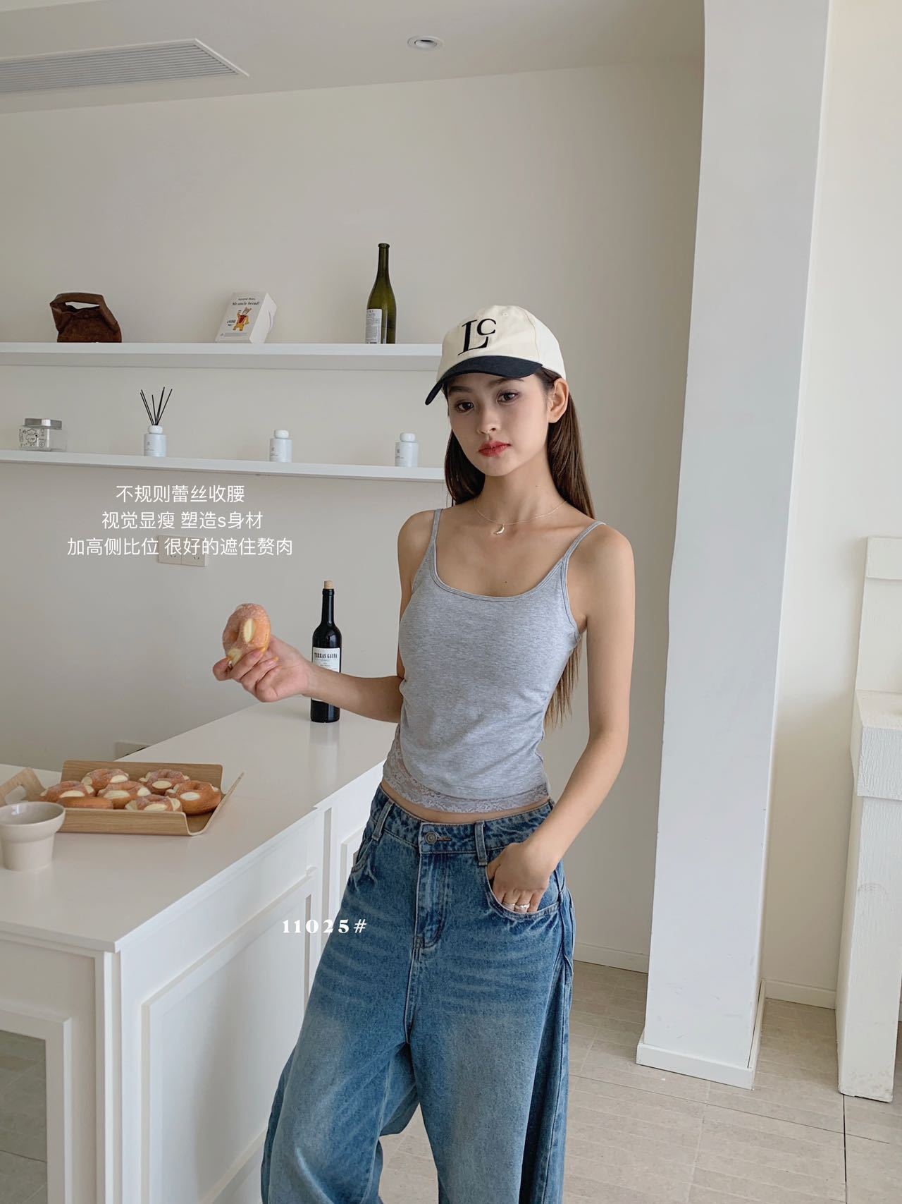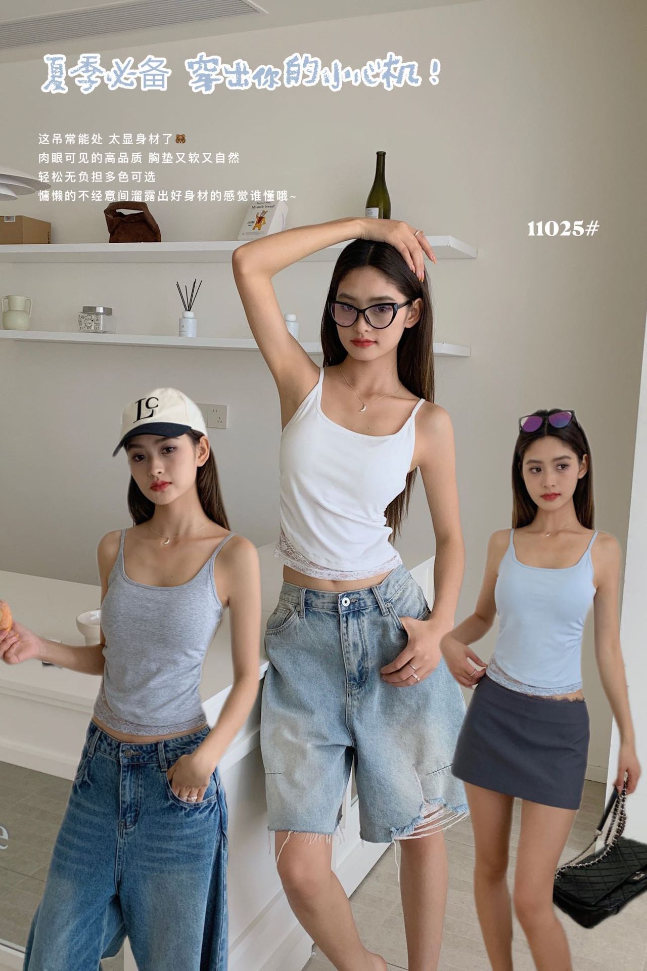 11025 # 새로운 스타일의 레이스 스플라이싱 디자인의 레이스 스플라이싱 아우터웨어 여름 솔리드 컬러 이너웨어스토어 가기