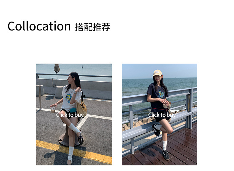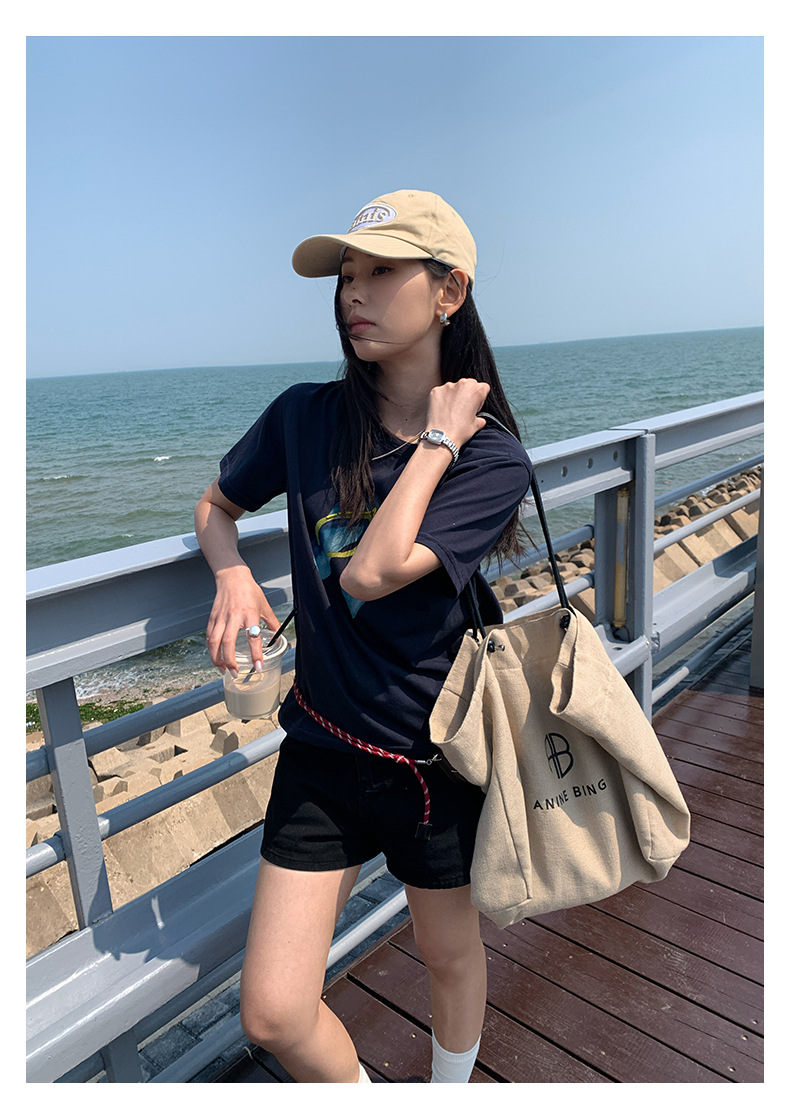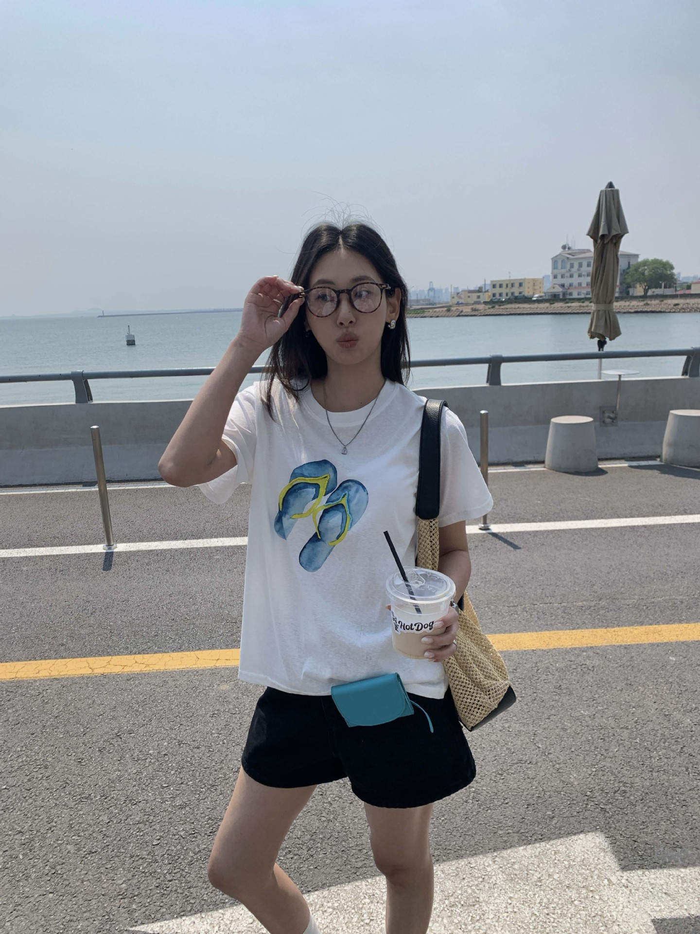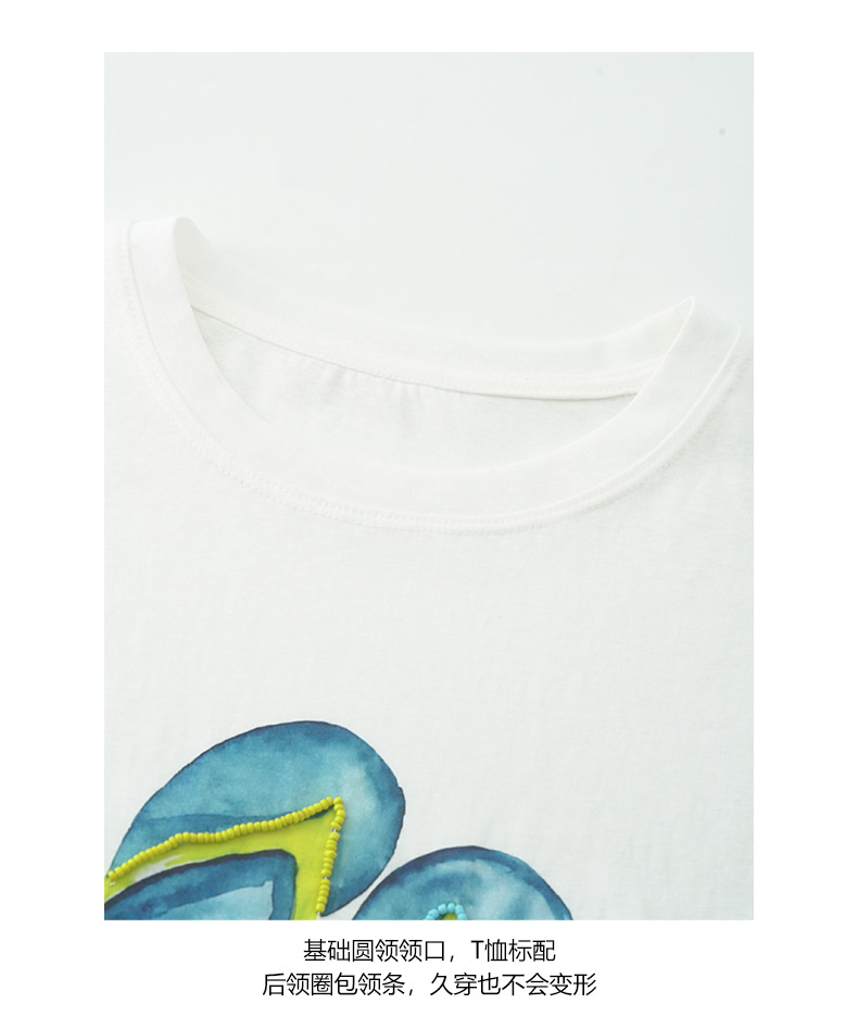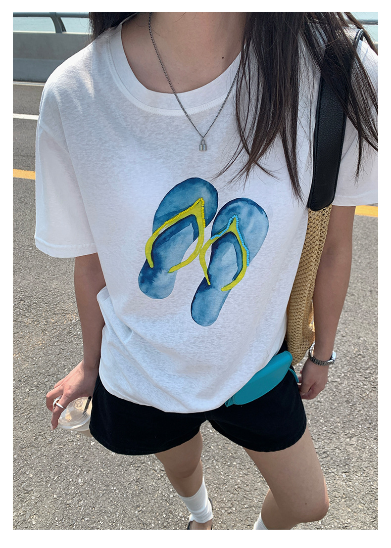 Huang Zheng 한국 스타일 크리 에이 티브 만화 프린트 반팔 티셔츠 여성 여름 패션 라운드 넥 느슨한 연령 감소 탑 520653