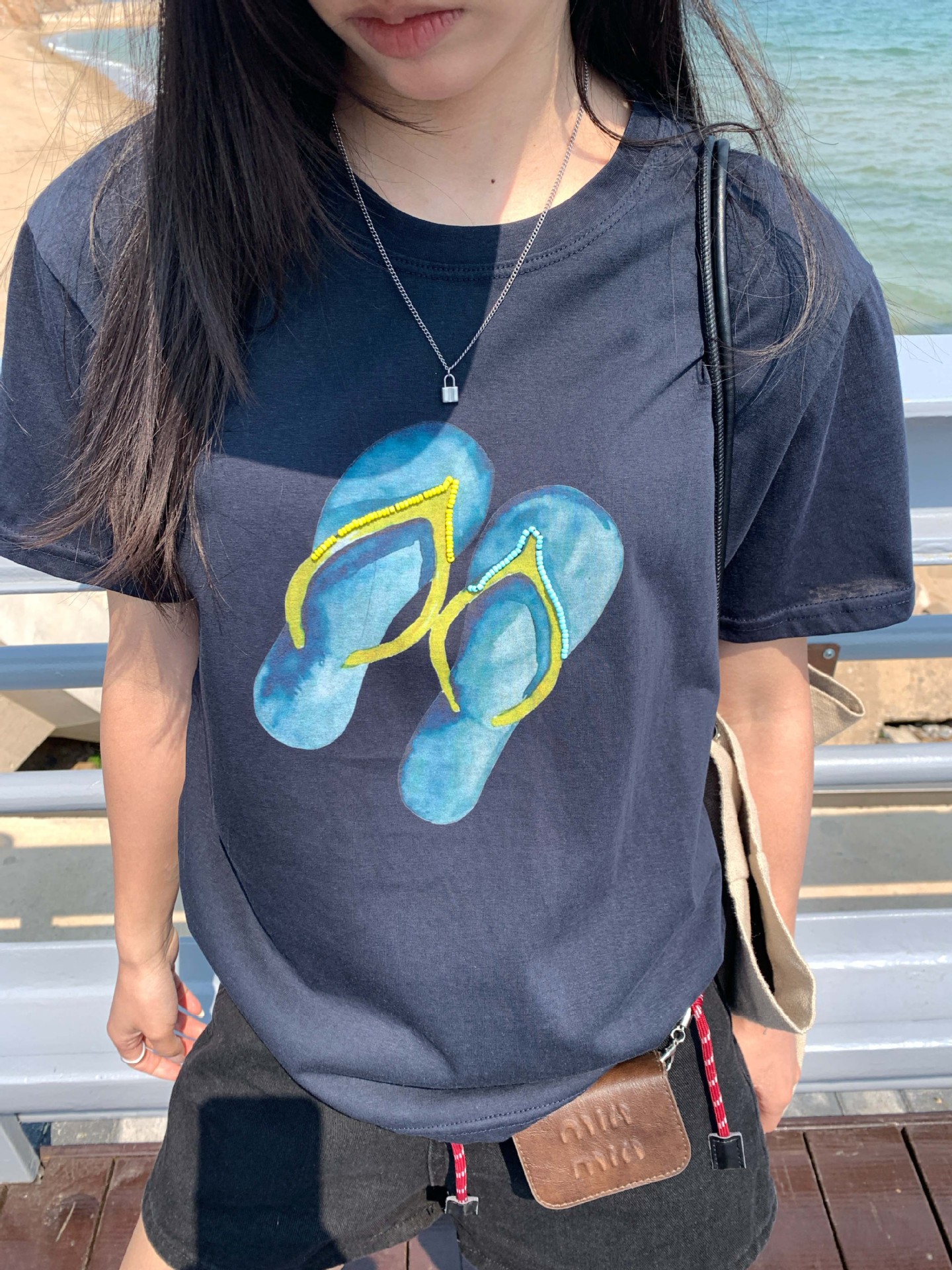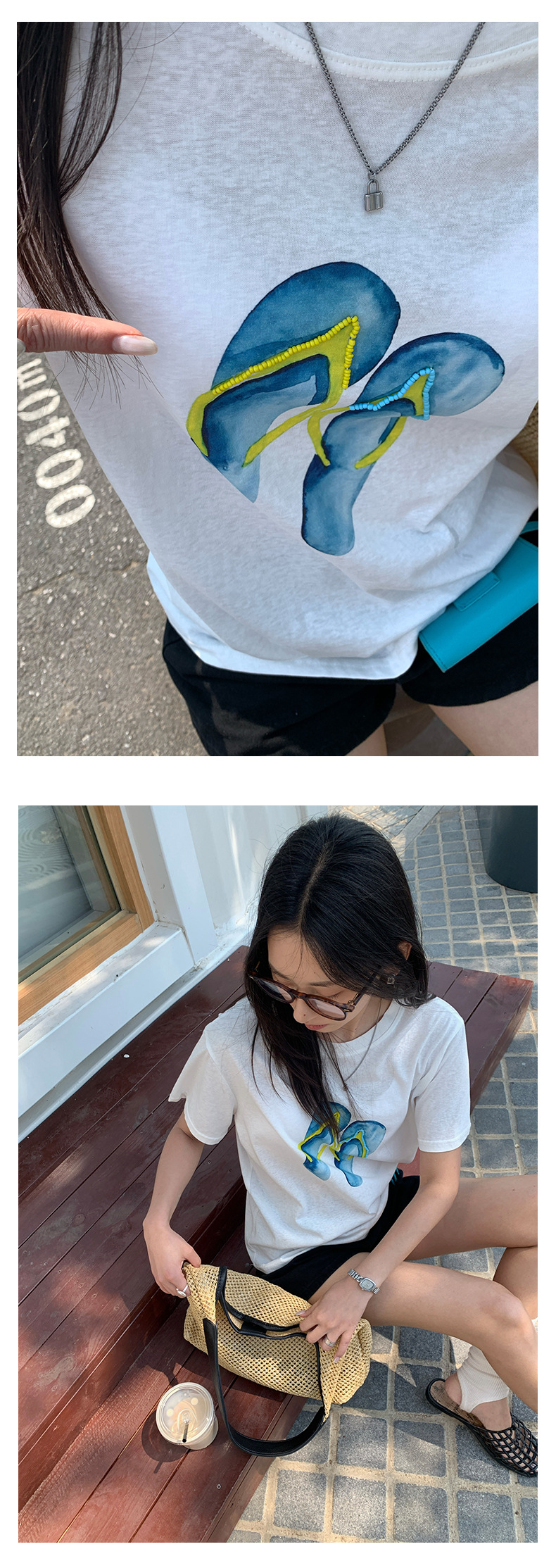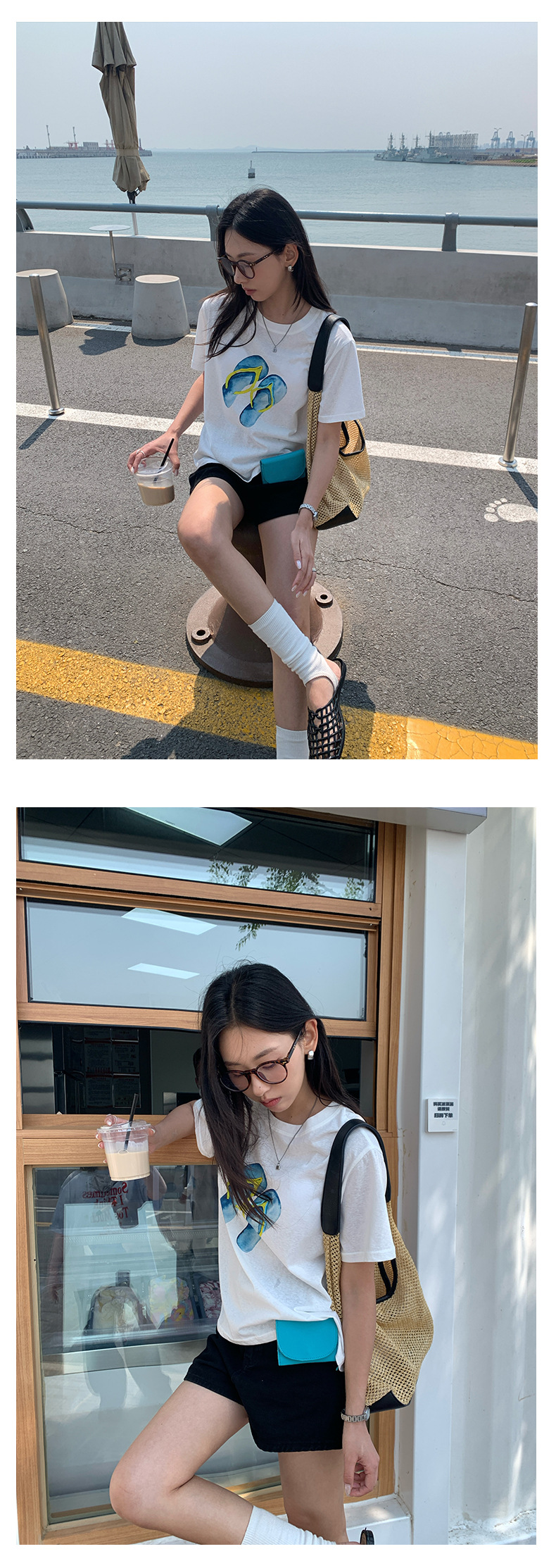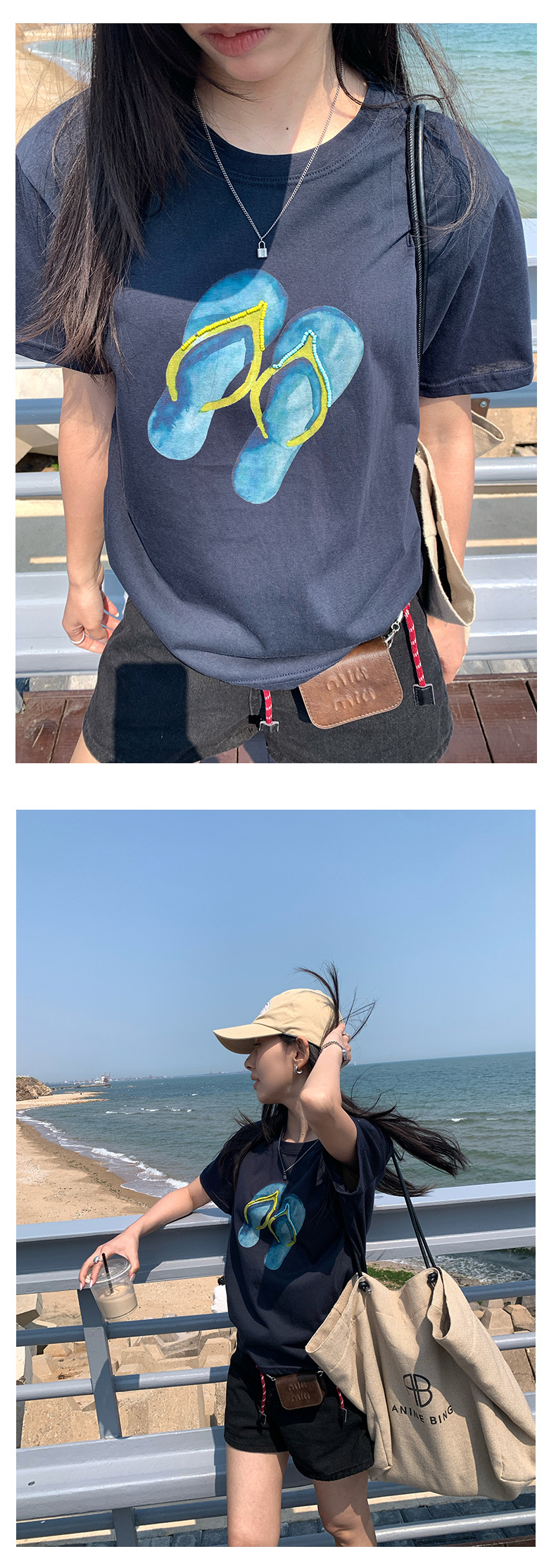 Huang Zheng 한국 스타일 크리 에이 티브 만화 프린트 반팔 티셔츠 여성 여름 패션 라운드 넥 느슨한 연령 감소 탑 520653
