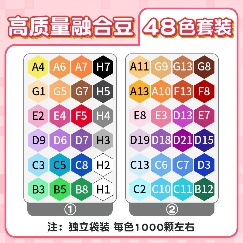 • 48가지 색상에는 소형 다리미 + 도구 키트 + 흑백 콩 2000개가 포함됩니다.