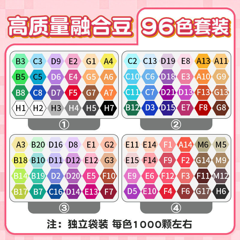 • 96가지 색상에는 소형 다리미 + 도구 키트 + 흑백 콩 4000개가 함께 제공됩니다.