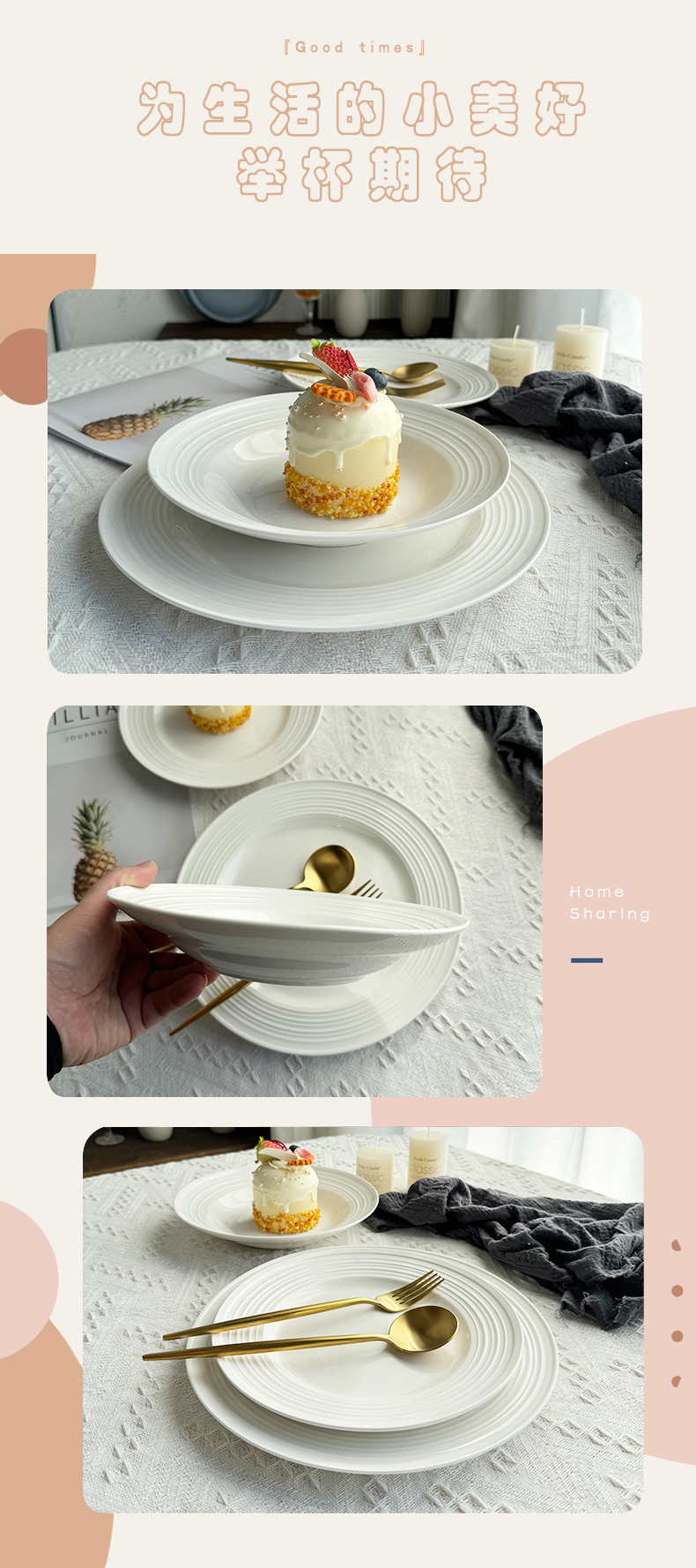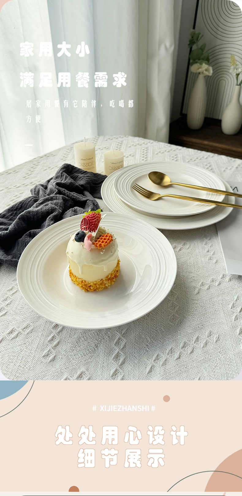 고급스러운 스레드 에지 케이크 접시 디저트 크림 과일 케이크 접시 가정용 밀짚 모자 그릇 스레드 양각 접시