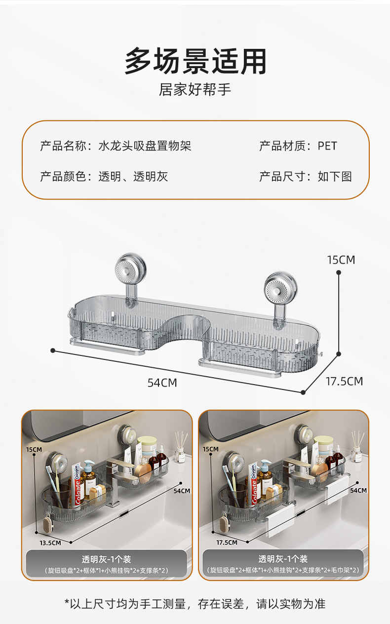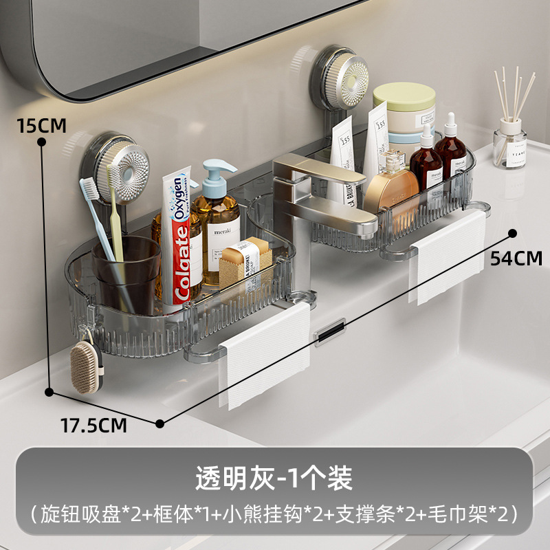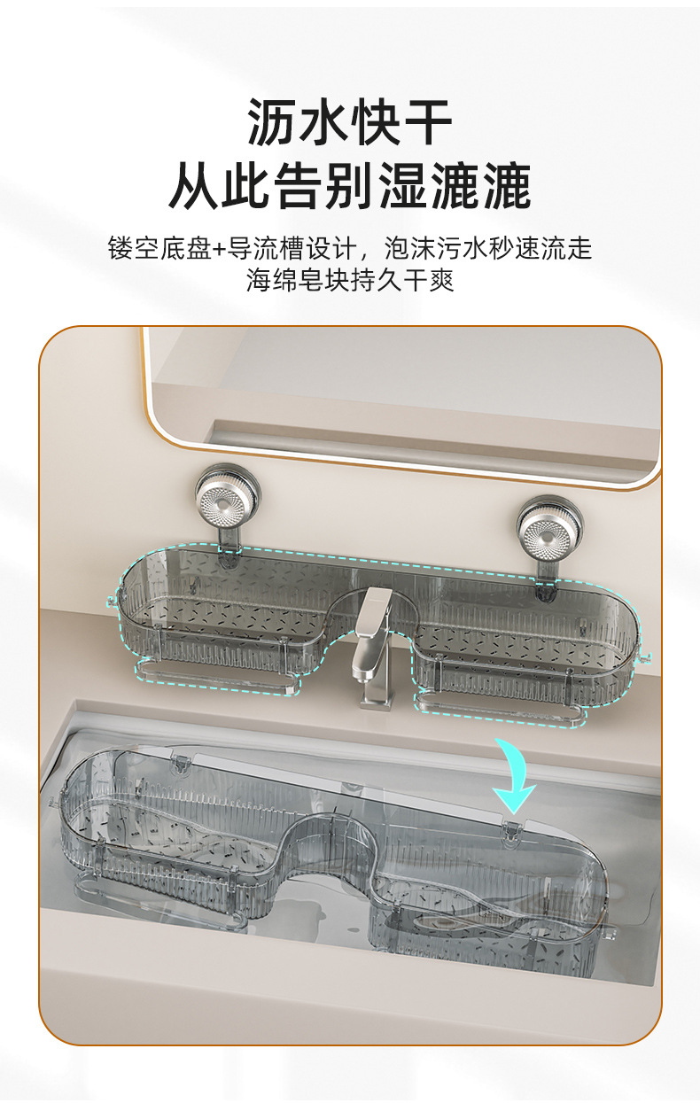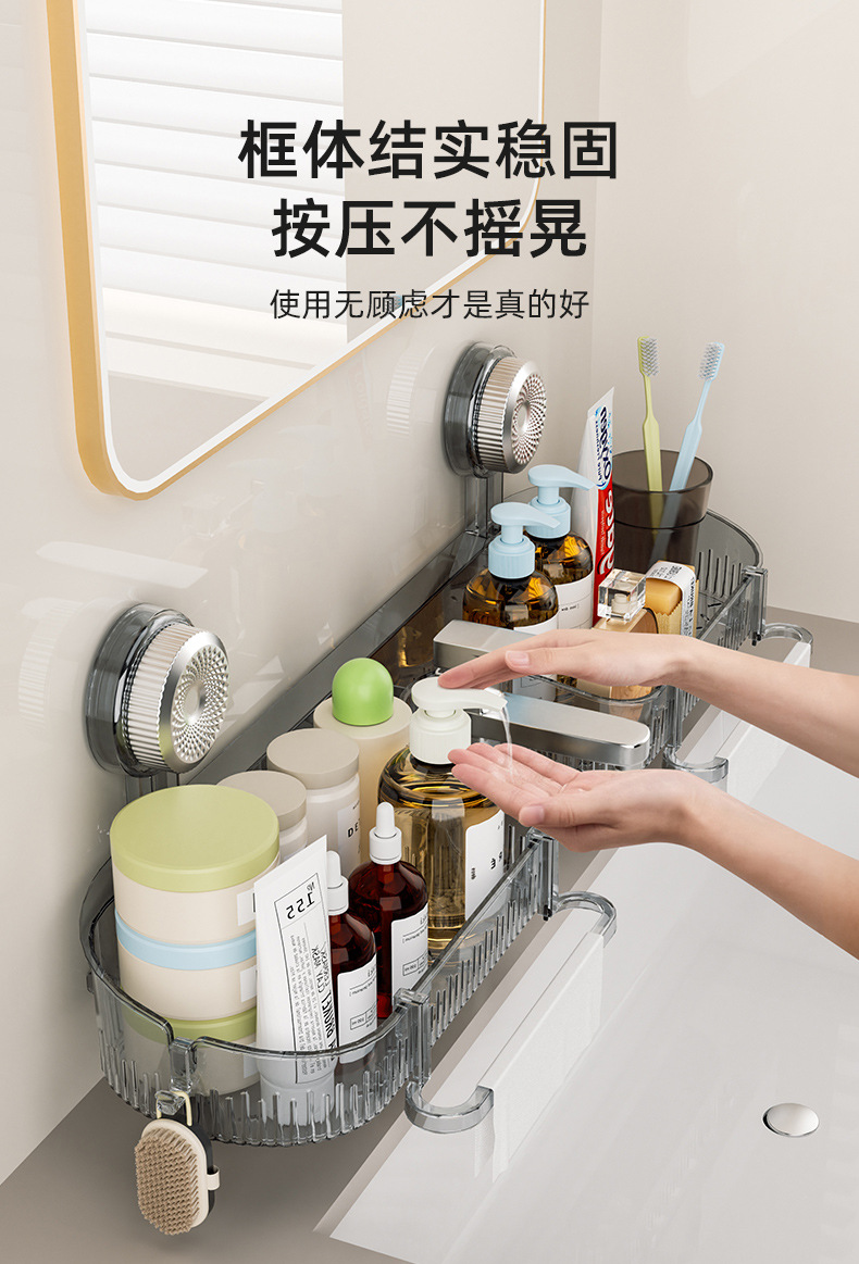 강력한 흡착식 수도꼭지 선반 세면대 거울 앞 화장실 욕실 무타공 배수 벽걸이 선반