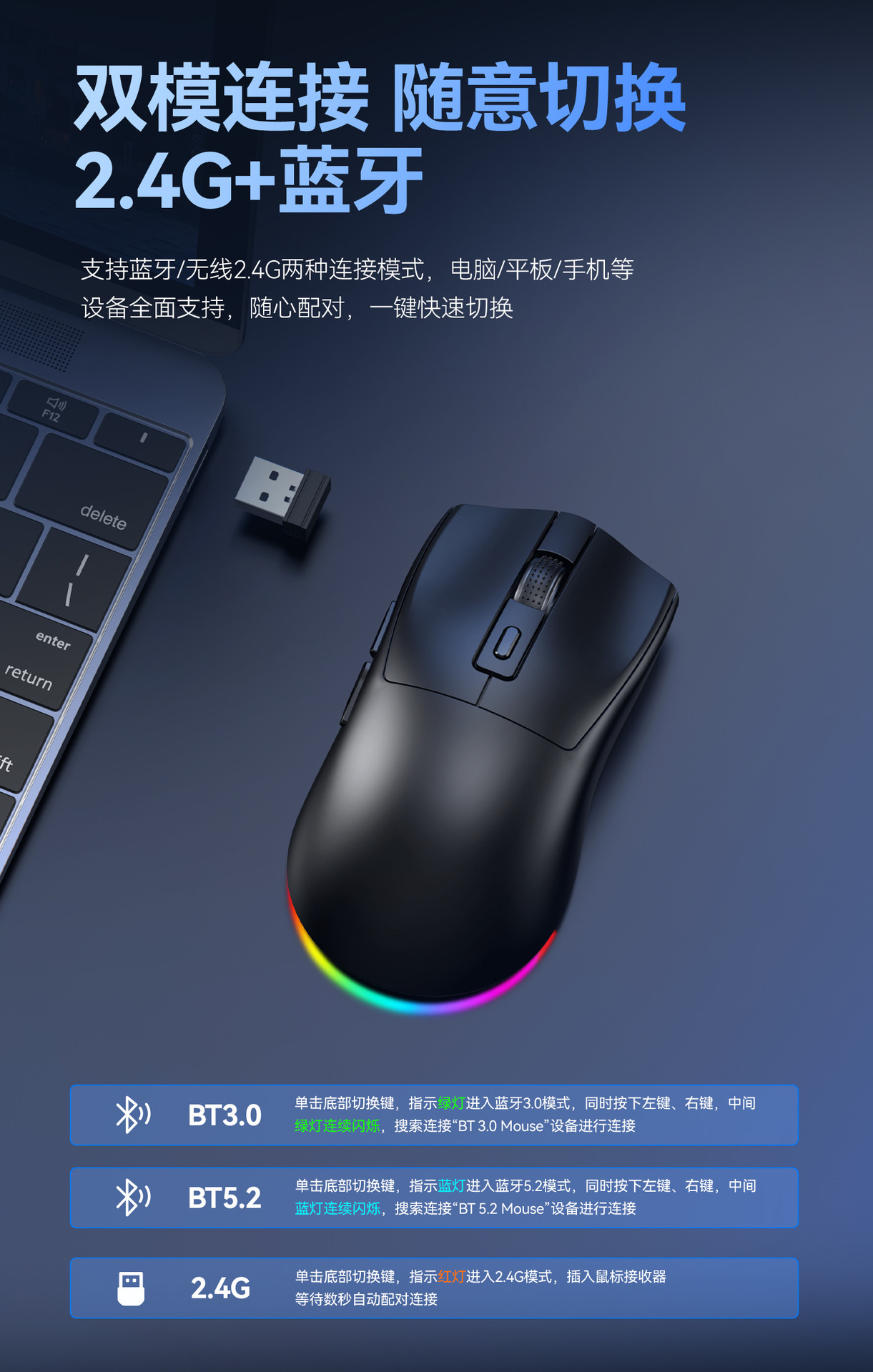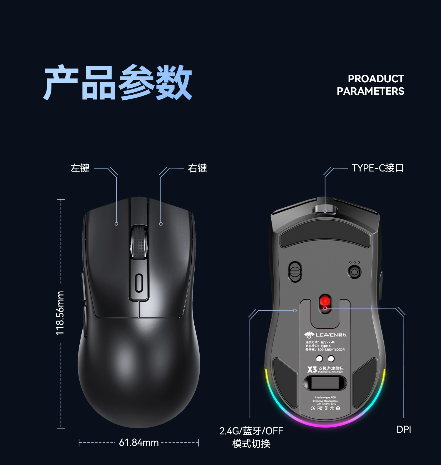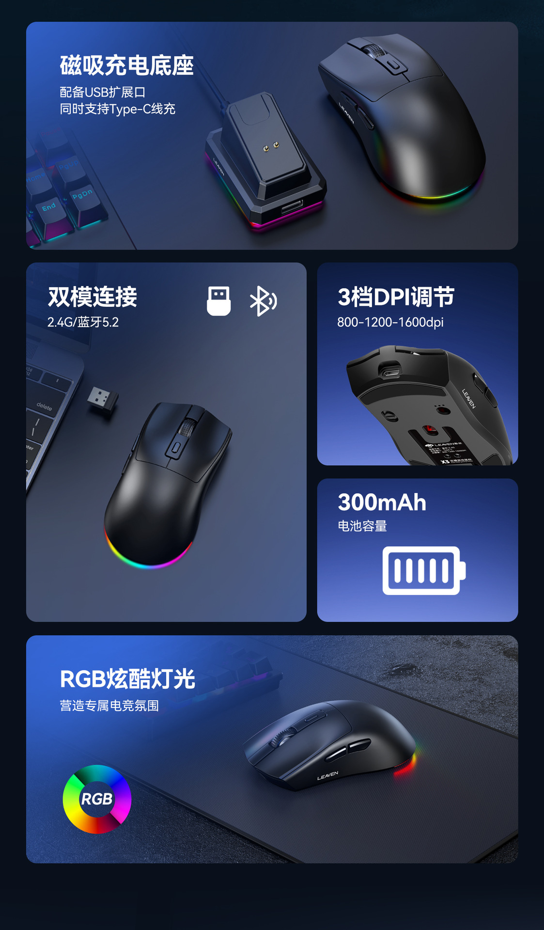 크랙 X3 블루투스 듀얼 모드 마우스 컴퓨터 e스포츠 게임용 경량 자석 충전 베이스 해외 도매