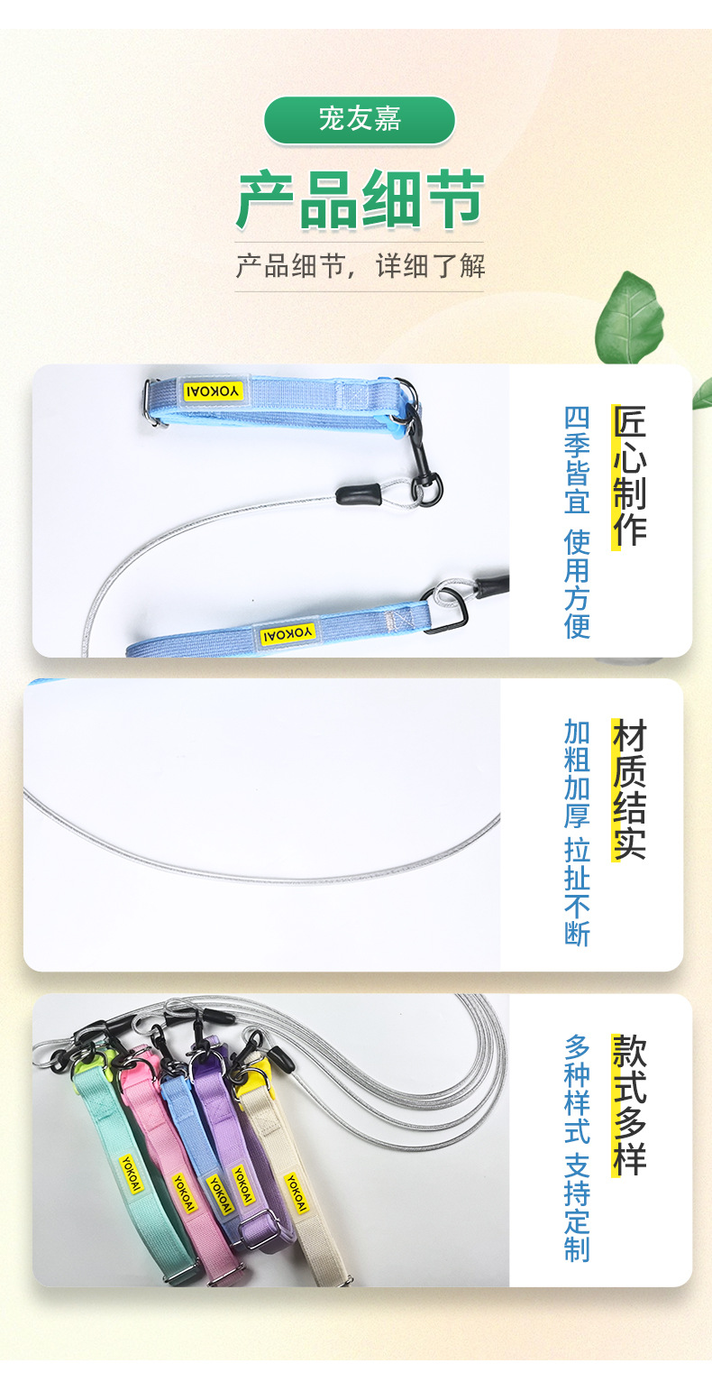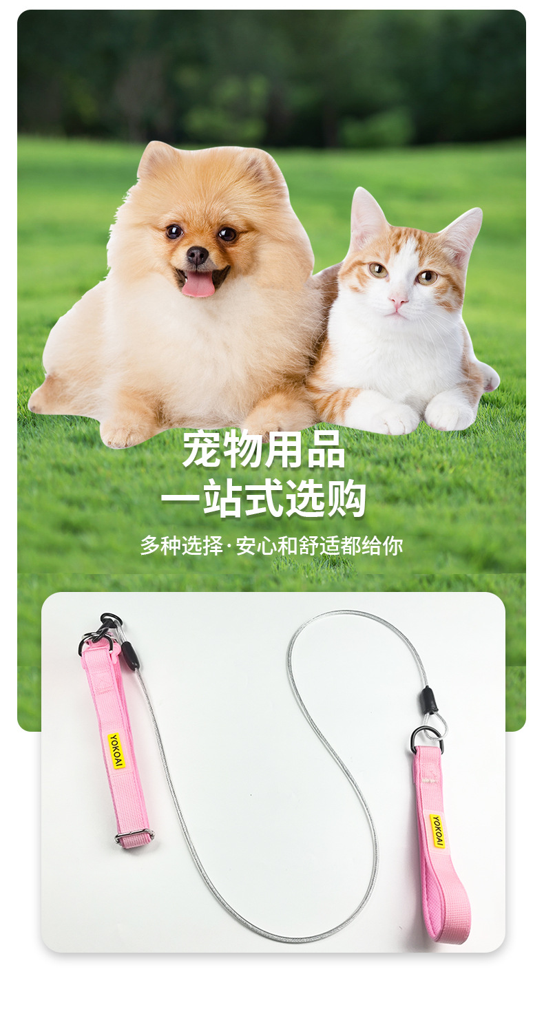 애완 동물 견인 로프 제조 업체 도매 애완 동물 와이어 로프 방폭형 개 산책 로프 고양이 산책 로프 애완 동물 용품스토어 가기
