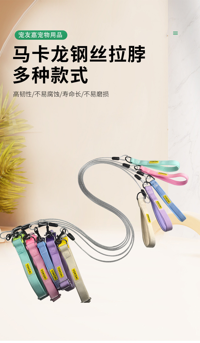 애완 동물 견인 로프 제조 업체 도매 애완 동물 와이어 로프 방폭형 개 산책 로프 고양이 산책 로프 애완 동물 용품