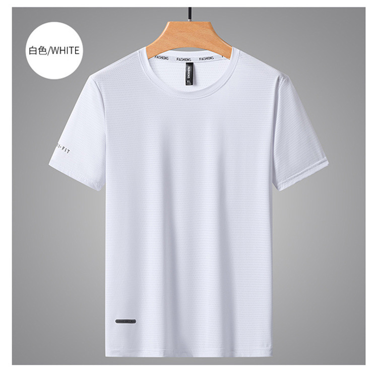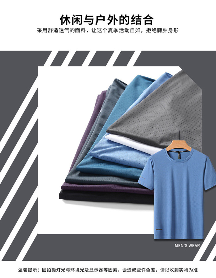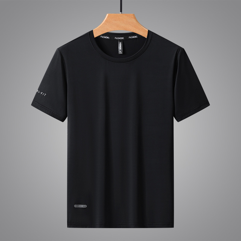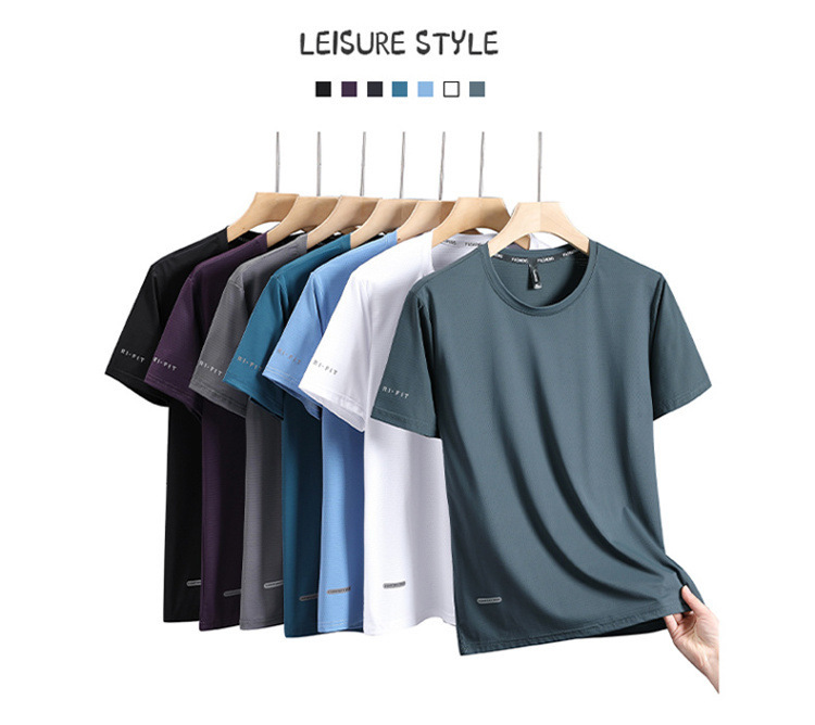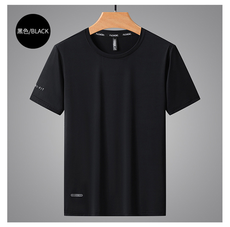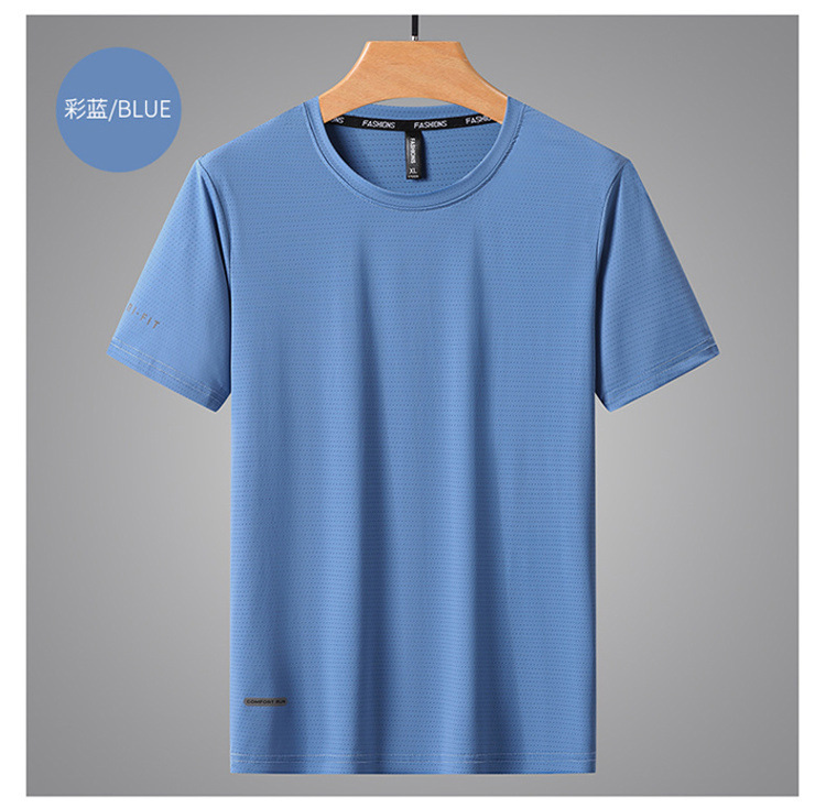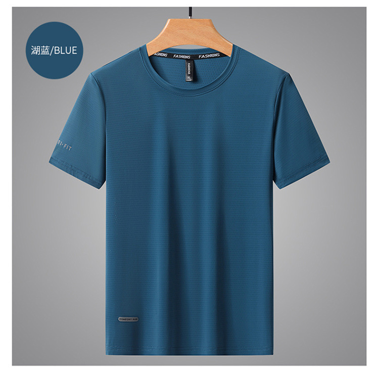 반팔 남성용 아이스 실크 티셔츠 여름 얇은 통기성 스포츠 피트니스 속건성 러닝 탑 대형 라운드 넥 캐주얼