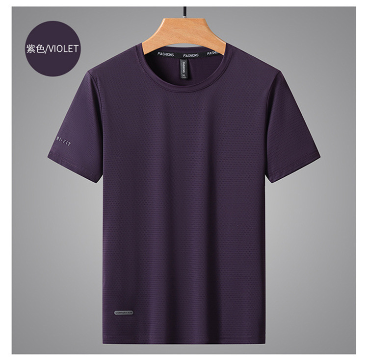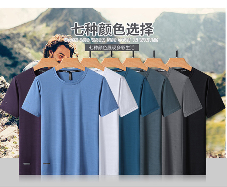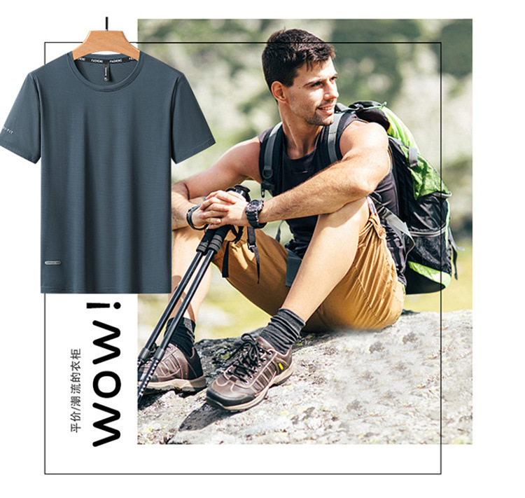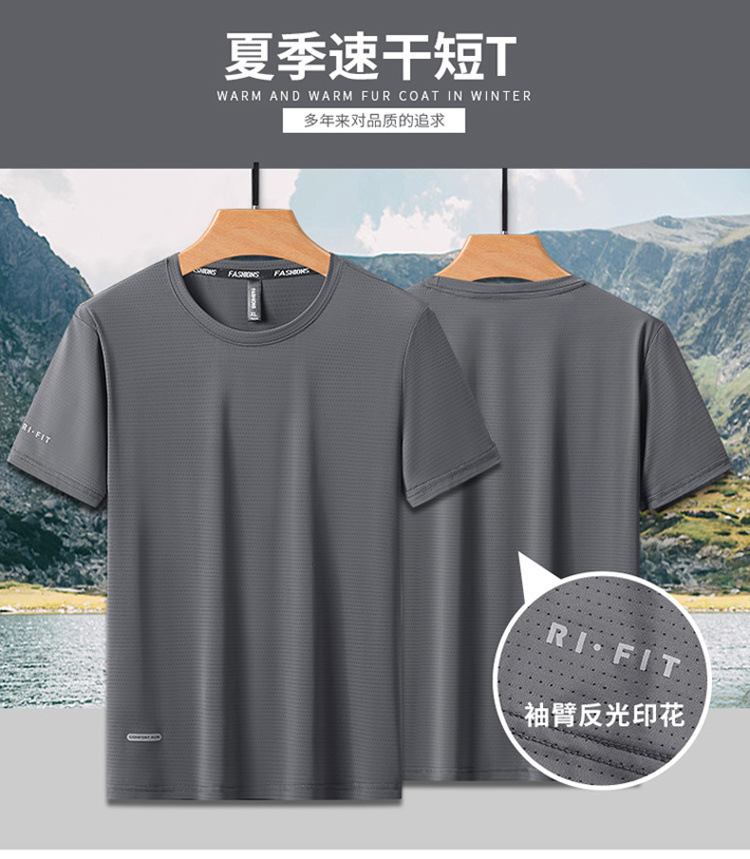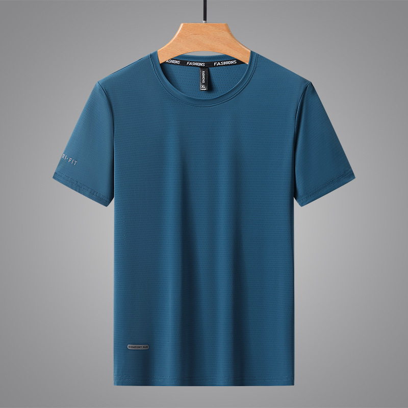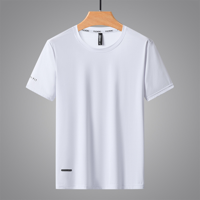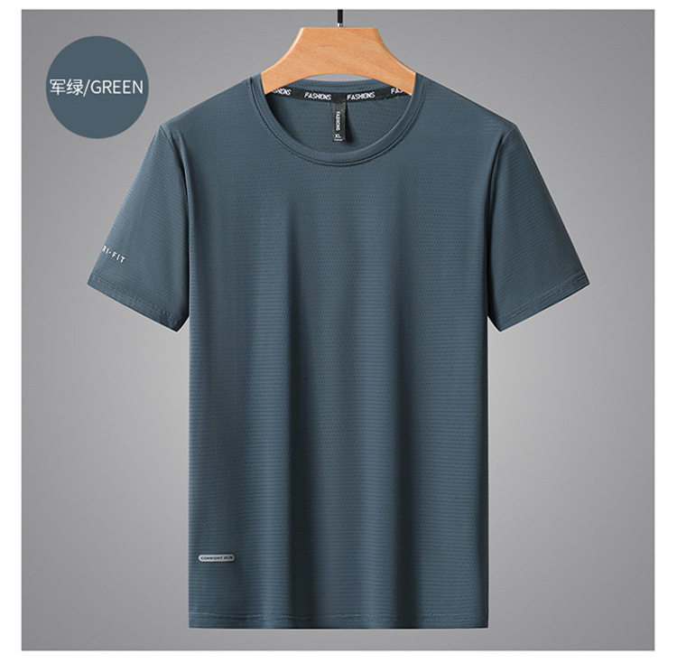 반팔 남성용 아이스 실크 티셔츠 여름 얇은 통기성 스포츠 피트니스 속건성 러닝 탑 대형 라운드 넥 캐주얼