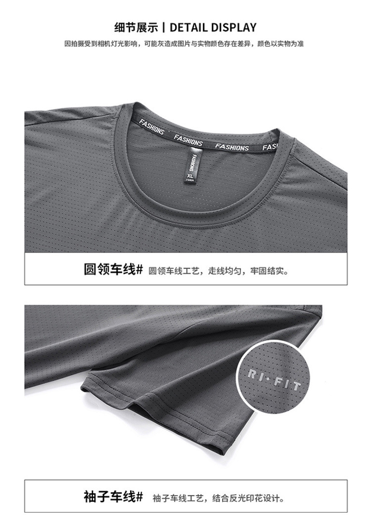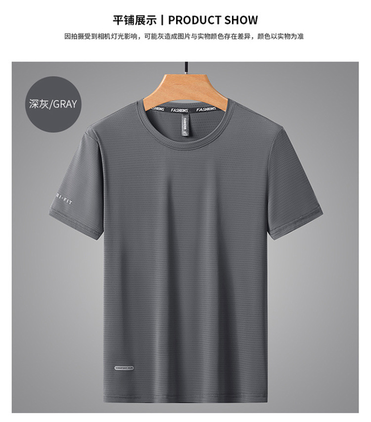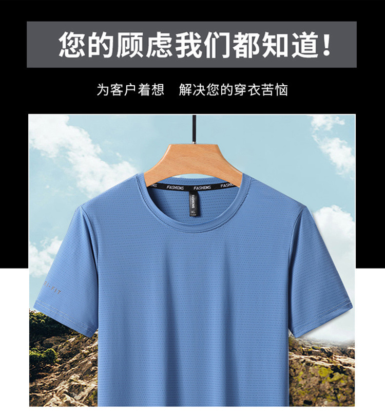 반팔 남성용 아이스 실크 티셔츠 여름 얇은 통기성 스포츠 피트니스 속건성 러닝 탑 대형 라운드 넥 캐주얼스토어 가기
