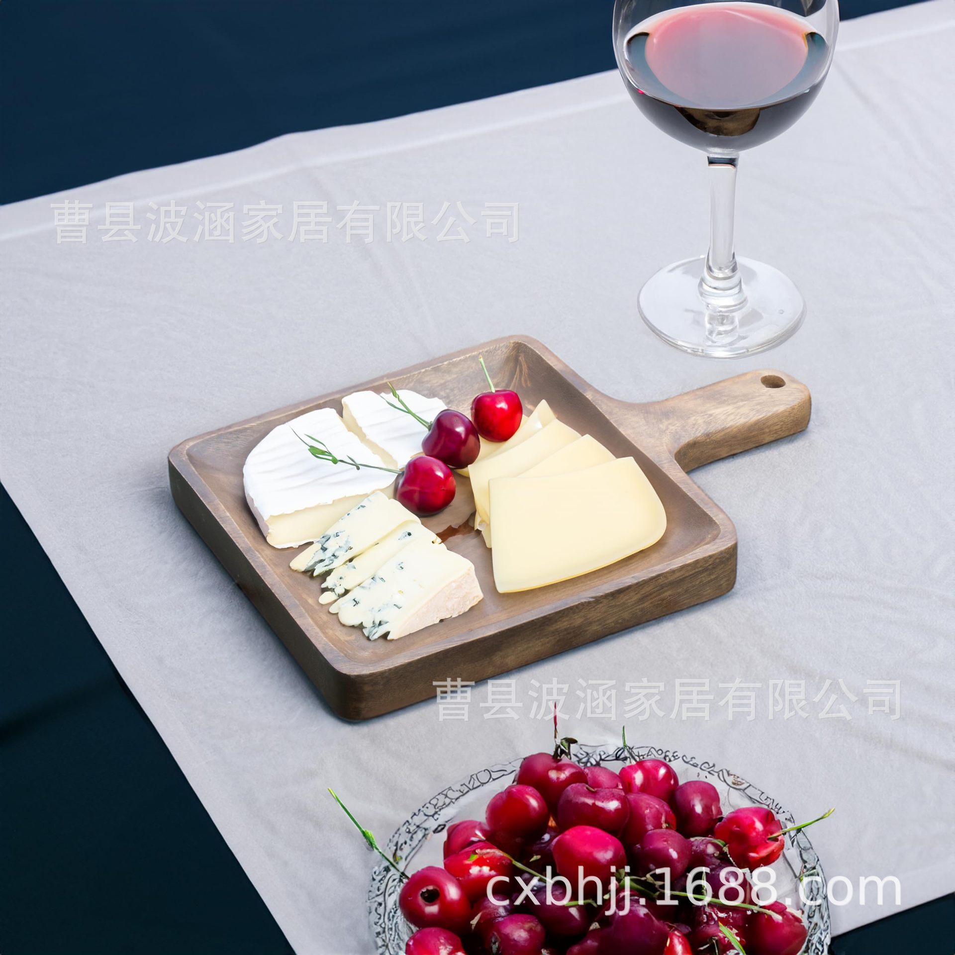 손잡이가 있는 직사각형 나무 트레이 피자 스테이크 나무 접시 레스토랑 케이크 과일 스낵 접시 단단한 나무 가정용 접시스토어 가기