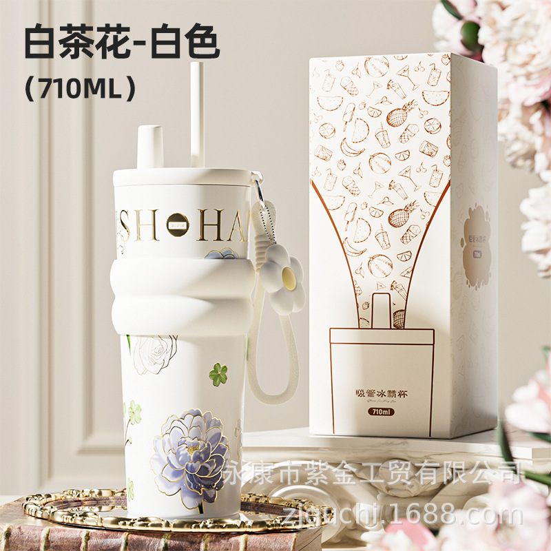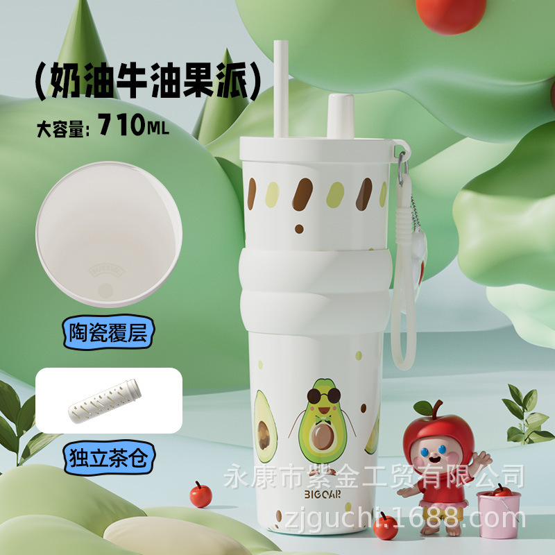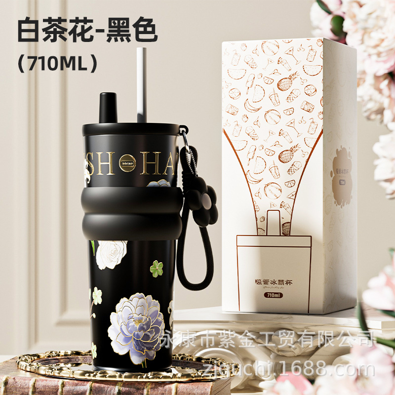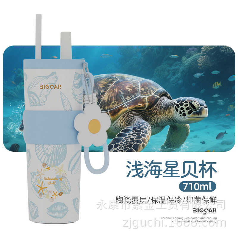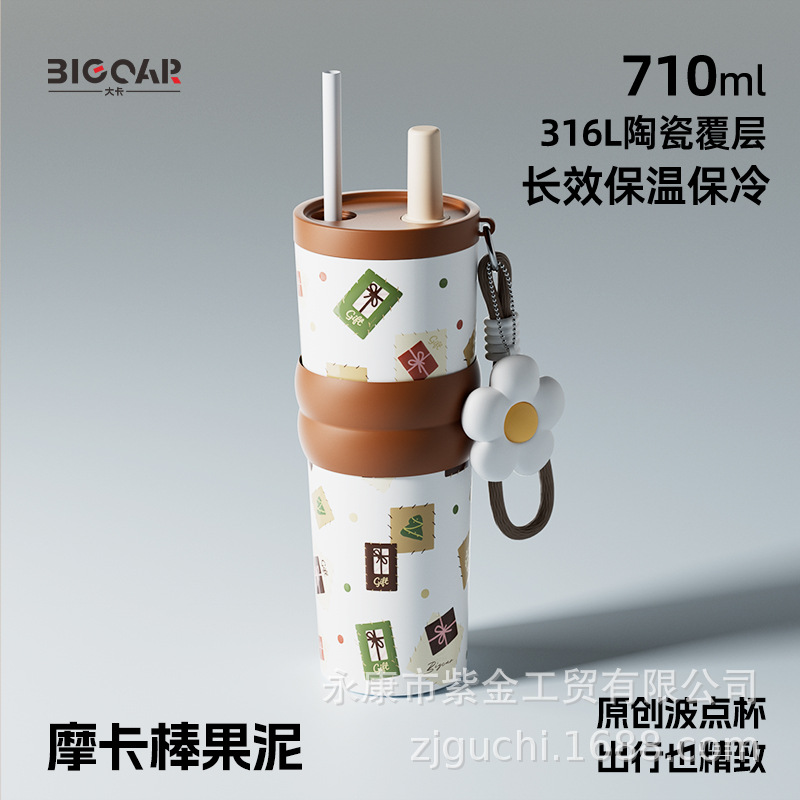316 스테인리스 빨대 보온병 대용량 여성용 고급스러운 세라믹 내부 아이스컵 휴대용 물병 맞춤 제작스토어 가기