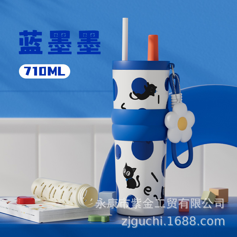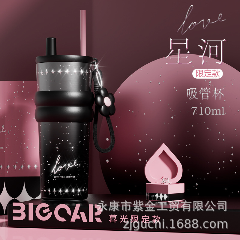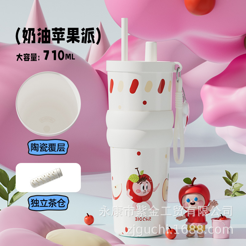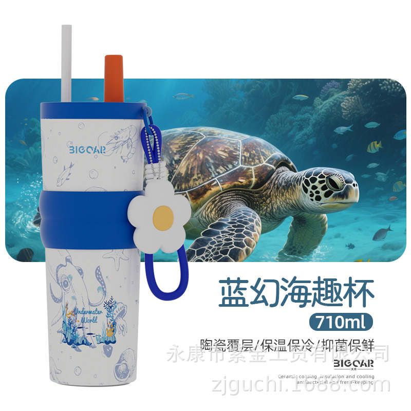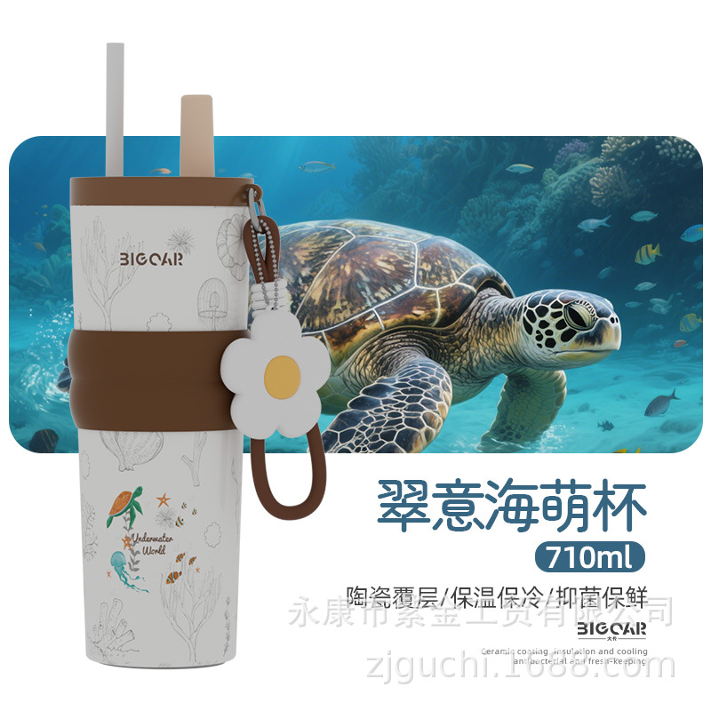 316 스테인리스 빨대 보온병 대용량 여성용 고급스러운 세라믹 내부 아이스컵 휴대용 물병 맞춤 제작스토어 가기