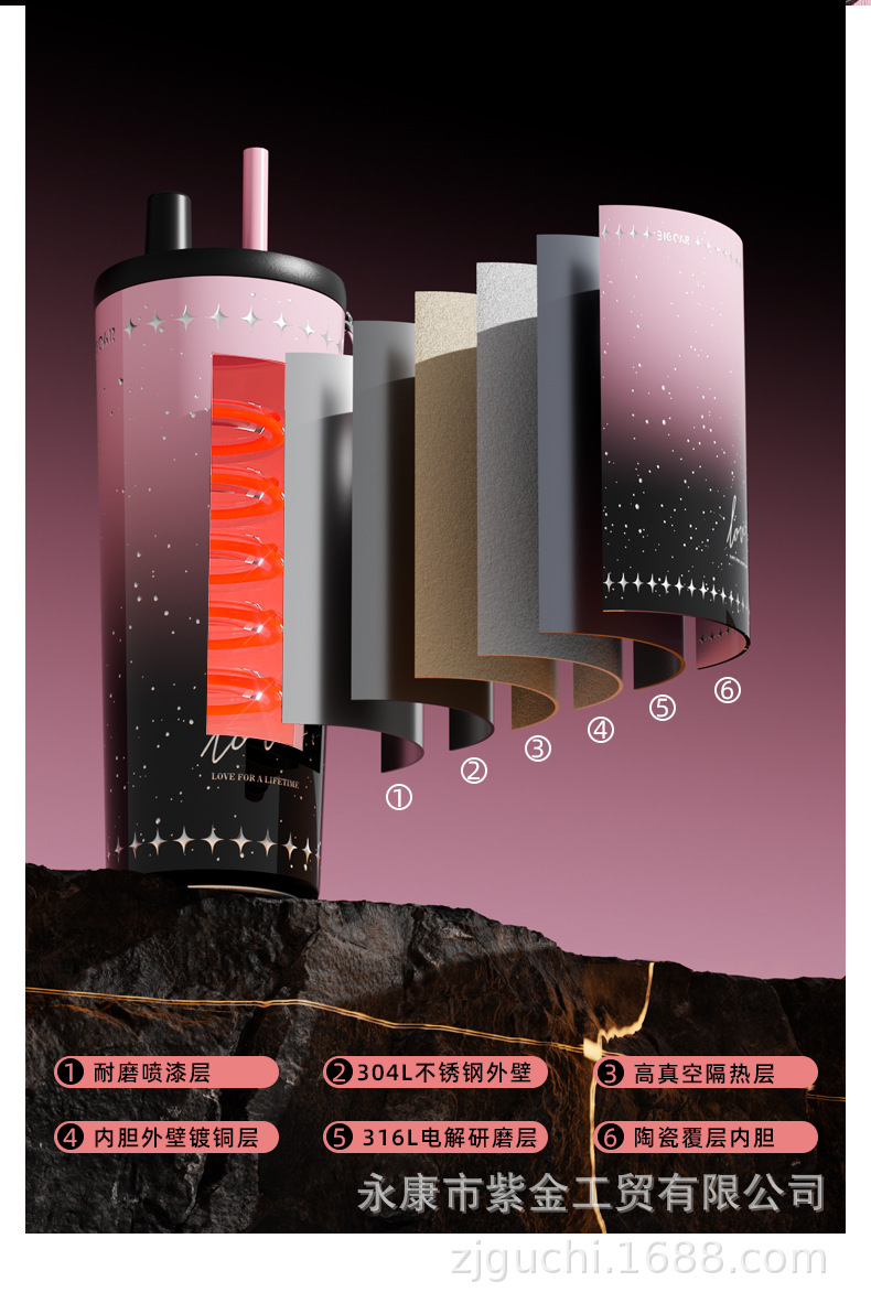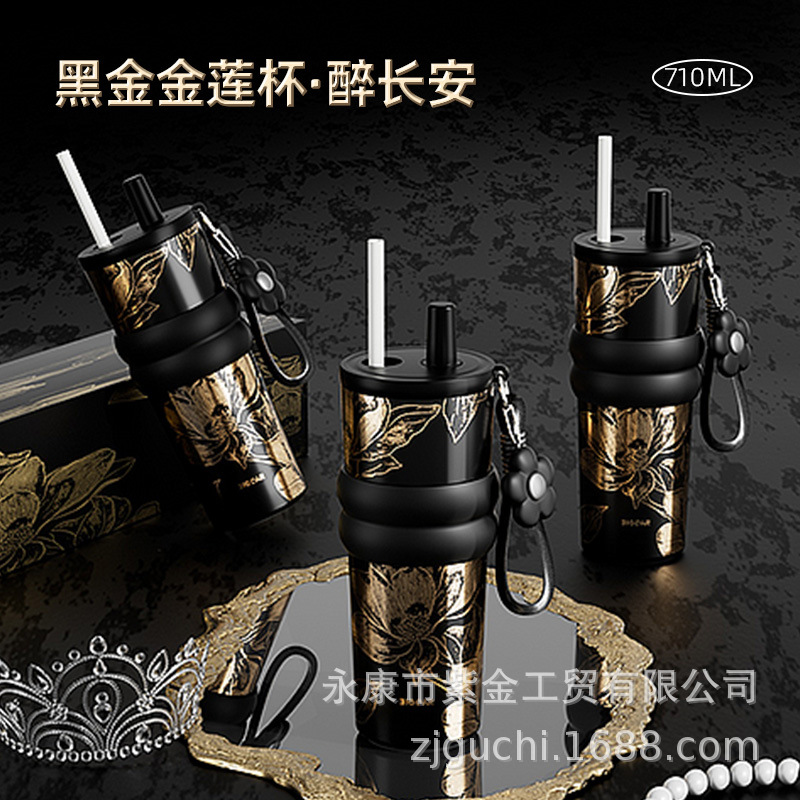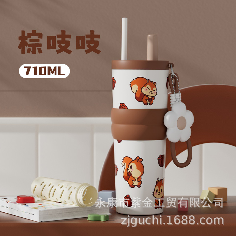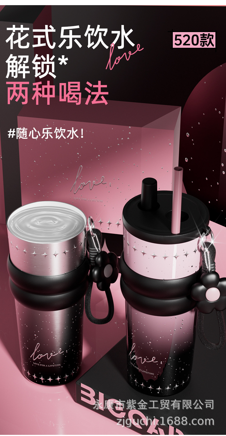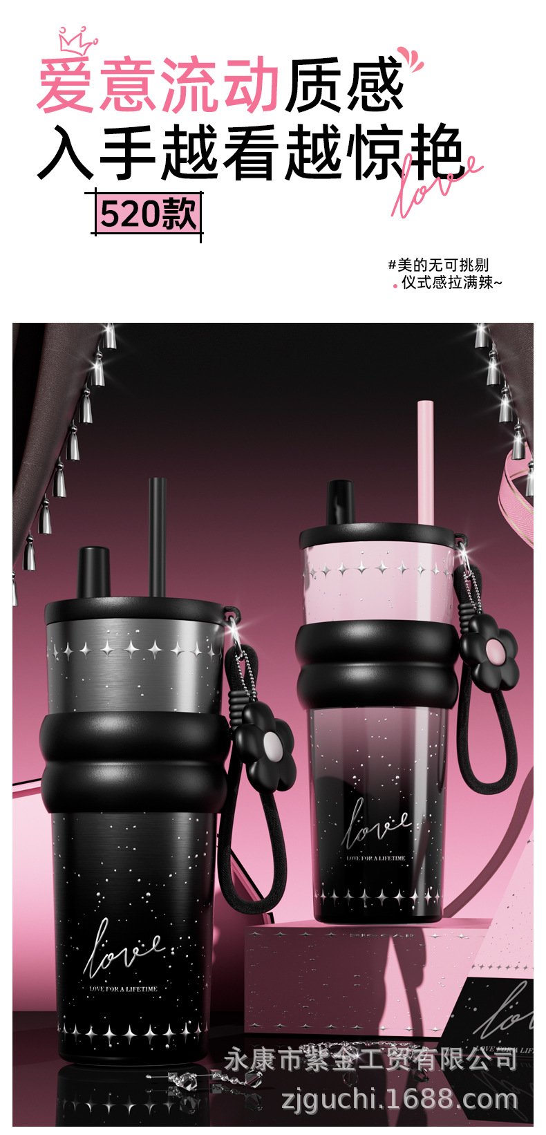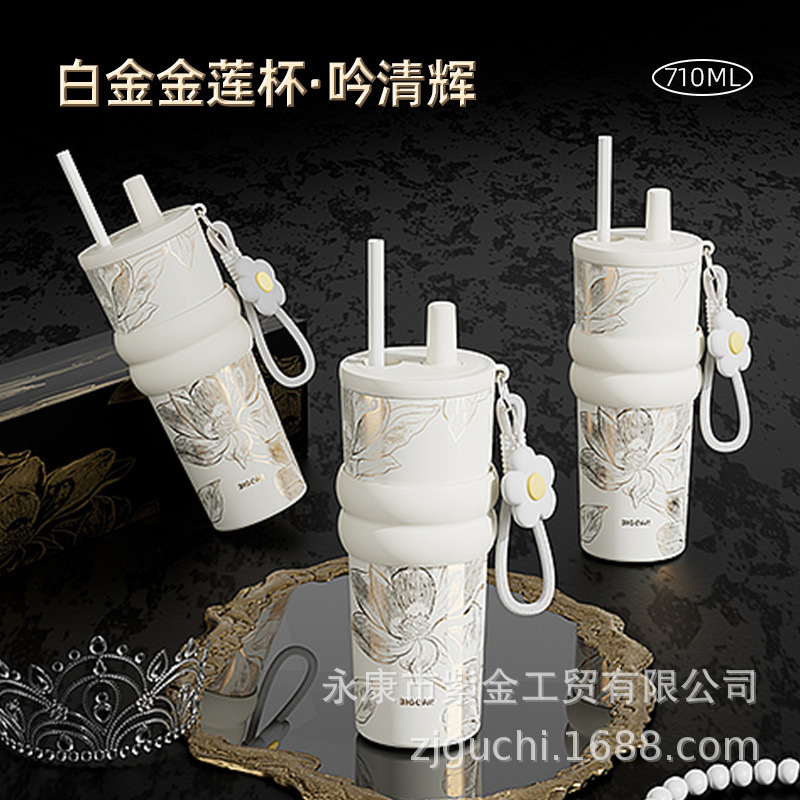 316 스테인리스 빨대 보온병 대용량 여성용 고급스러운 세라믹 내부 아이스컵 휴대용 물병 맞춤 제작
