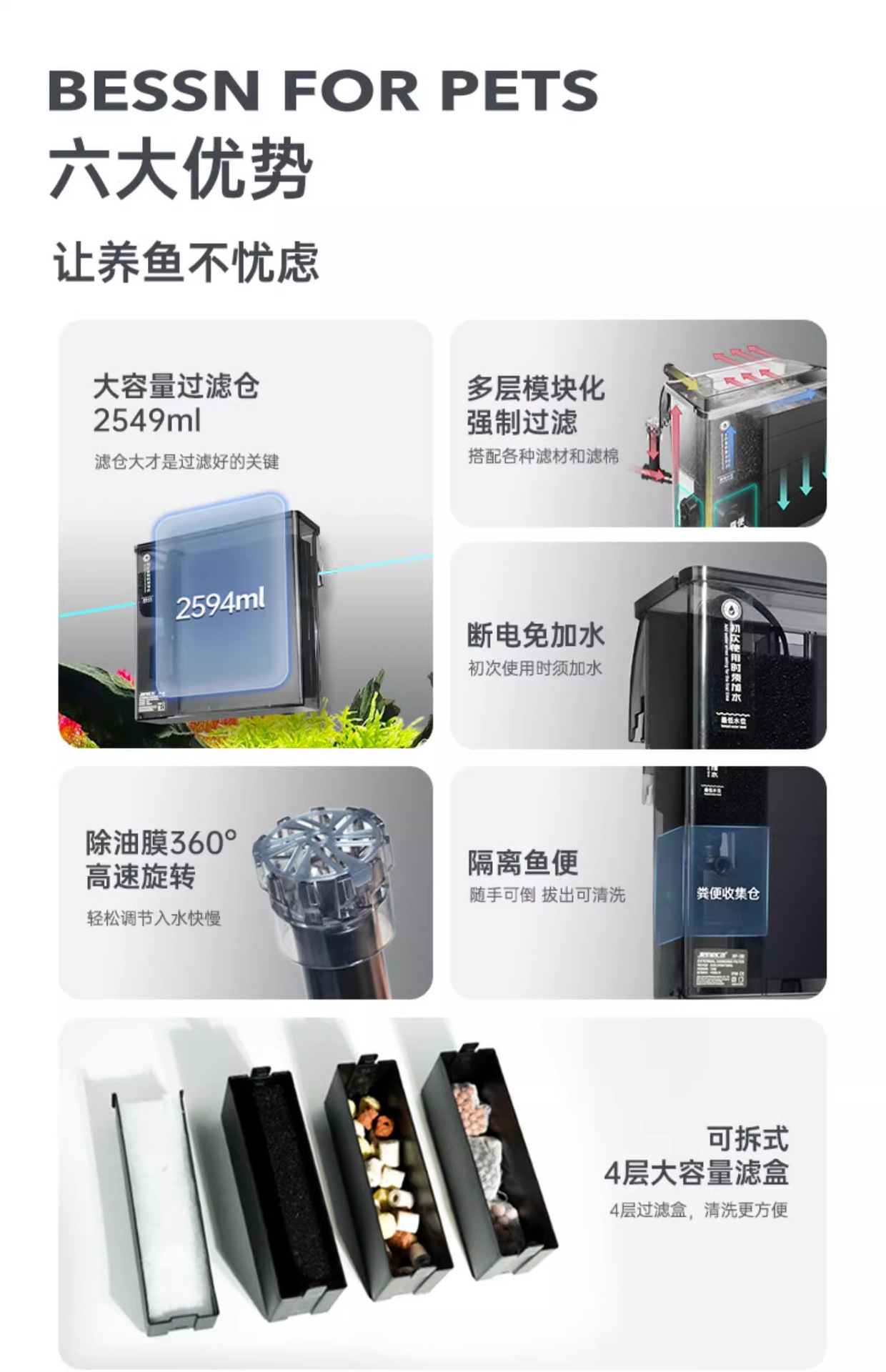 • [2.5L 초대형 필터통 + 물고기 배설물 수집 + 무료 중공볼 0.5kg개] 10W 40-60cm 수조에 적합