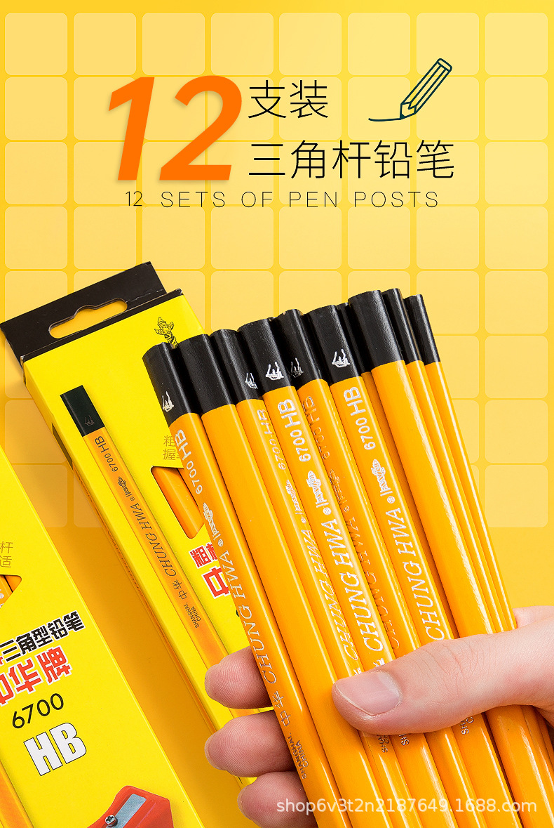 중국 연필 6700 초보자가 쓰기 시작할 수 있는 대형 삼각형 두꺼운 HB 두꺼운 막대 학생이 서예를 연습할 수 있는 그립 자세 교정 2B스토어 가기