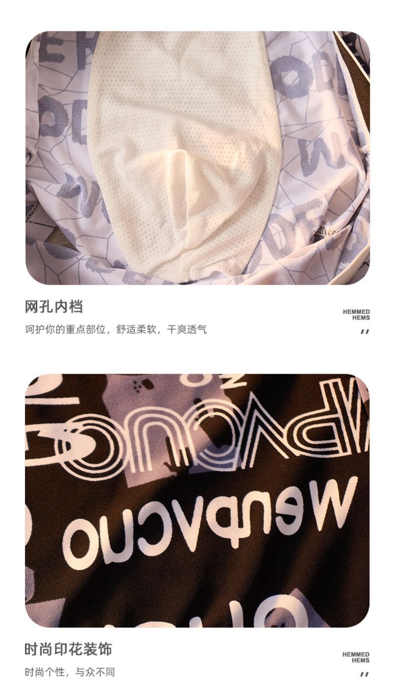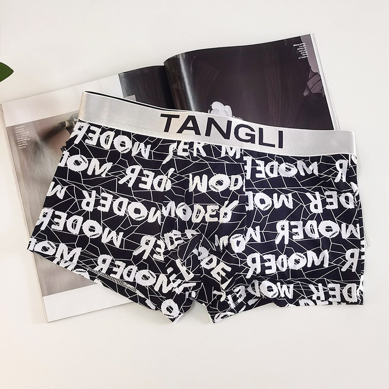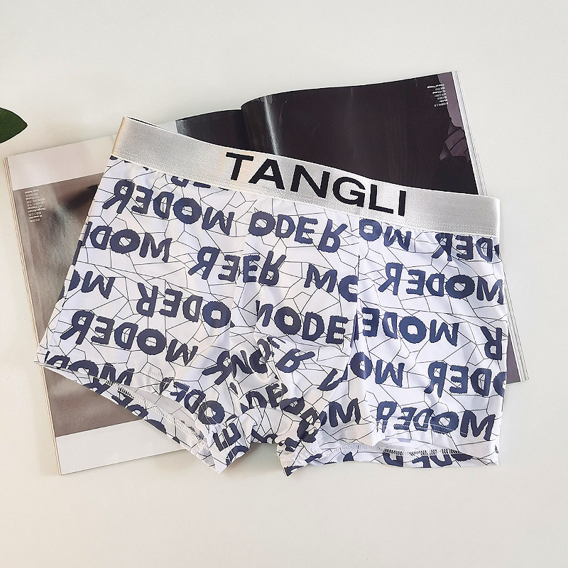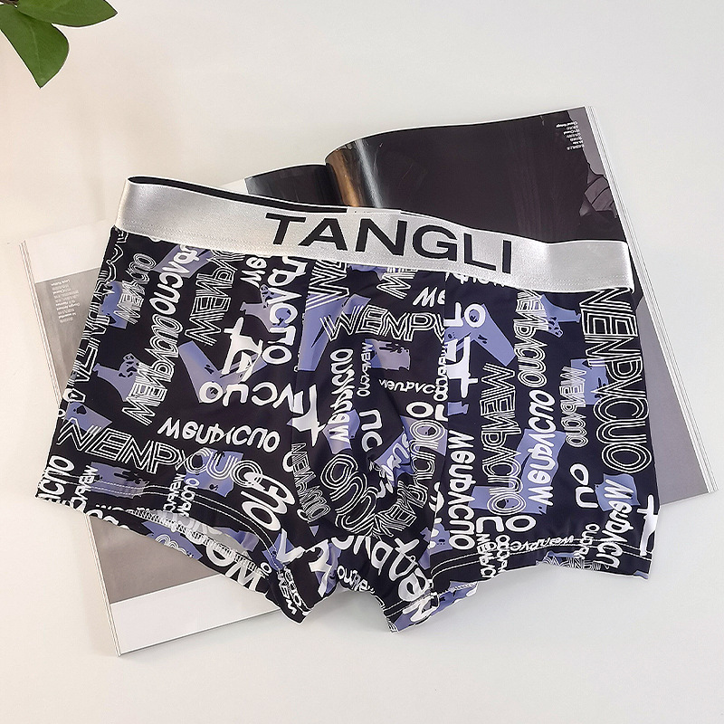 남성 속옷 여름 얼음 느낌의 얼음 실크 복서 팬티 초박형 통기성 패션 프린트 트렌디하고 편안한 복서 팬티