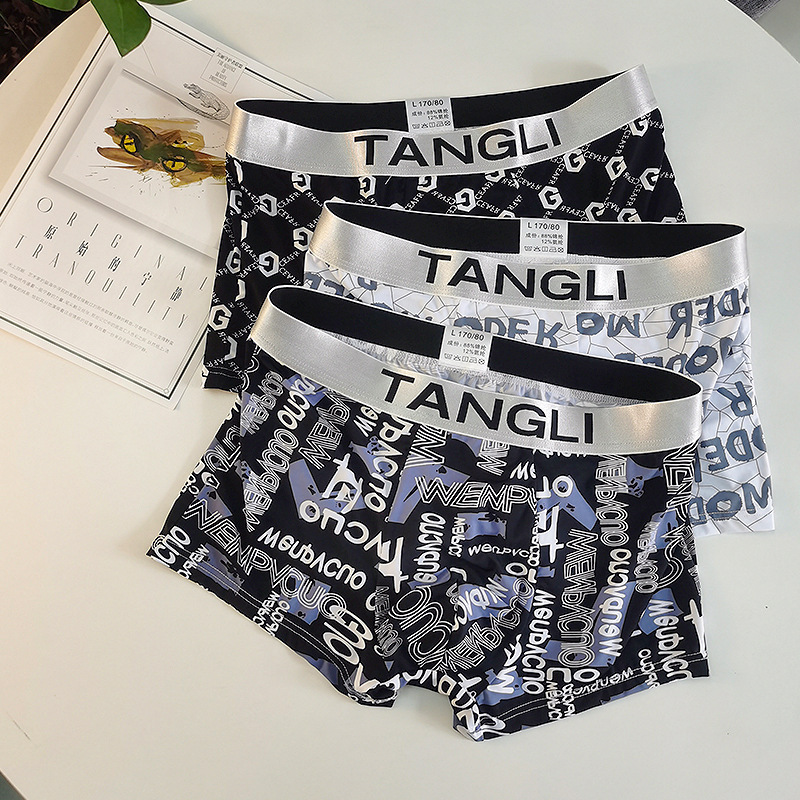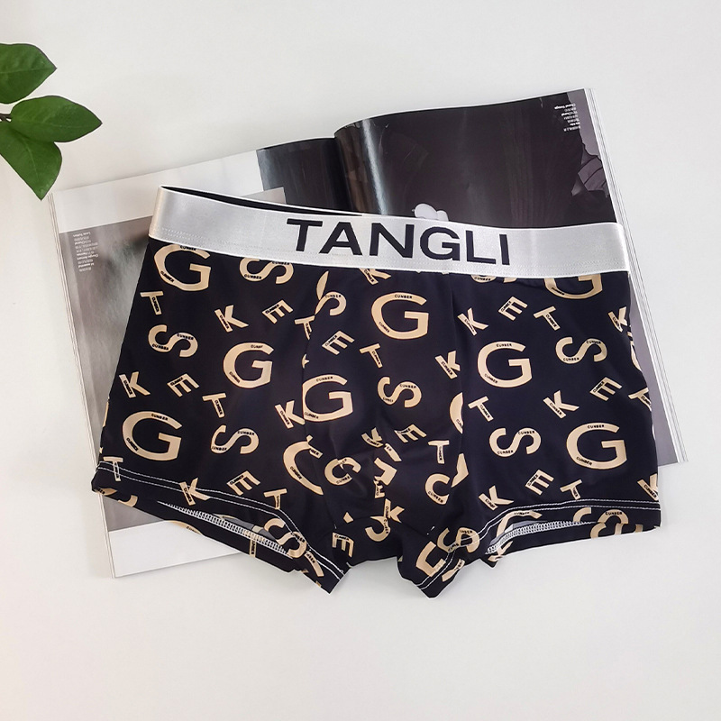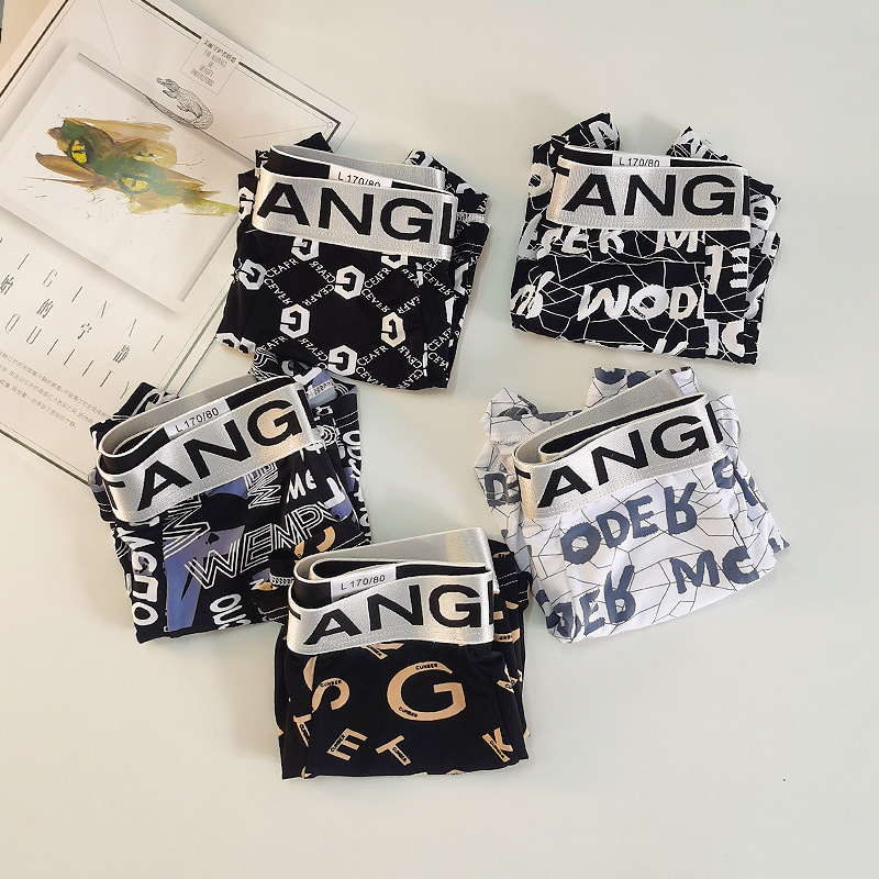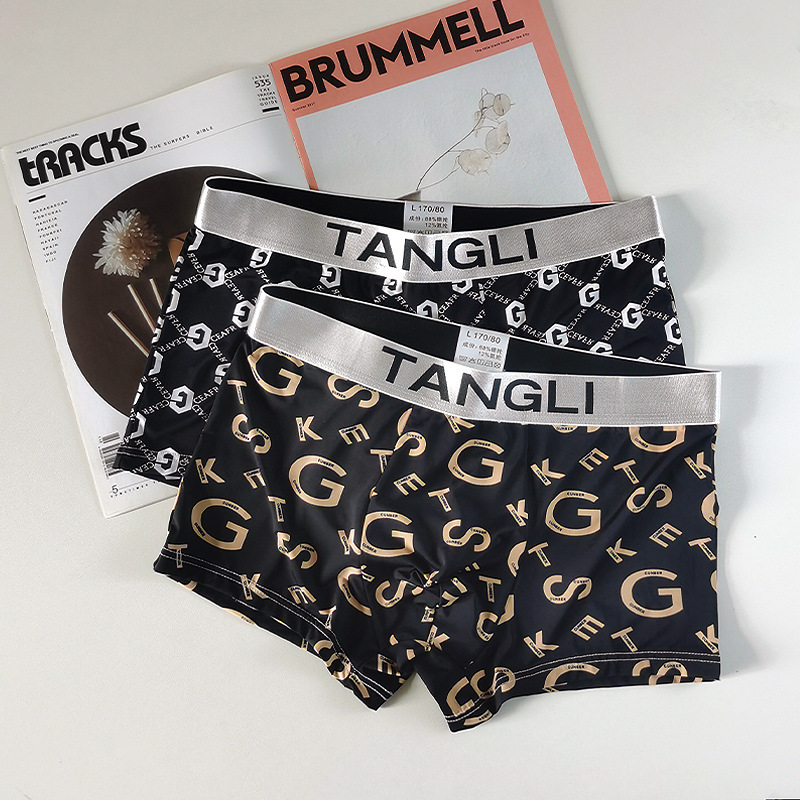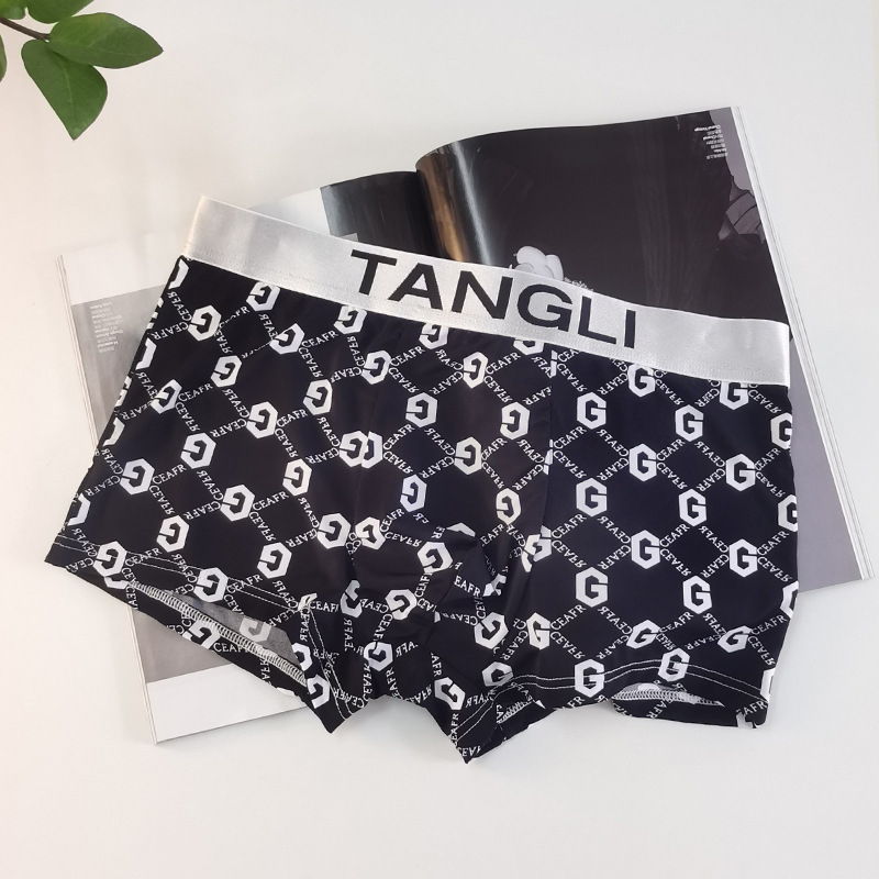 남성 속옷 여름 얼음 느낌의 얼음 실크 복서 팬티 초박형 통기성 패션 프린트 트렌디하고 편안한 복서 팬티
