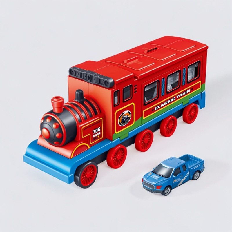 • 빨간색 컨테이너 배출 레일카(자동차 포함)/길이 26cm