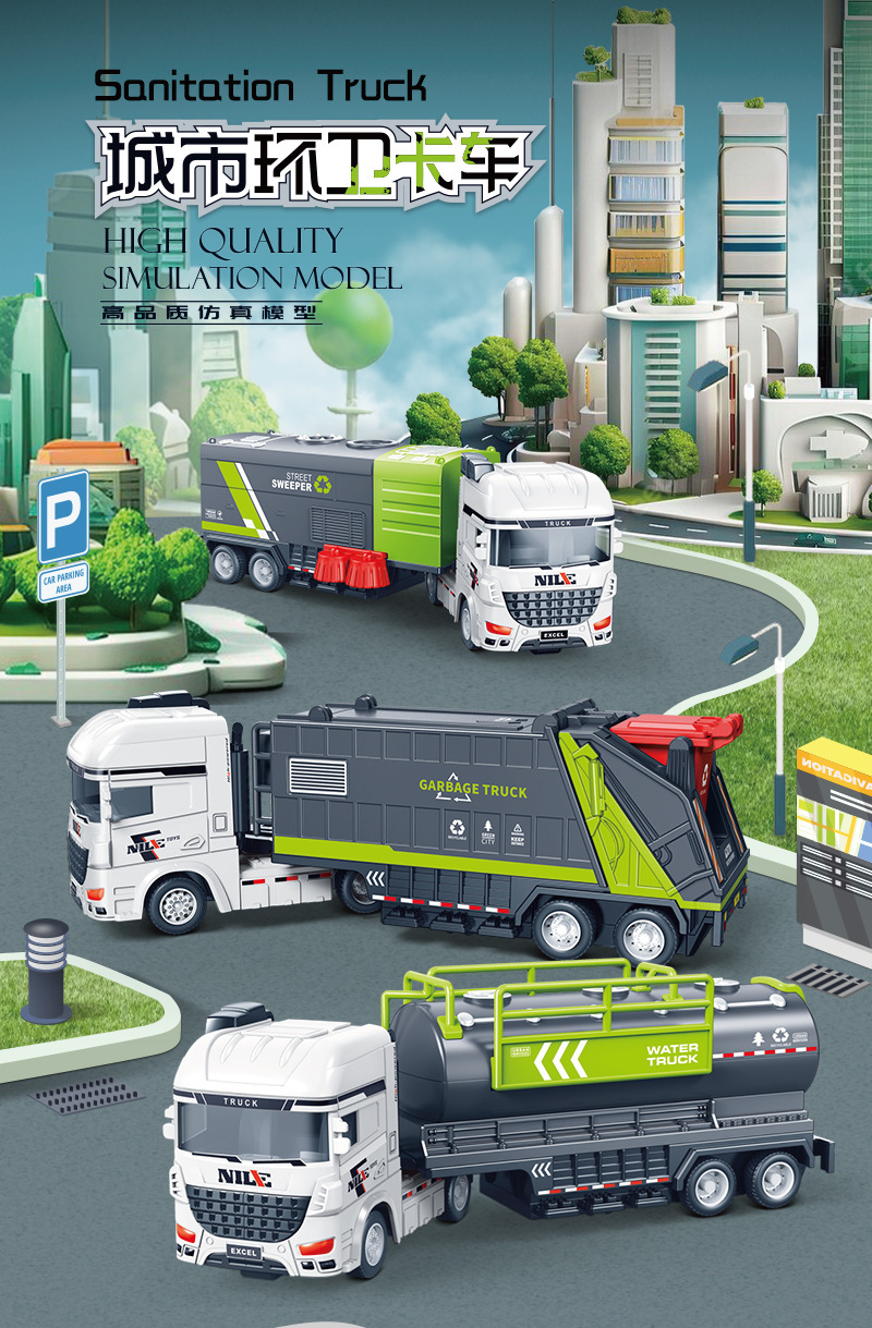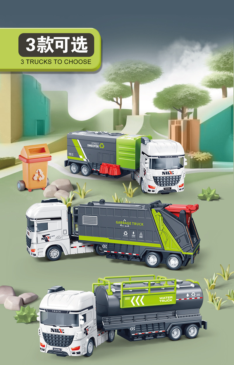 관성 대형 어린이 장난감 자동차 세트 시뮬레이션 위생 스프링클러 컨테이너 운송 엔지니어링 군사 모델 장난감스토어 가기