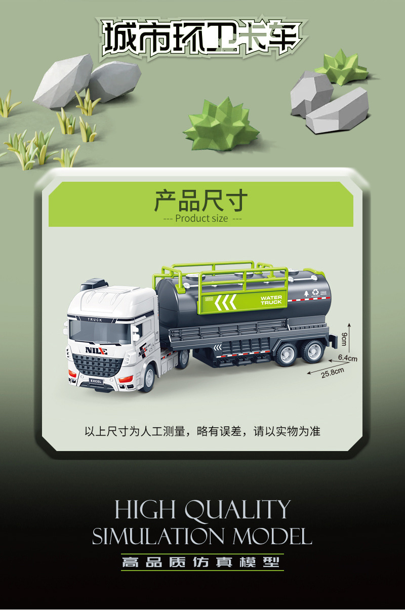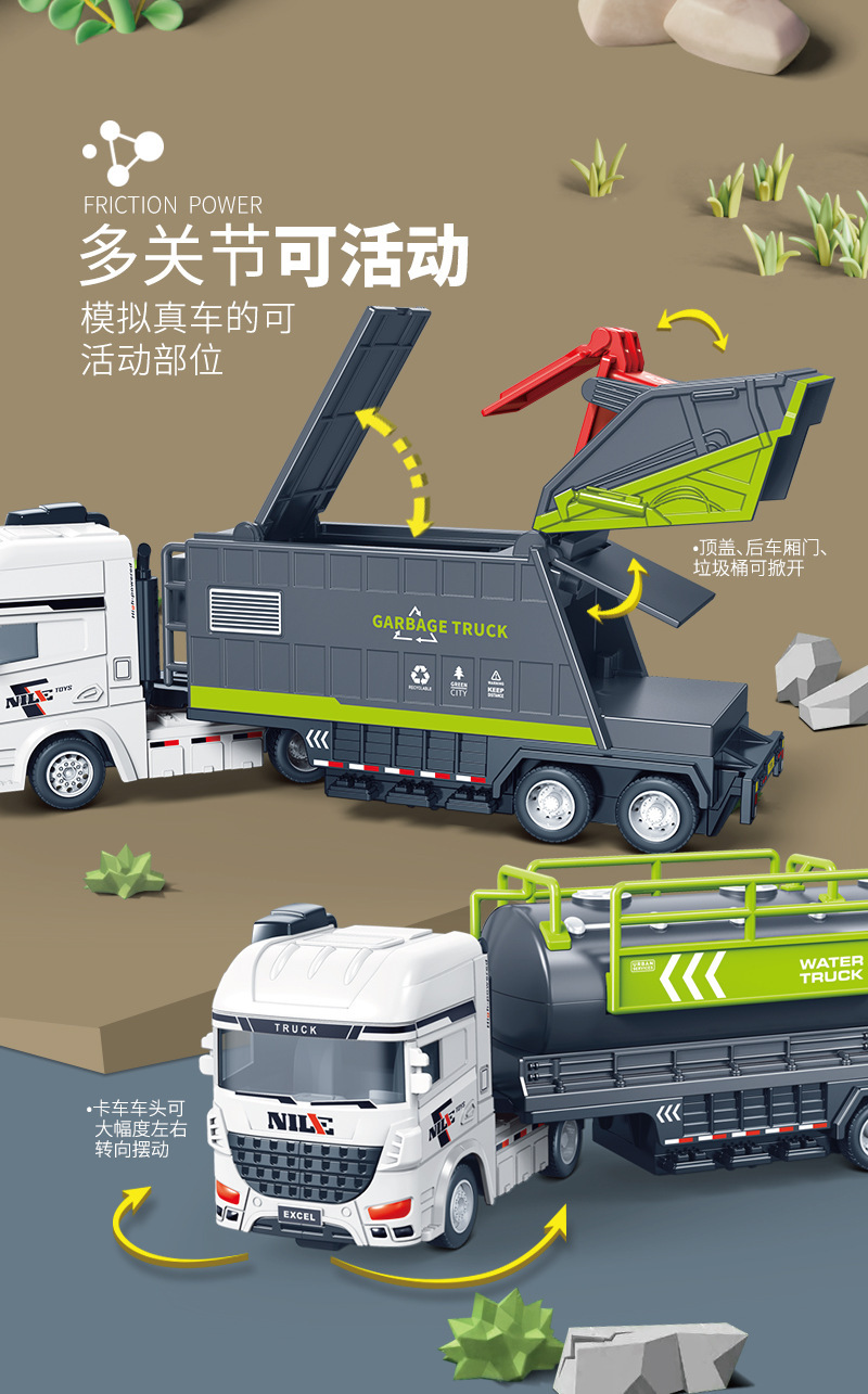 관성 대형 어린이 장난감 자동차 세트 시뮬레이션 위생 스프링클러 컨테이너 운송 엔지니어링 군사 모델 장난감