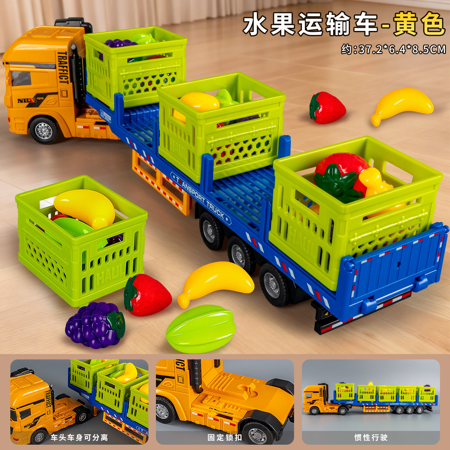 • 노란색 대형 관성 운송 트럭 (과일 포함)