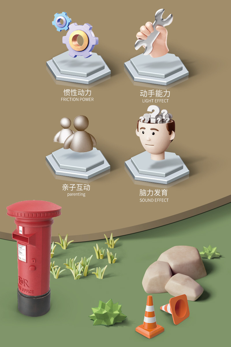 • [관성력/유연한 전방/미사일 베이스 회전 가능] 갈색 단거리 미사일 차량