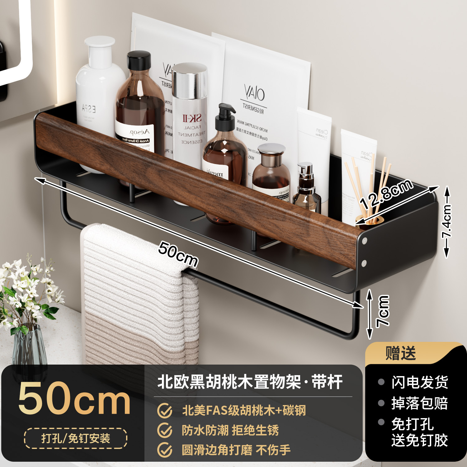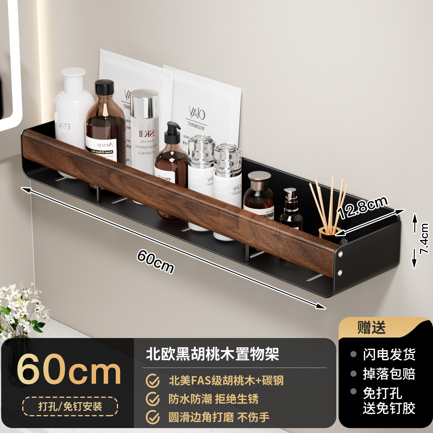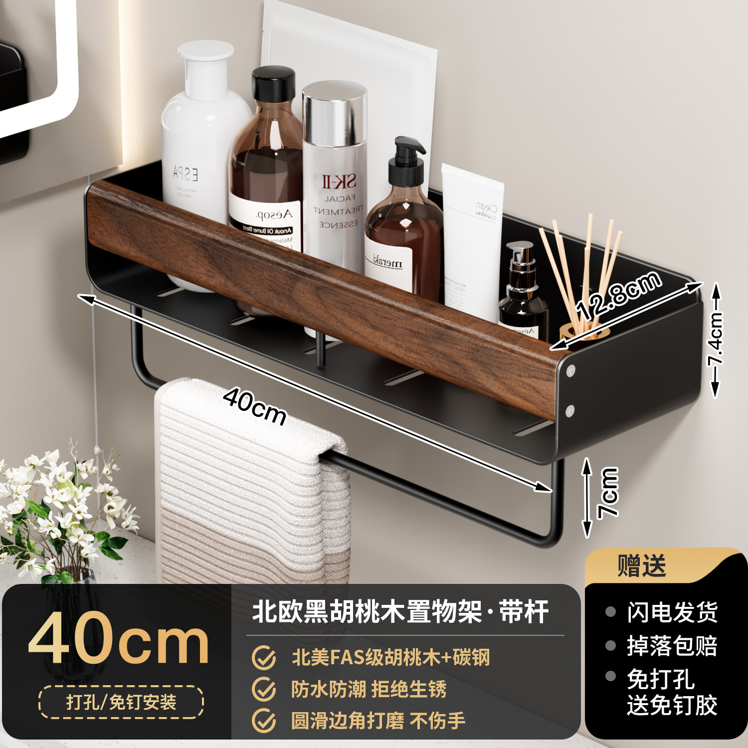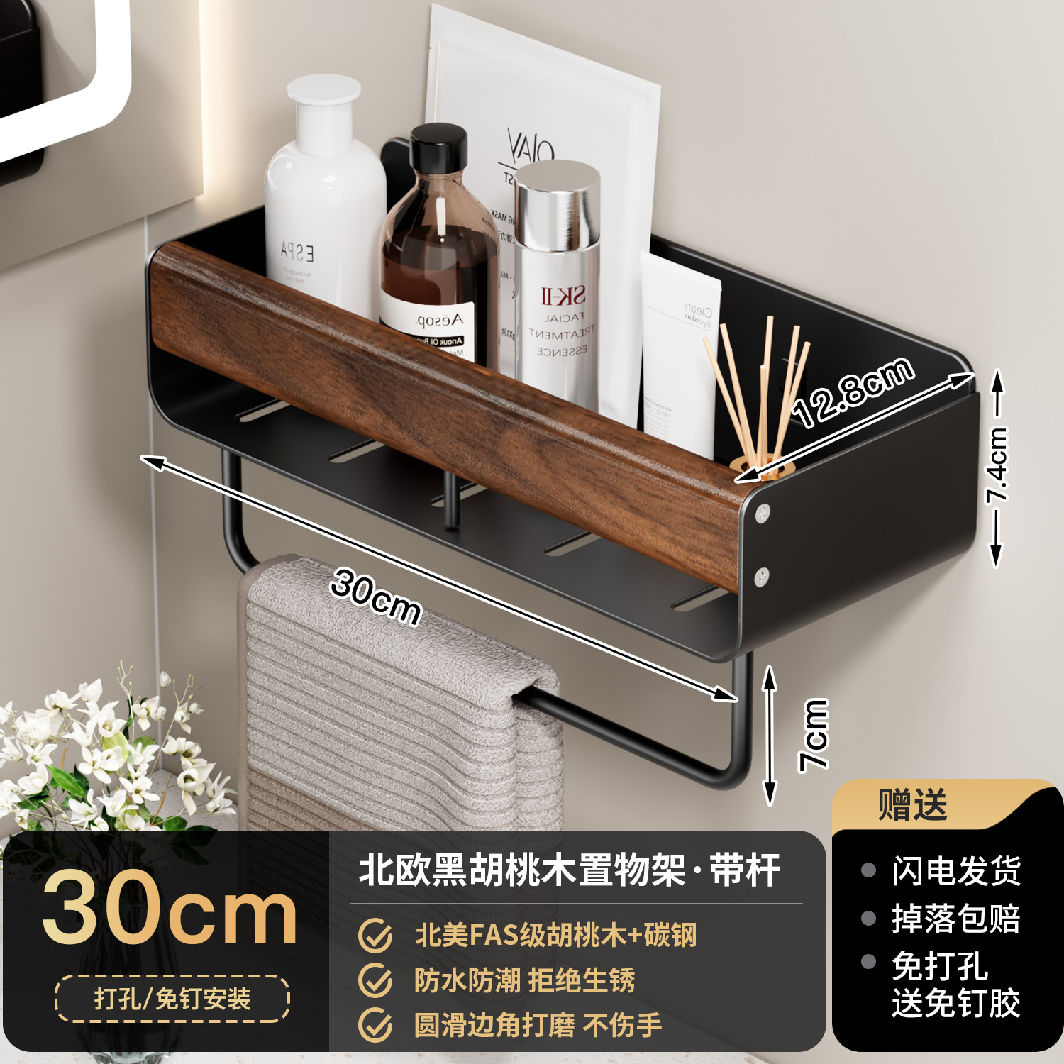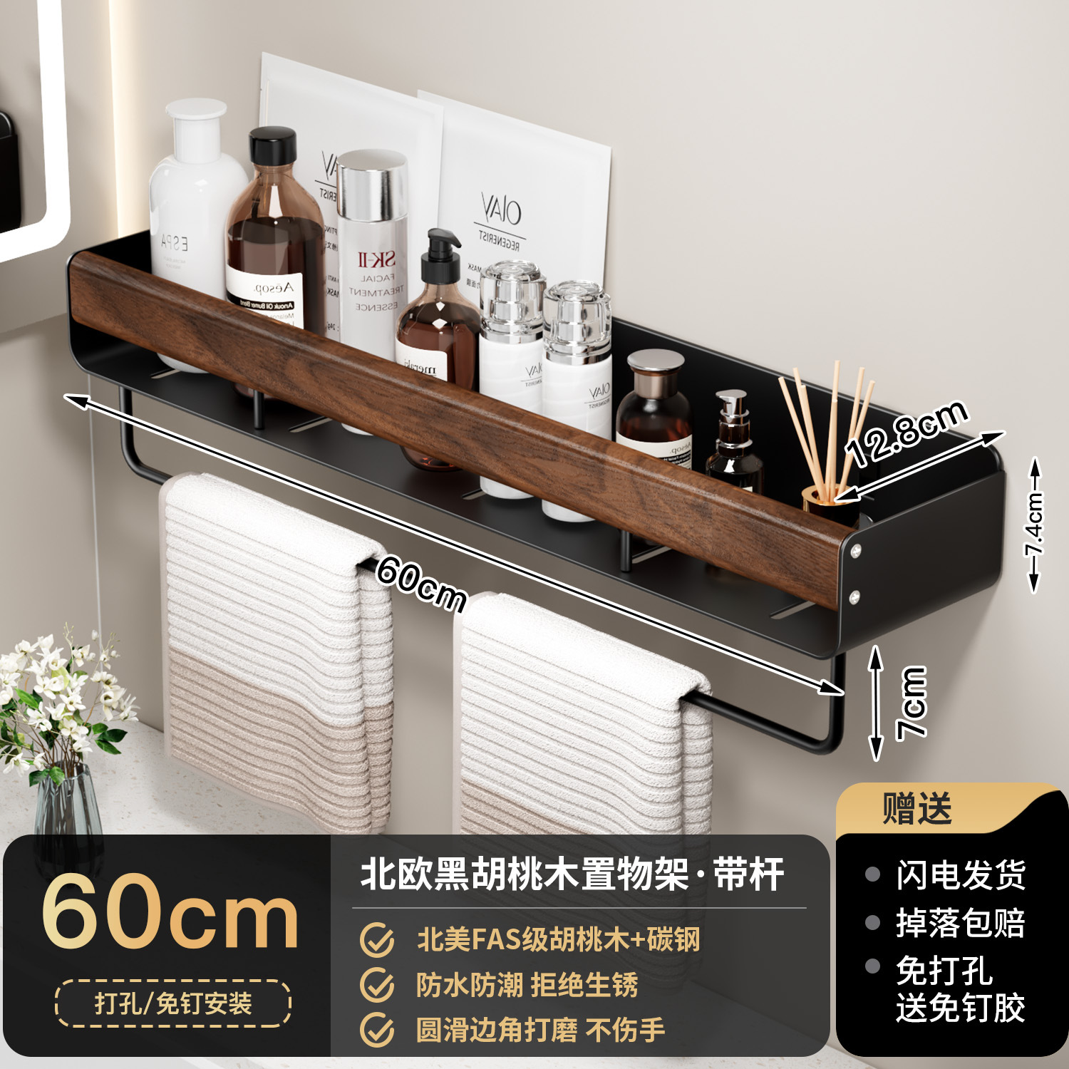 호두나무 욕실 수납 선반 벽걸이형 펀치 없는 욕실 화장대 수건걸이 화장품 수납