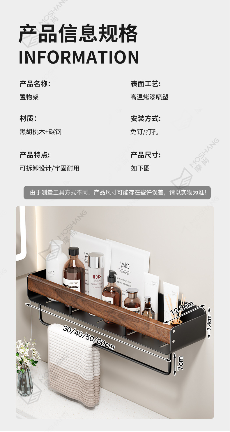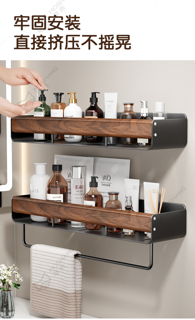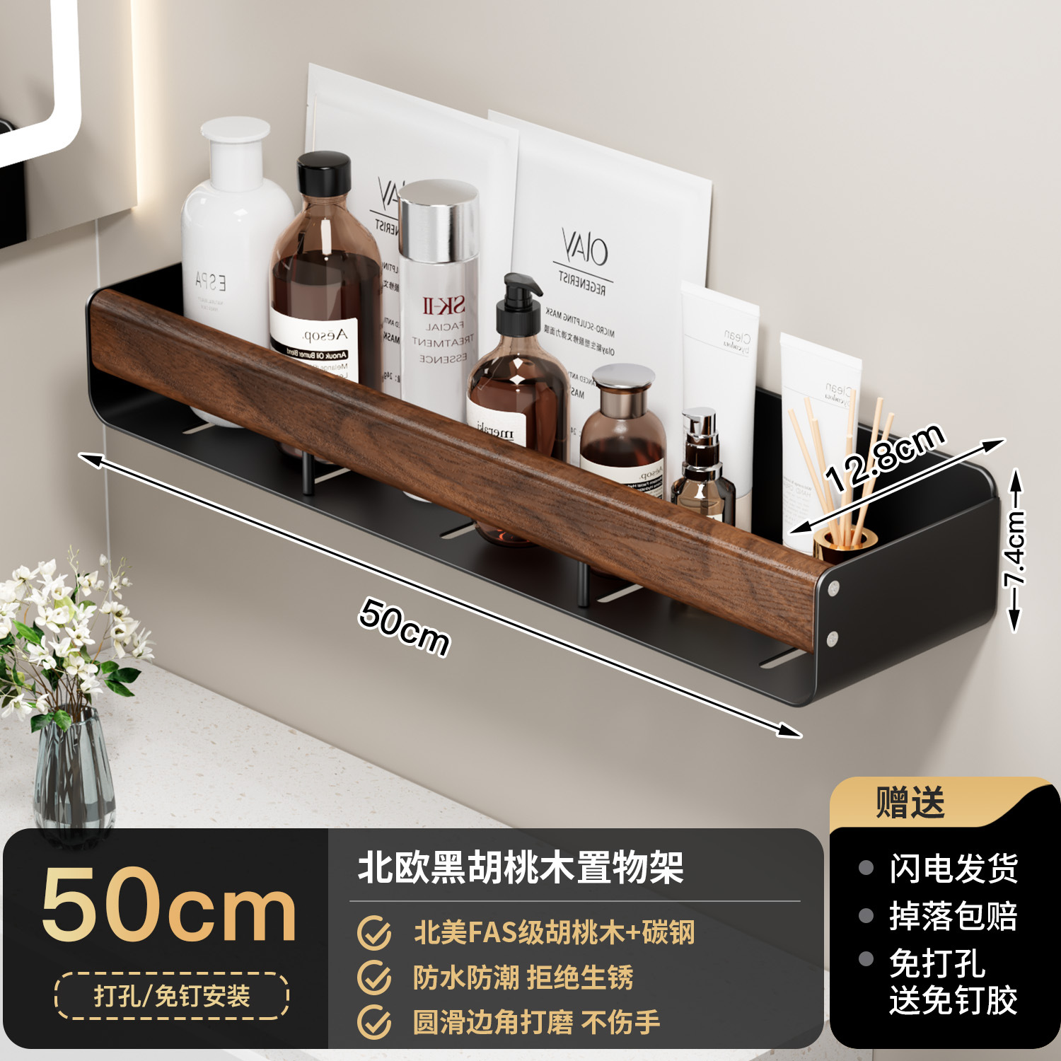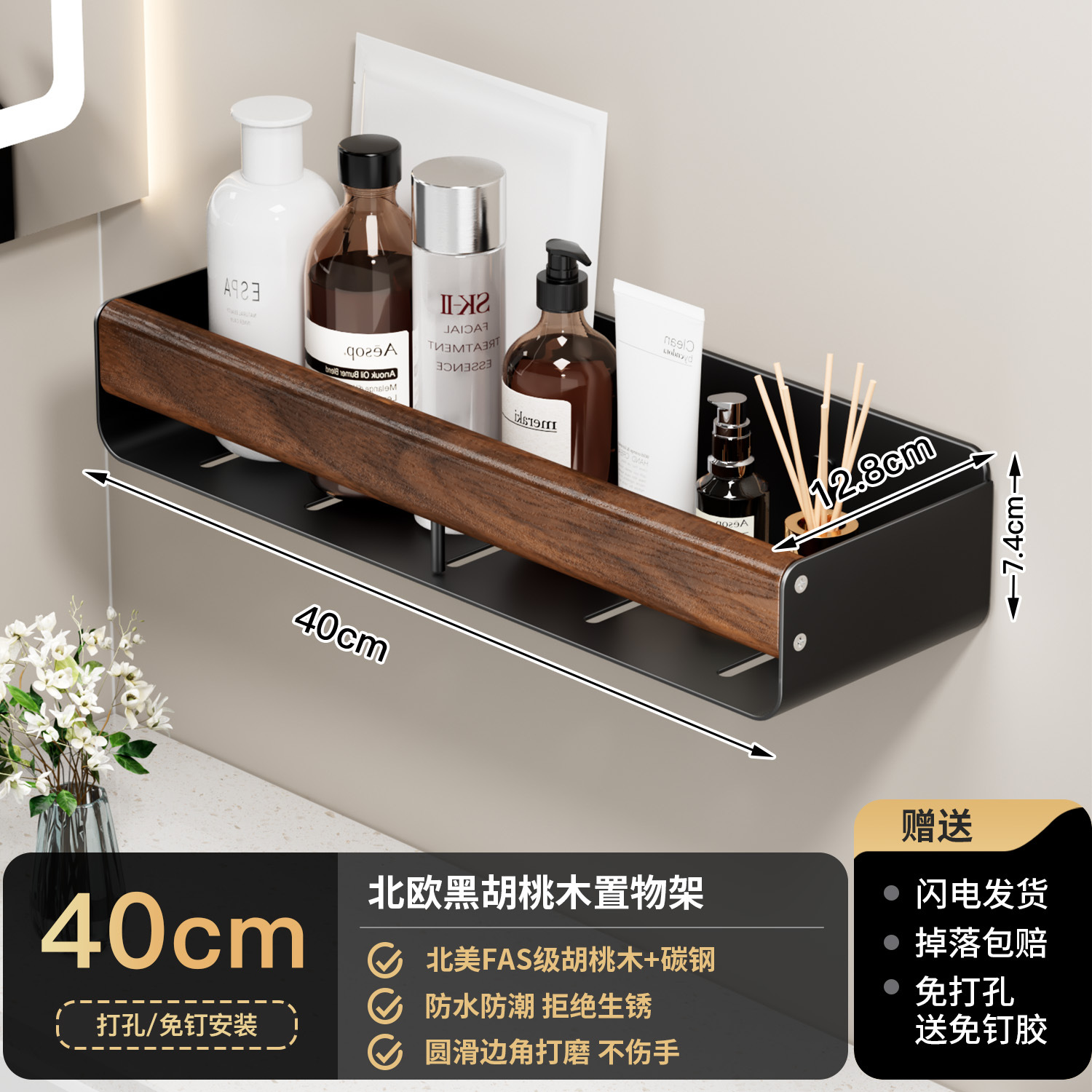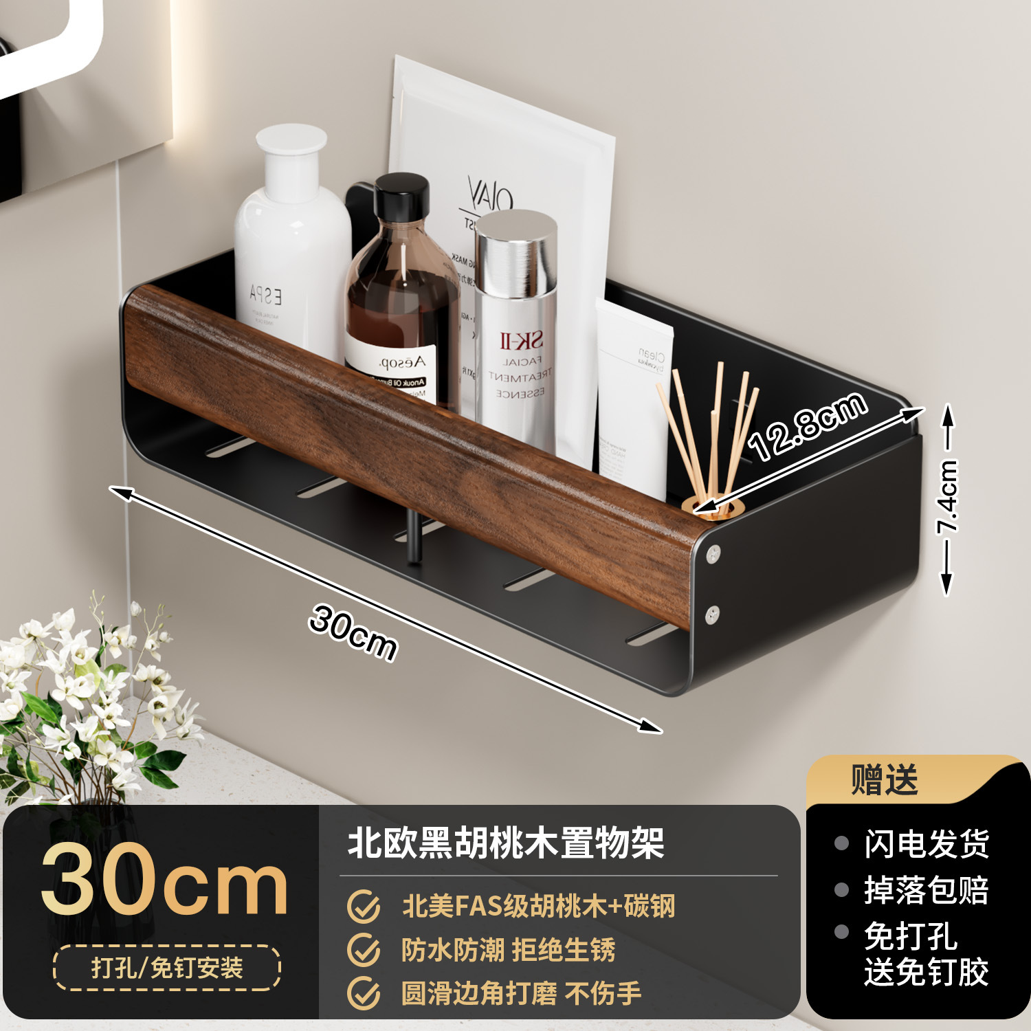 호두나무 욕실 수납 선반 벽걸이형 펀치 없는 욕실 화장대 수건걸이 화장품 수납