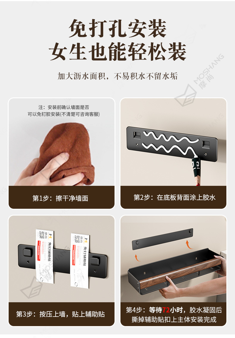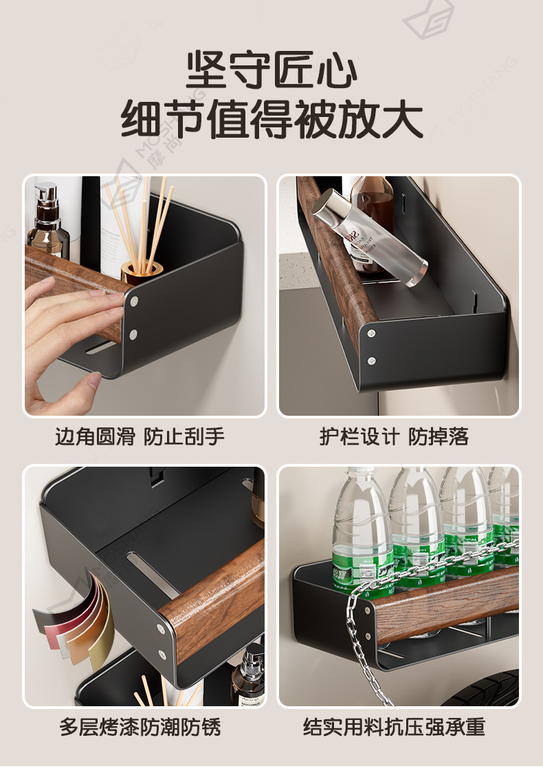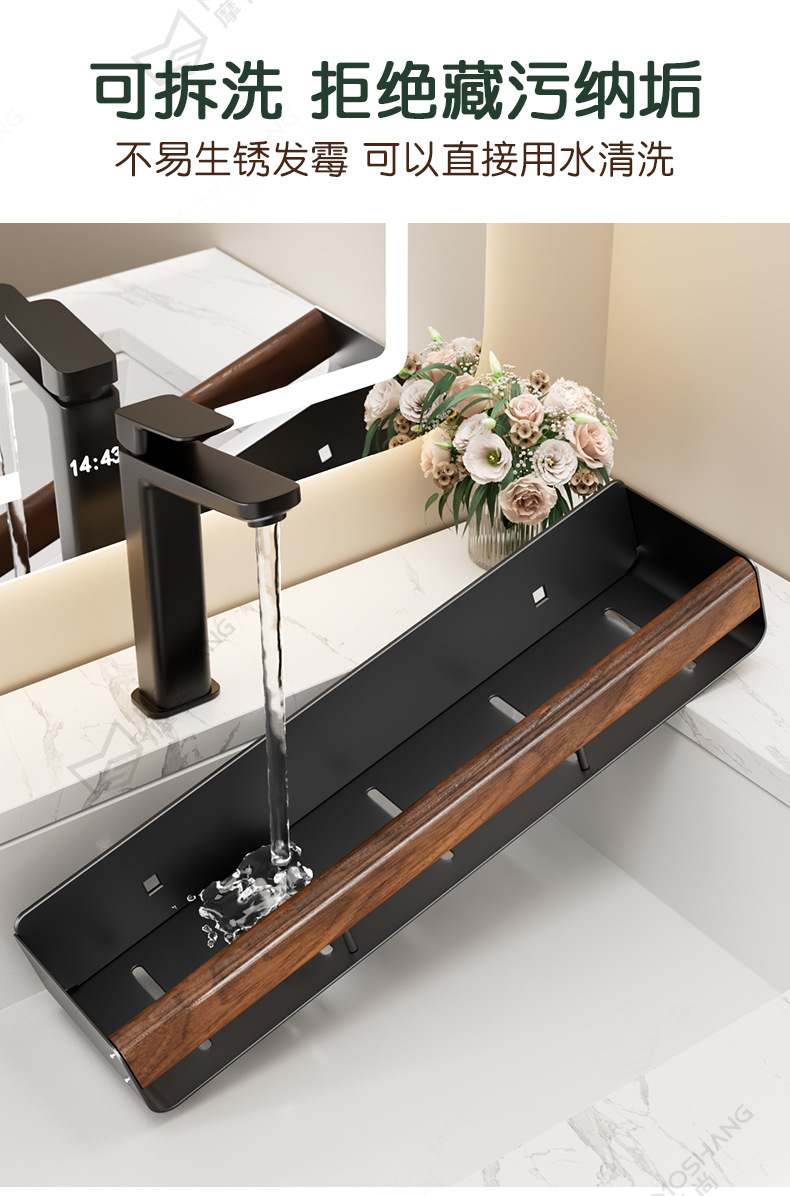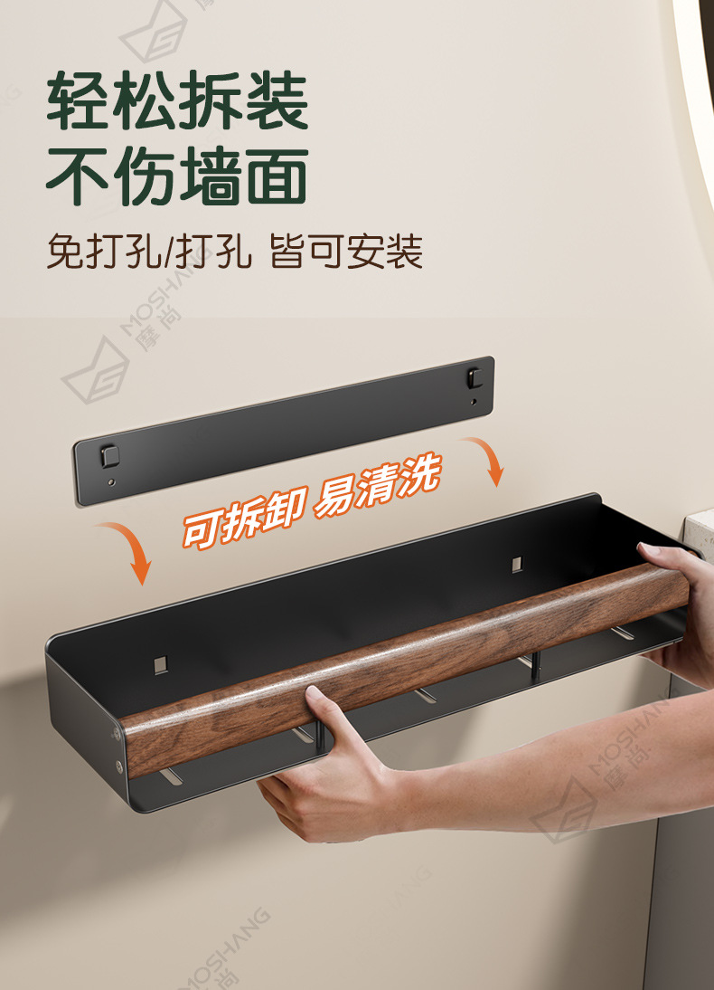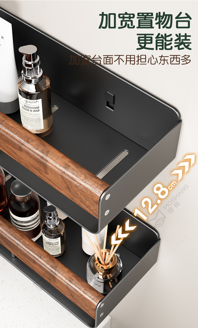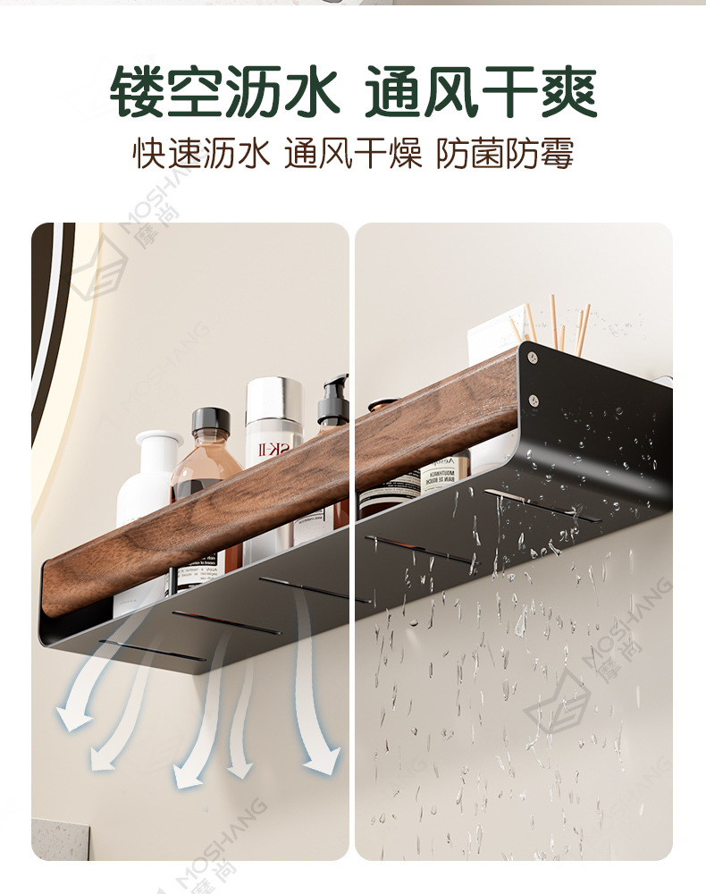 호두나무 욕실 수납 선반 벽걸이형 펀치 없는 욕실 화장대 수건걸이 화장품 수납
