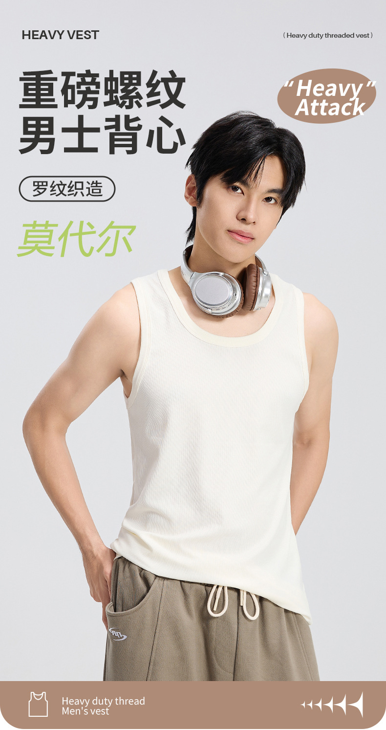 2025년 신상 여름 스타일 헤비급 270g 이너웨어 및 아우터 모달 스레드 남성 스포츠 슬림 조끼