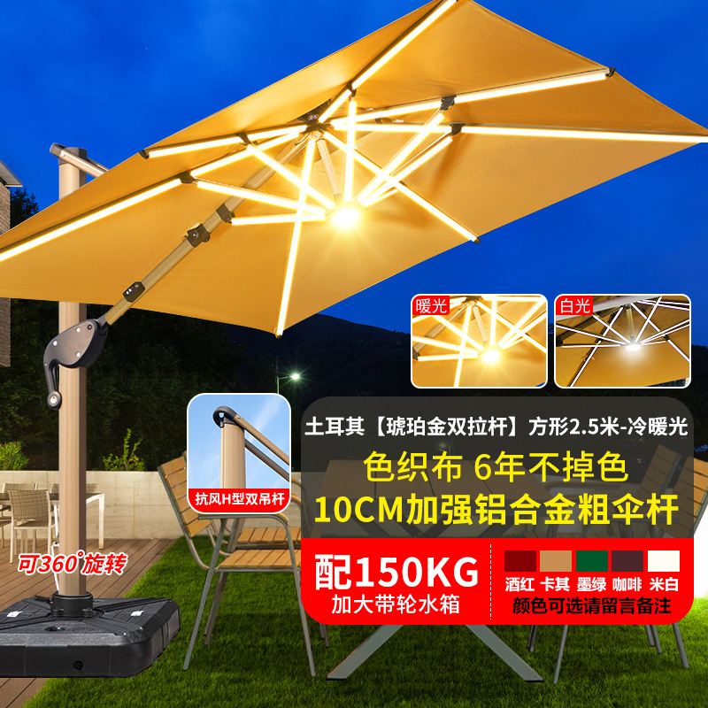 • 터키 [냉온 조명 전환] 사각 2.5m|앰버 골드 [확대 풀리 물탱크 베이스 포함] 100MM 공간 알루미늄 폴