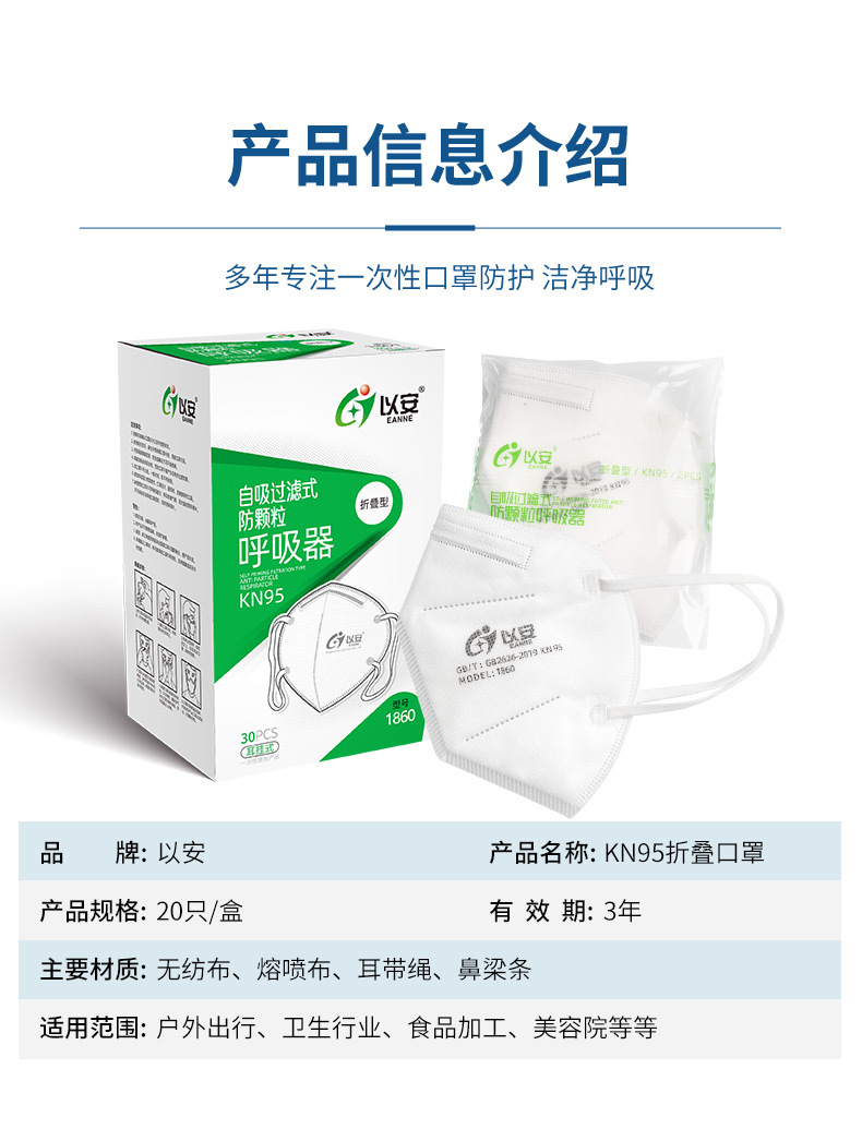 Yi'an 1860KN95 방진 마스크 일회용 산업용 방진 및 PM2.5 안개 작업장 먼지 헤드 장착형스토어 가기