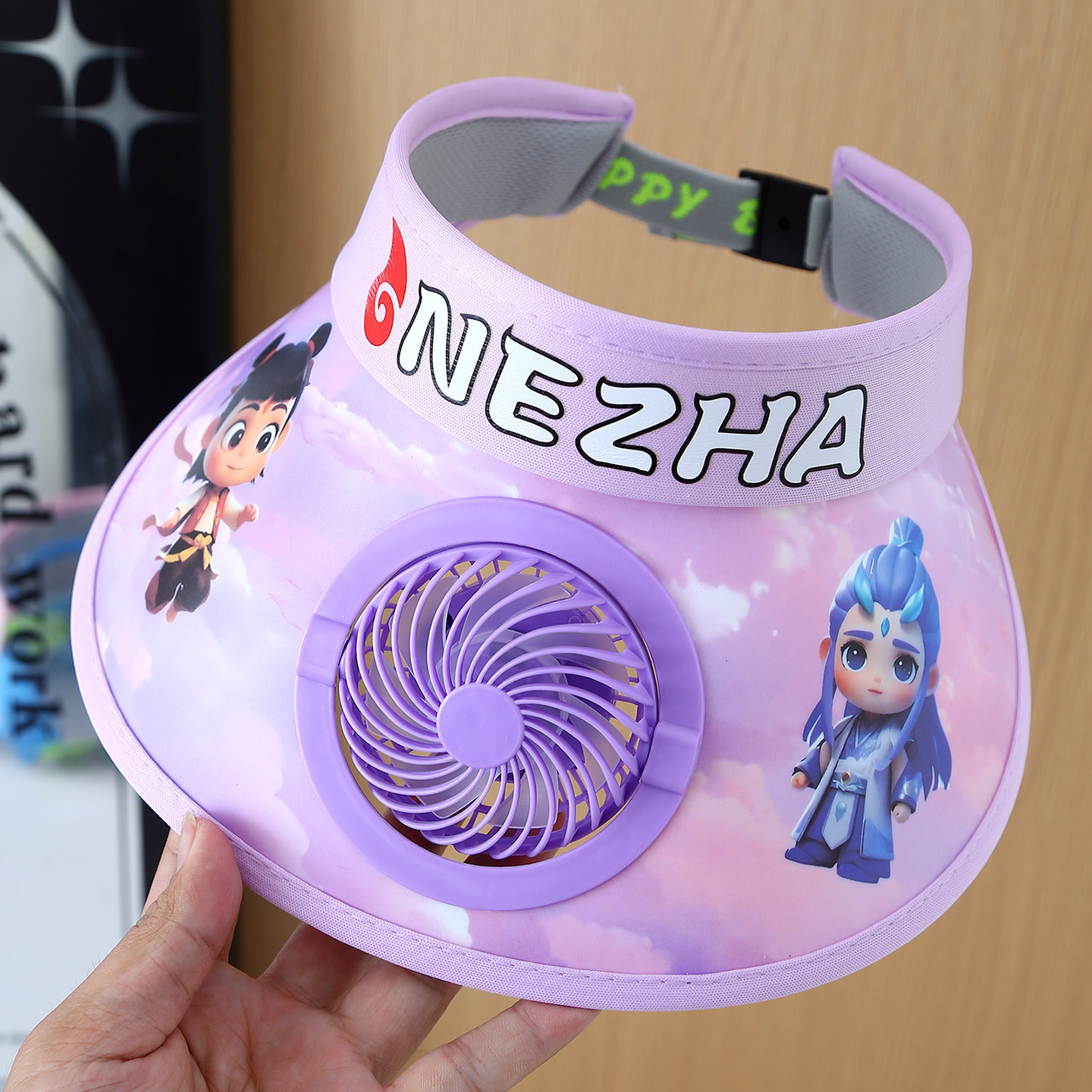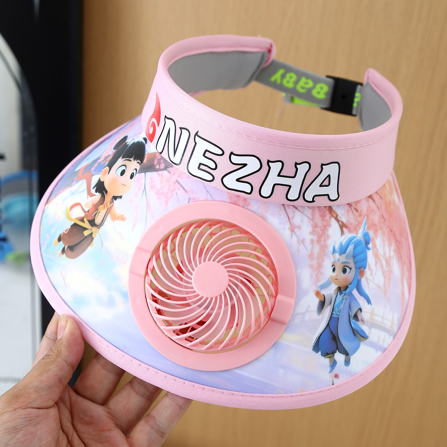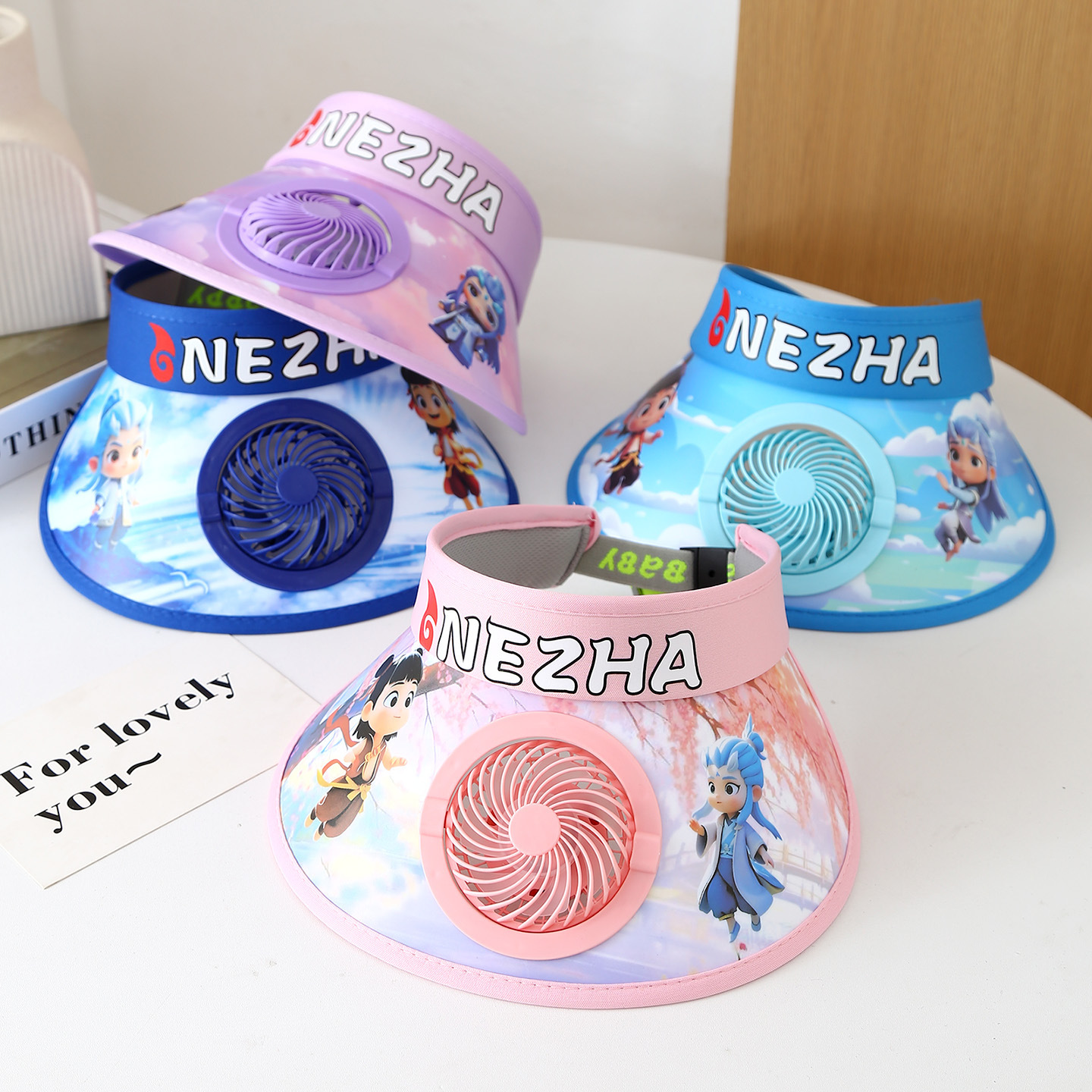 여름 어린이용 팬이 달린 햇빛 가리개 모자, 빈 상단 모자, 아기 모자, 만화 네자 자외선 차단 여자아이용 햇빛 가리개 모자