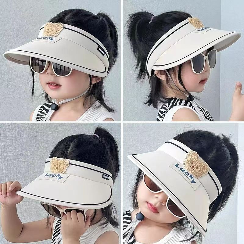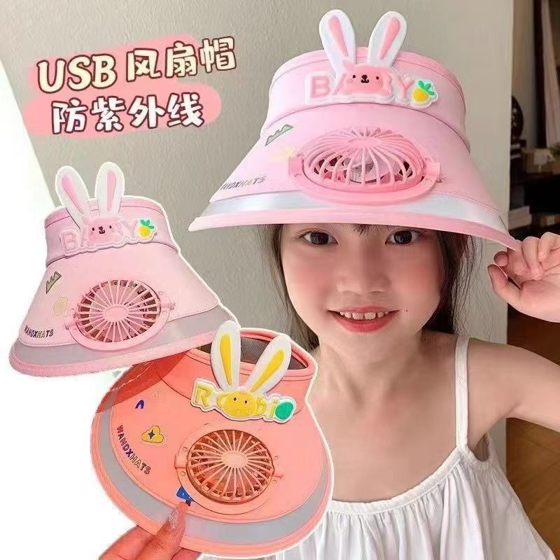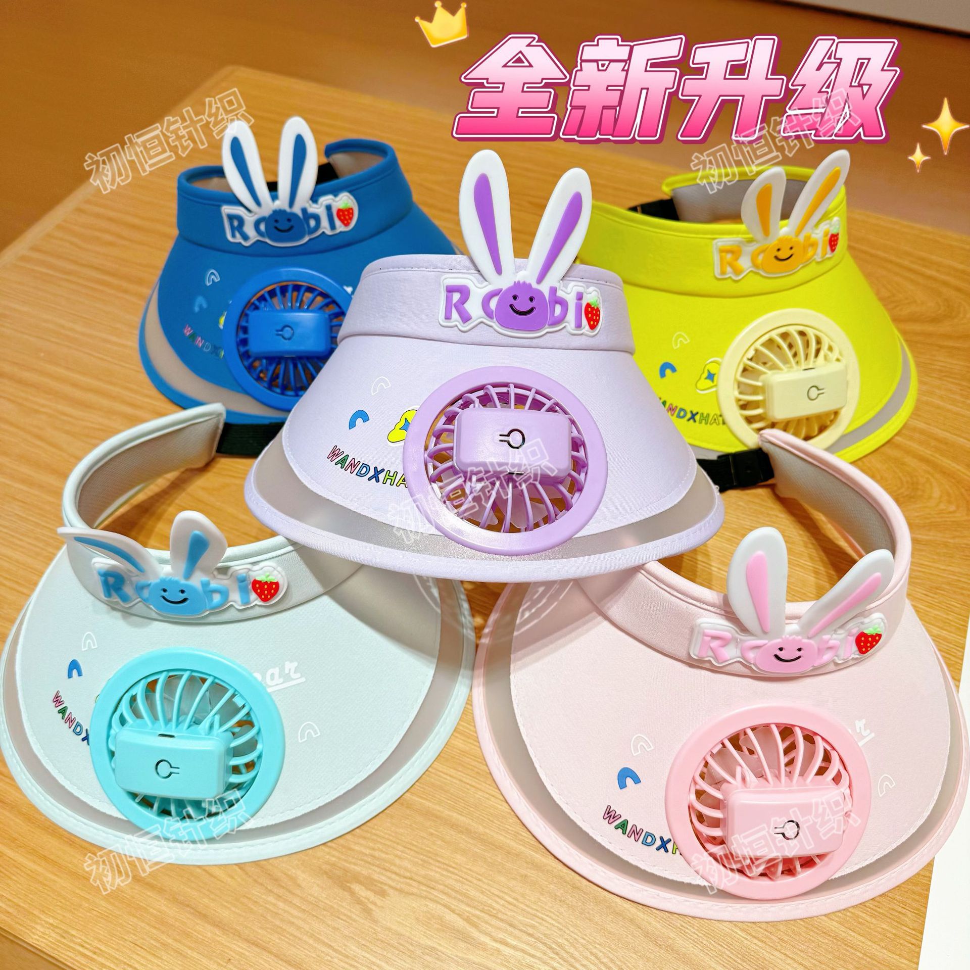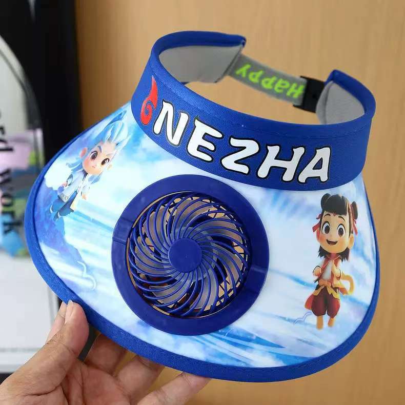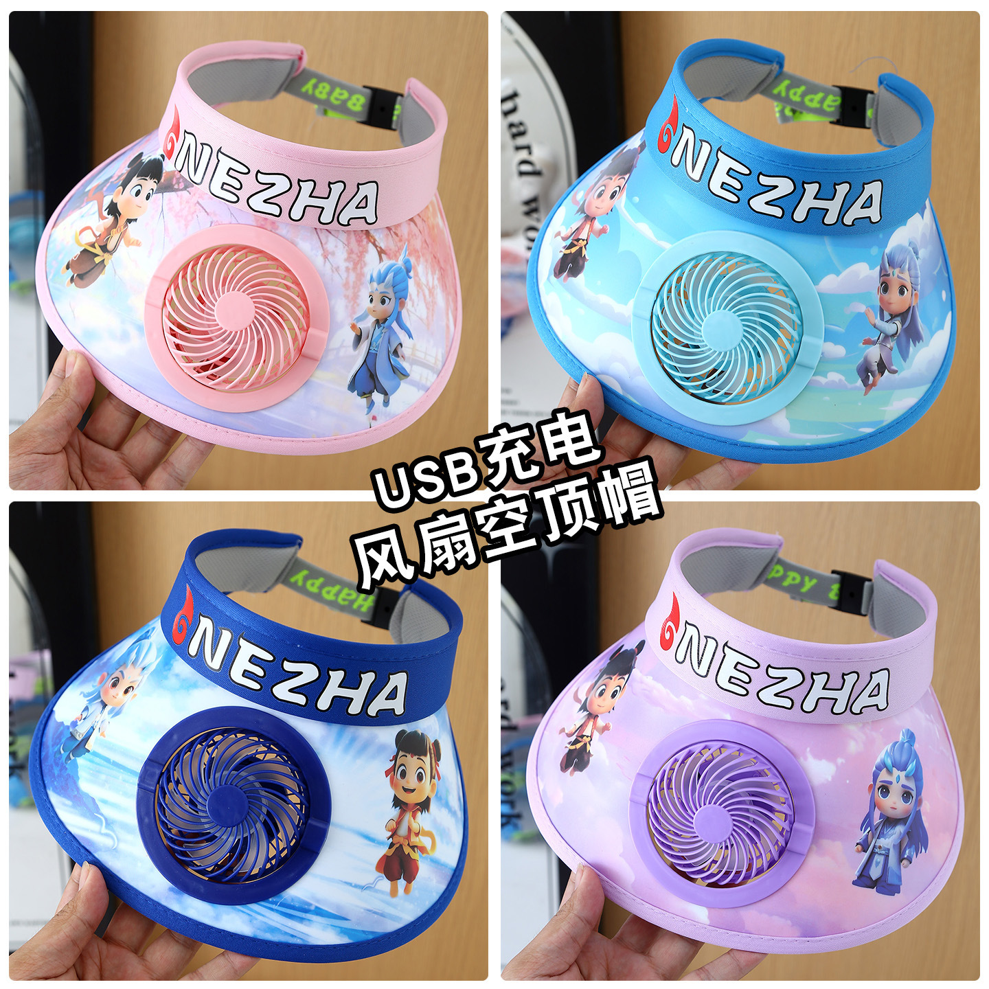 여름 어린이용 팬이 달린 햇빛 가리개 모자, 빈 상단 모자, 아기 모자, 만화 네자 자외선 차단 여자아이용 햇빛 가리개 모자