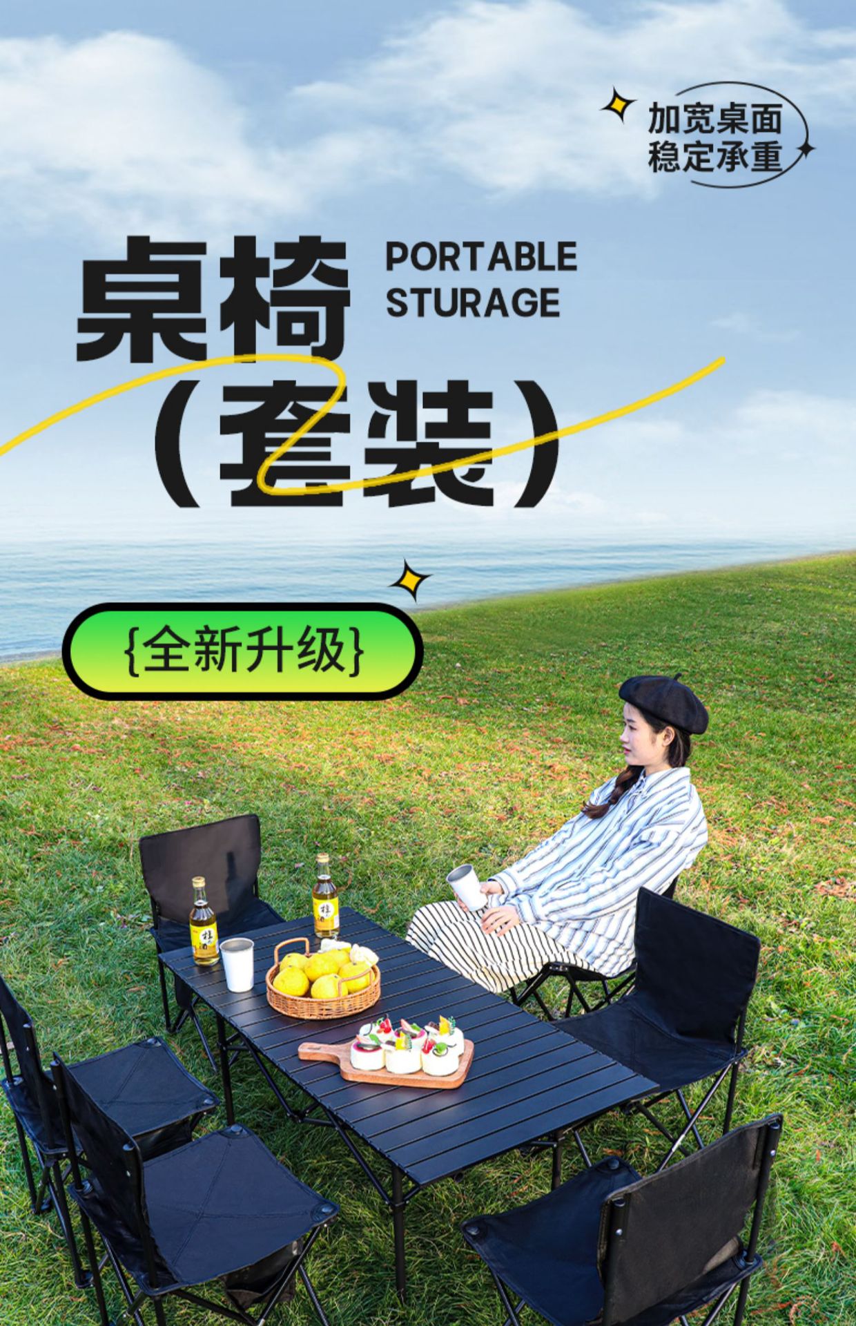 야외 접이식 테이블과 의자 세트 휴대용 계란말이 테이블 일체형 탁상 식탁 피크닉 캠핑 바베큐 테이블