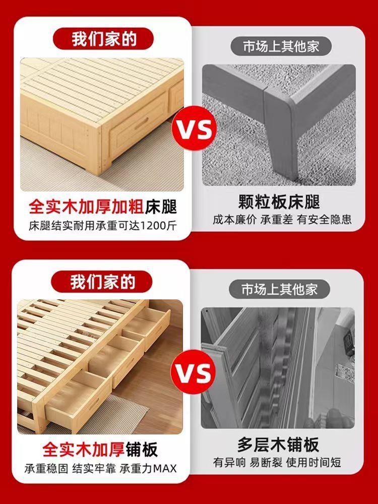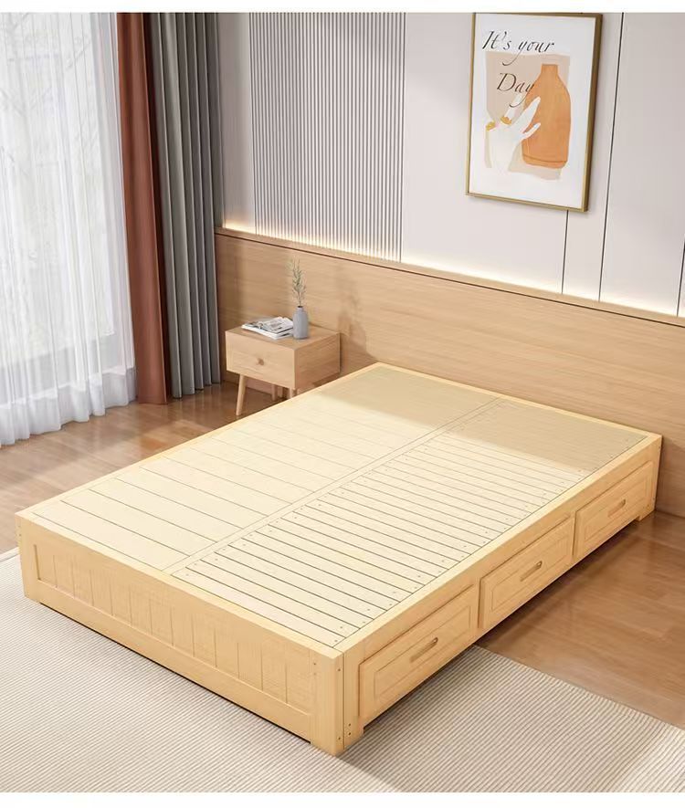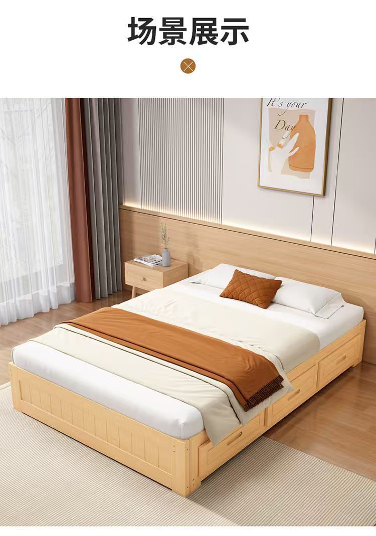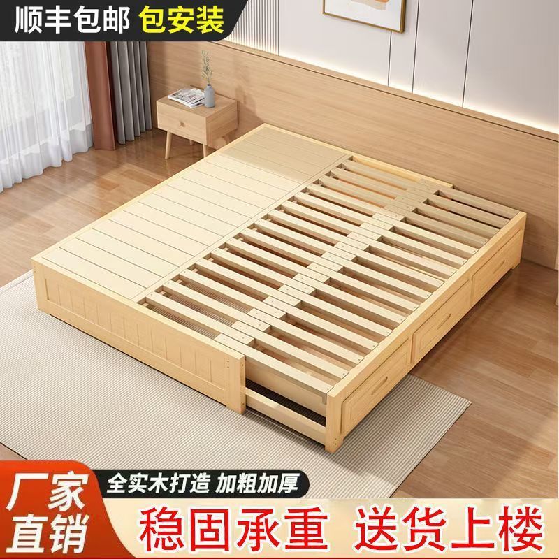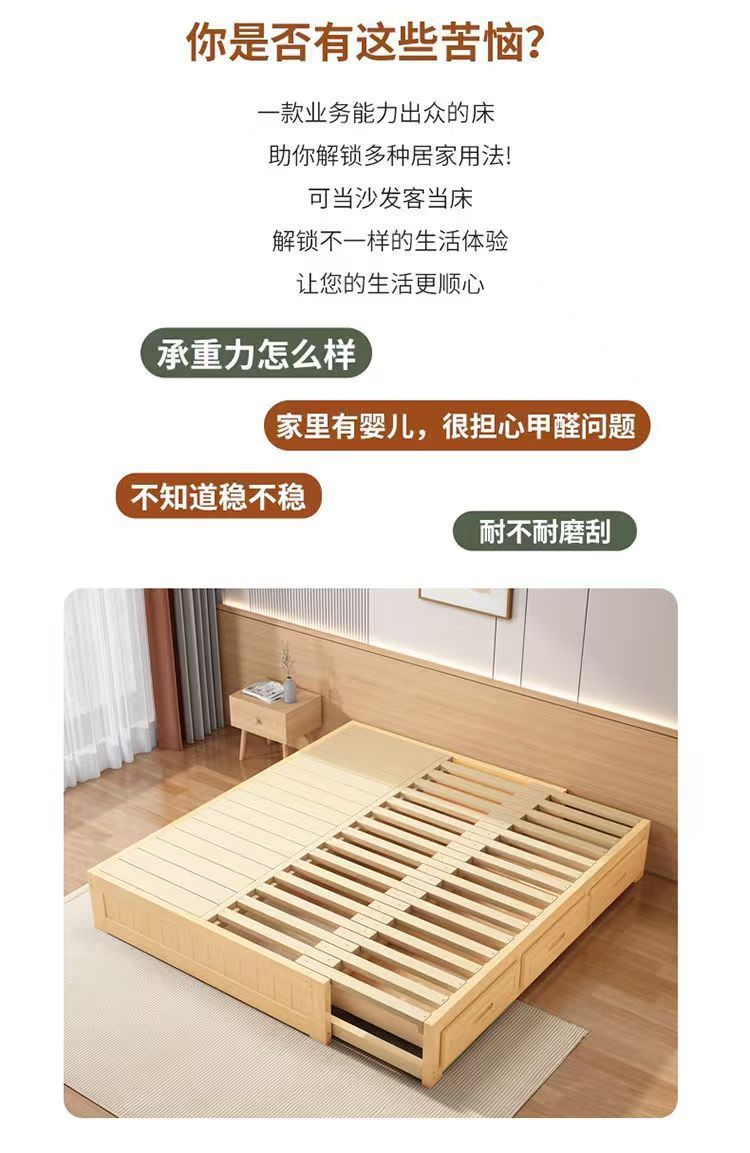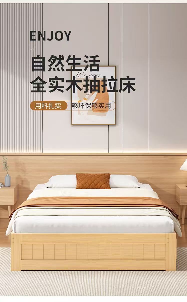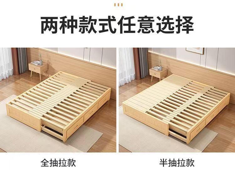 Juyou 단단한 나무 풀 아웃 침대 다기능 스토리지 현대 침실 다다미 텔레스코픽 더블 침대 소파 침대 작은 아파트스토어 가기