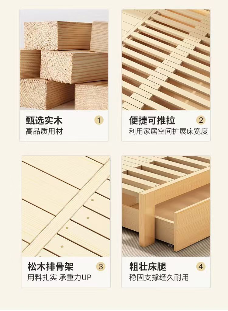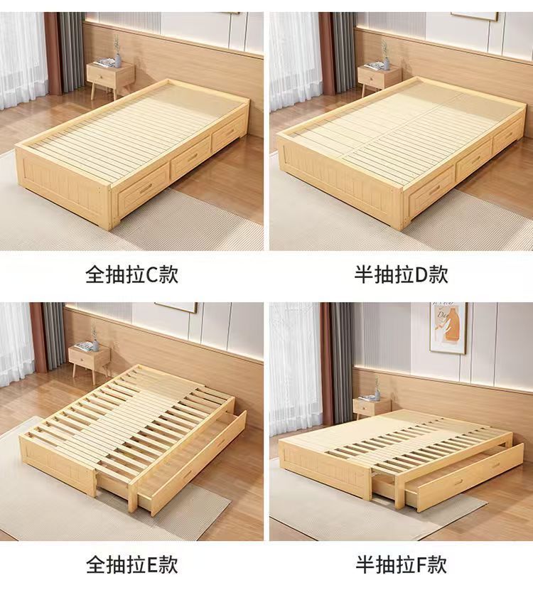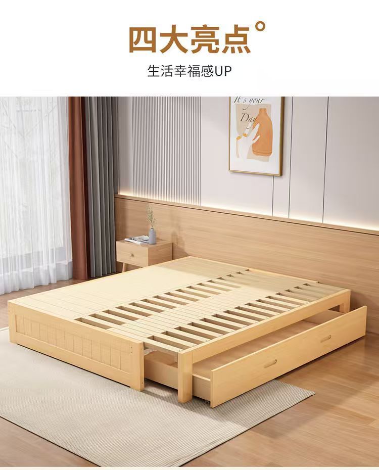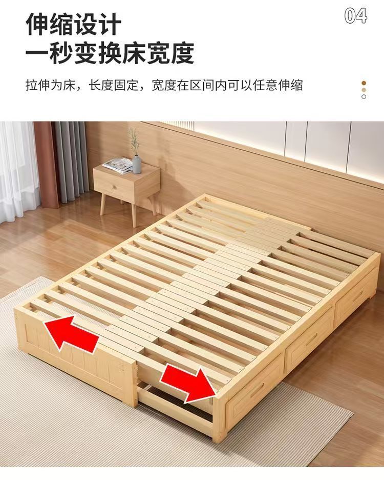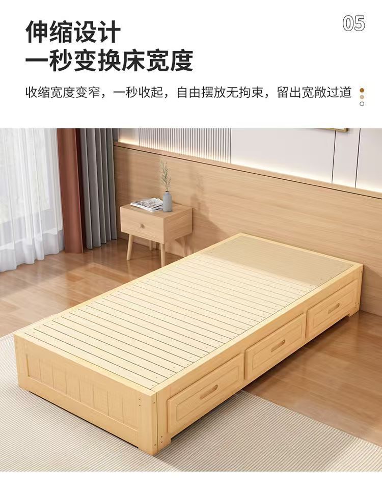 Juyou 단단한 나무 풀 아웃 침대 다기능 스토리지 현대 침실 다다미 텔레스코픽 더블 침대 소파 침대 작은 아파트