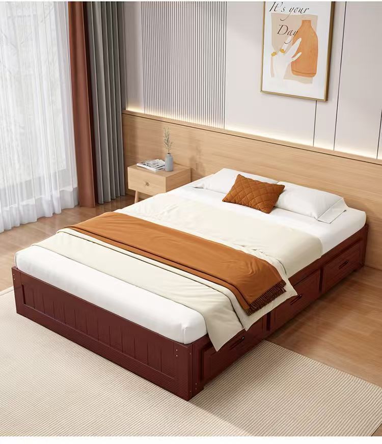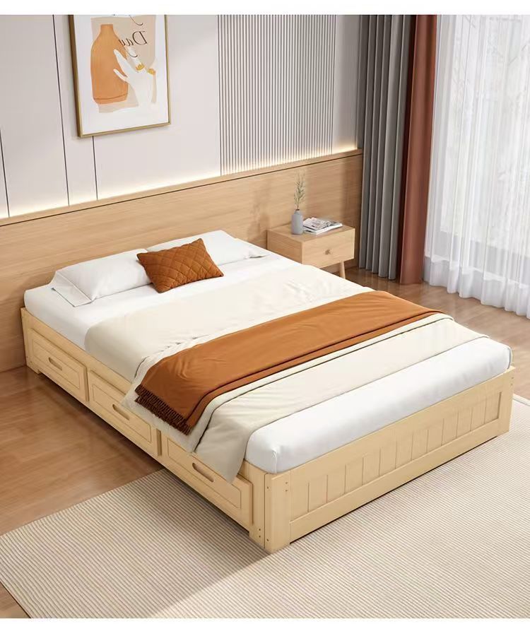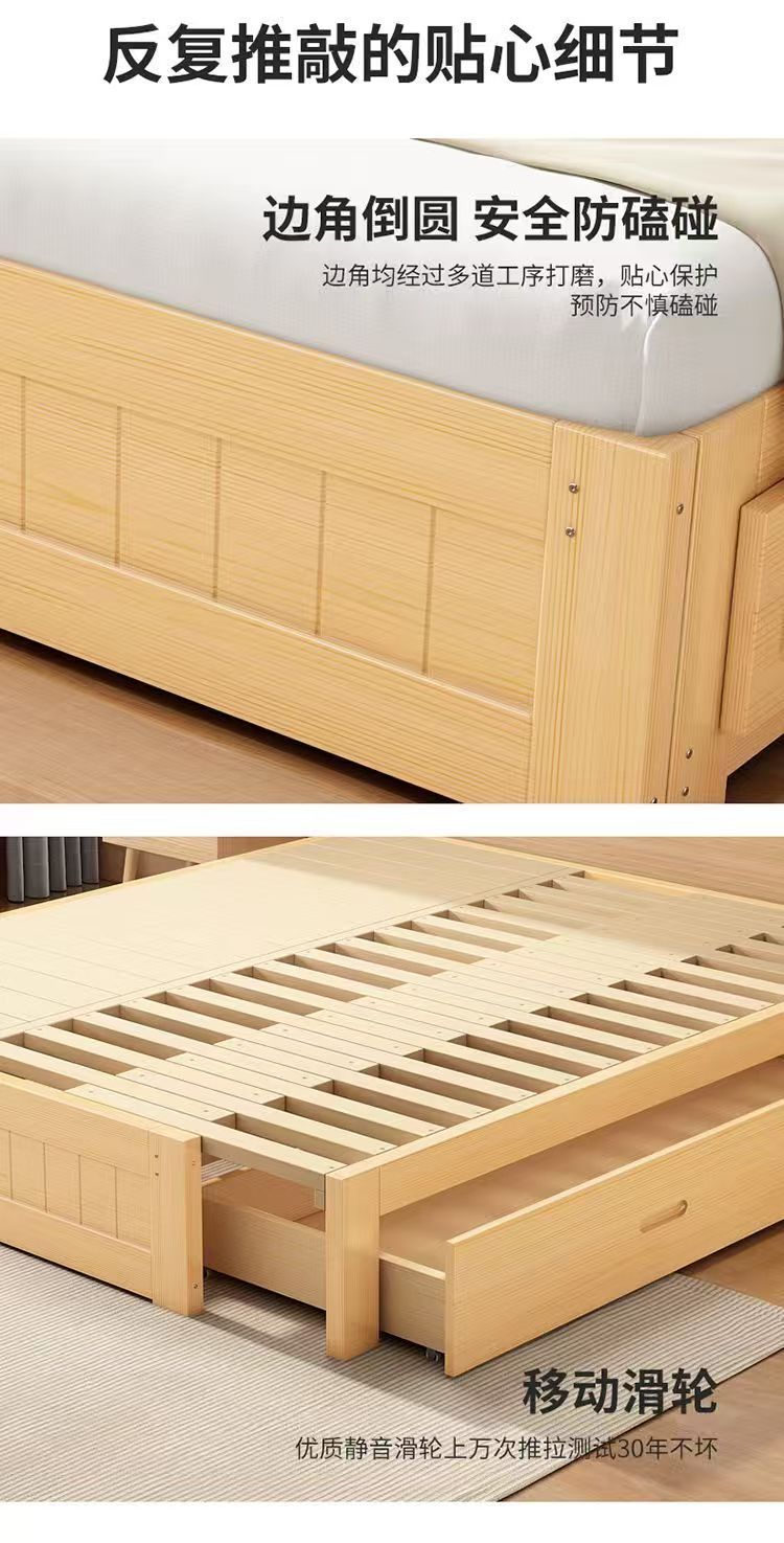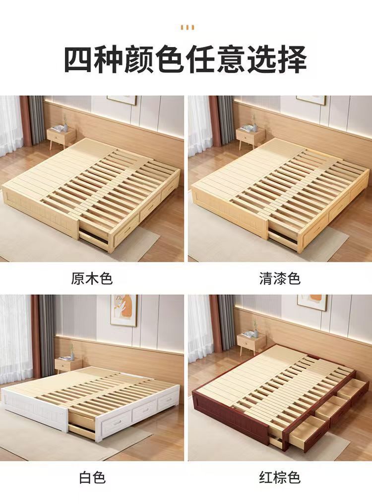 Juyou 단단한 나무 풀 아웃 침대 다기능 스토리지 현대 침실 다다미 텔레스코픽 더블 침대 소파 침대 작은 아파트