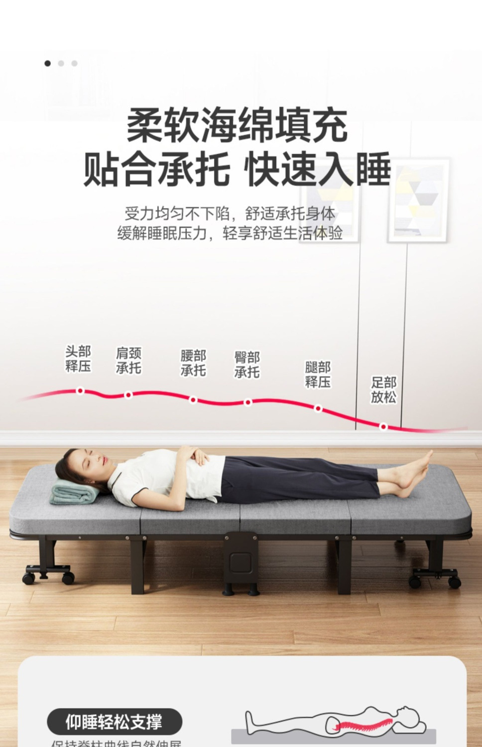1인용 접이식 침대, 낮잠 침대, 성인용 접이식 침대, 사무실 낮잠용품, 접이식 침대, 1인용 휴대용 60% off