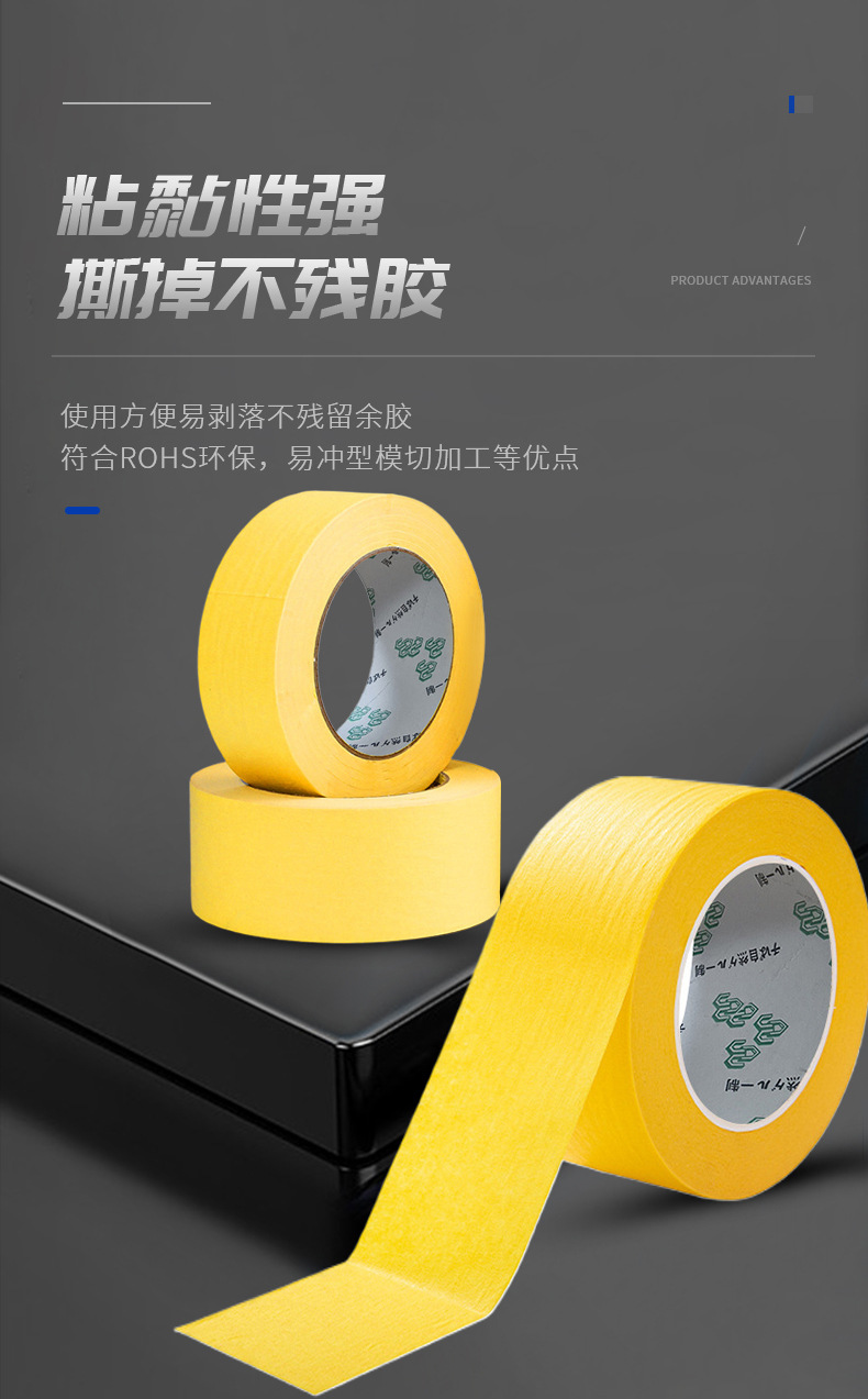 제조업체 노란색 일본 종이 마스킹 테이프 도매 페인트 건설 마스킹 접착제 없음 흔적 테이프 장식 슬리브 접착 스트립